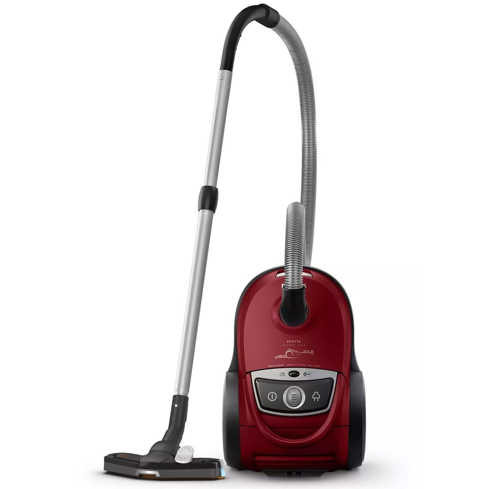 جاروبرقی فیلیپس FC9174/01 رنگ قرمز یکی دیگر از مدل های جاروبرقی ممتاز برند فیلیپس است. این جاروبرقی محصول سال 2020 و جزو سری Performer این برند می باشد و همراهی مطمئن برای تمیز نگه داشتن خانه ی شما و عاری از گرد و غبار است که با ویژگی های بهینه، تجهیزات فکر شده و لوازم جانبی ساخته شده در بالاترین سطح تضمین شده است. این جارو برقی یک راه حل تمیز کننده پیشرفته با حداقل قدرت ورودی 2000 وات و حداکثر قدرت و توان موتور 2200 وات خود است که قدرت مکش قابل توجهی تا 500 وات را تولید می کند. این دستگاه بدون زحمت با گرد و غبار ریز و زباله مقابله می کند و کف منزل شما را به طور بی عیب و نقصی تمیز می کند. این جارو برقی همچنین دارای سطح نویز 78 دسی بل است و عملکرد نسبتا بی صدا را تضمین می کند. با توان 2200 وات، با ولتاژ استاندارد 230 ولت و فرکانس 50 هرتز کار می کند. این جارو برقی با مدل کامل FC9174/01 تولید شده و ممکن است در بازار و یا در فروشگاه های مختلف با نام جاروبرقی فیلیپس FC9174 یا 9174 نیز شناخته و معرفی شود. این شگفت انگیز فیلیپس تجربه ی تمیز کردن بی نظیری را تضمین می کند و آن را به انتخابی ایده آل برای خانواده هایی تبدیل می کند که به دنبال تمیزی درجه یک هستند. علیرغم این واقعیت که این جاروبرقی درجه یک با قدرت مکش باورنکردنی می تواند تقریباً با هر نوع آلودگی مقابله کند، محدودیت های قابل توجهی نیز در آن وجود دارد. مهم است که به یاد داشته باشید که نوع تمیز کاری و جارو کردن این دستگاه خشک است. یعنی فقط گرد و غبار و زباله های خشک را جمع آوری می کند و از جارو کردن آب ریخته شده و یا هر نوع مایع دیگری با این جارو برقی باید خودداری کرد.