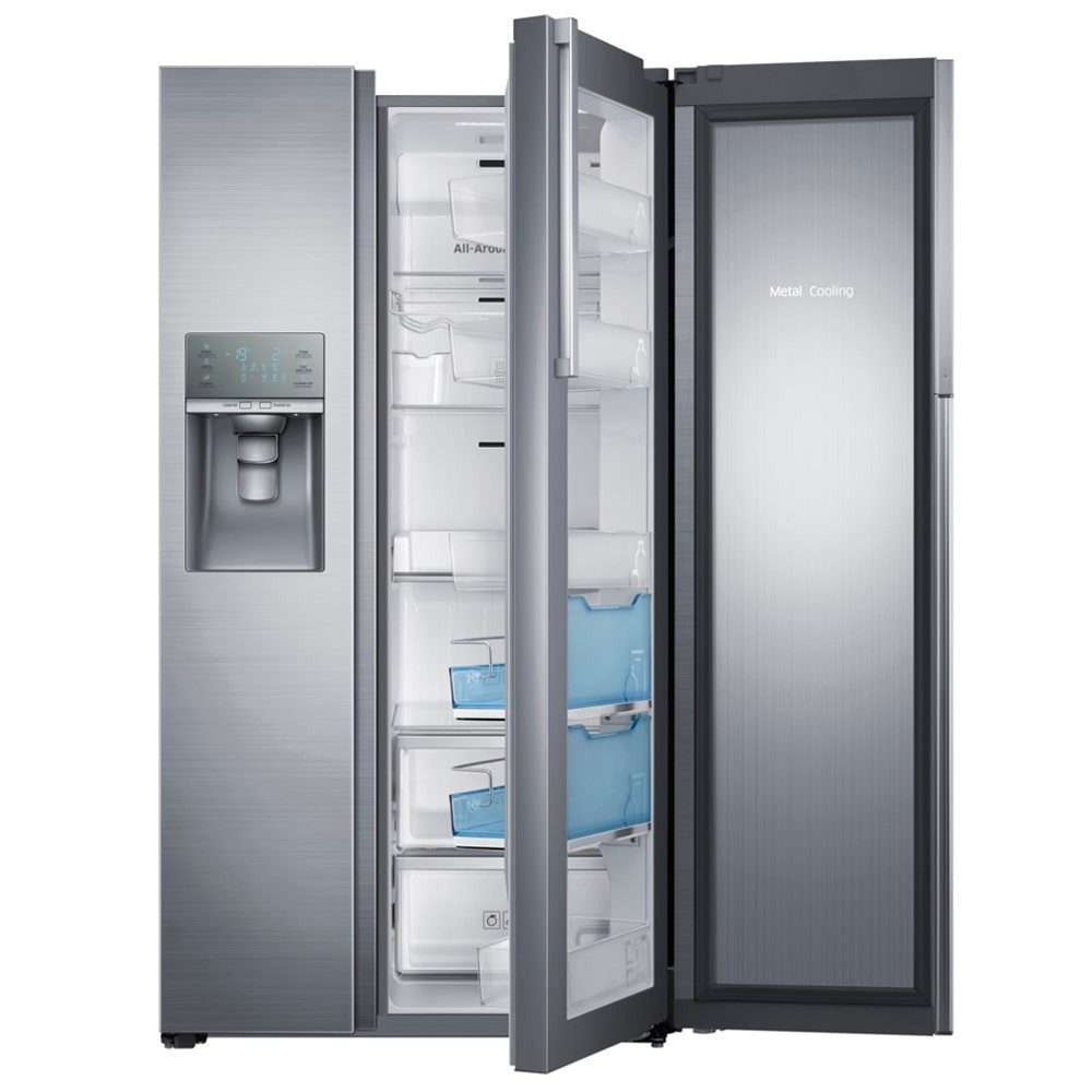 درب یخچال ساید بای ساید سامسونگ RH77 مجهز به حالت خنک کنندگی یا همان محافظ خنک کنندهی فلزی Metal Cooling می باشد که کمک زیادی به حفظ دمای مطلوب می کند. به عبارتی هر چقدر که دربِ یخچال و ShowCase را باز و بسته کنید با اطمینان خاطر خنک کنندگی موجود را حفظ می کند و مانع از دست رفتن کیفیت مواد غذایی میشود. این محفظه فلزی انباشته از هوای سرد می باشد که با هدایت کردن حرارت به بخش های مختلف یخچال مانع از هر گونه افت حرارت میشود. پس می توان گفت همراه با این قابلیت بسیار خوب که برای ساید بای ساید سامسونگ تعریف شده با خیال راحت و بدون هیچ گونه نگرانی می توانید مواد غذاییتان را در داخل یخچال ذخیره سازی کنید. در واقع این محافظ خنک کنندهی فلزی باعث ثابت ماندن دمای داخلی یخچال میشود و از خروج هوای سرد به بیرون جلوگیری میکند.