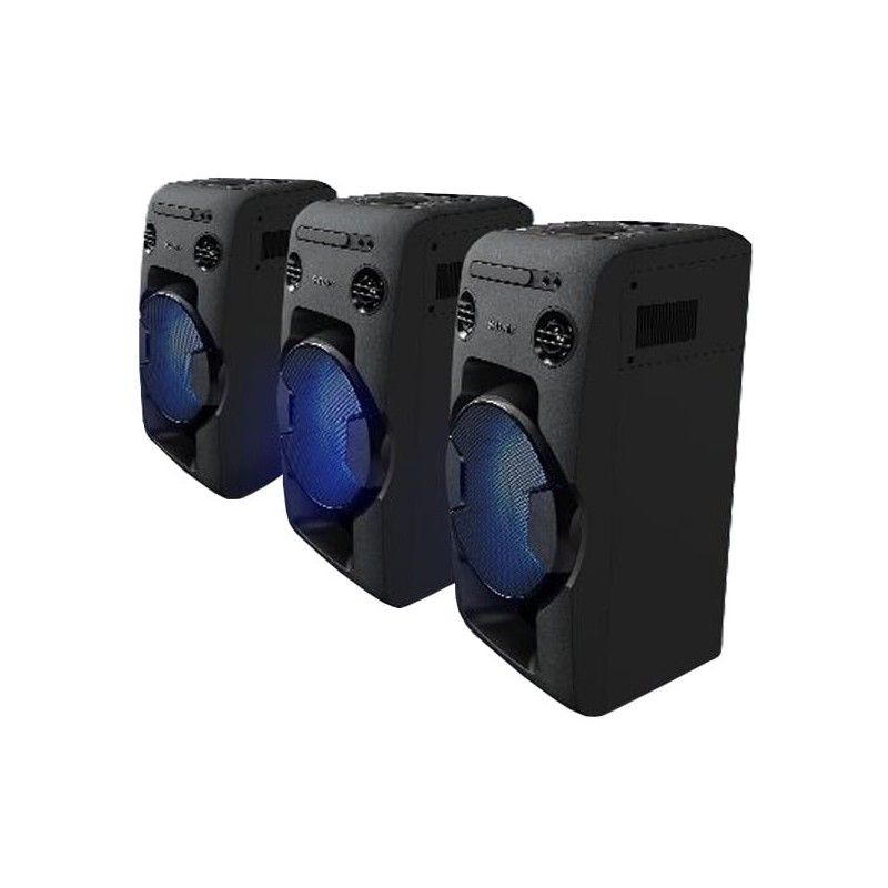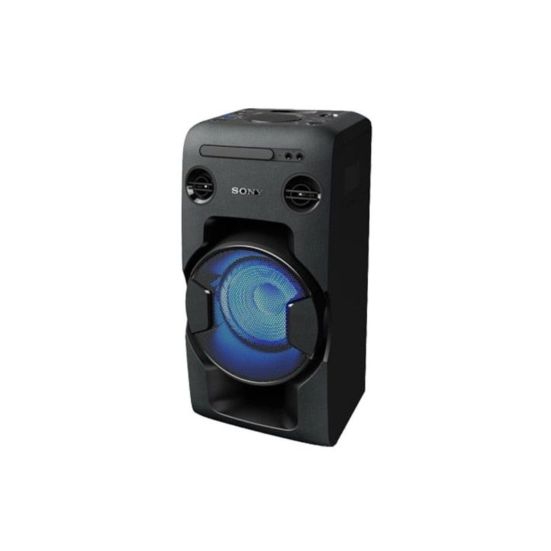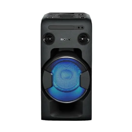 سیستم صوتی سونی V11 یکی از خوش طرح ترین محصولات موجود در بازار می باشد که از طراحی فوقالعاده خاصی برخوردار است. با توجه به طراحی این نوع سیستم صوتی و همچنین انعکاس هر کدام از نورهای خوش رنگ آن محیطی کاملاً شاد و رنگارنگ را برایتان به وجود می آورد. توان فوقالعاده بالای سیستم صوتی سونی این امکان را برای کاربران فراهم می آورد تا در هر جایی و بدون استفاده از هر گونه سیستم صوتی دیگری به لطف صدای بسیار بلند آن شور و هیجان خاصی را تجربه کنند. قابلیت پشتبانی از دیسک های DVD و CD نیز به کاربر اجازه می دهد تا با استفاده از قابلیت DVD از سایر فرمت های صوتی و تصویری بهره مند گردند. همچنین امکان تقویت کردن باس صدا به کمک مگا باس موجب تقویت شدن باس صدا میشود که در نتیجه آن می توانید از صدایی کاملاً با کیفیت سود ببرید. فناوری کارائوکه یکی از بهترین فناوری های سیستم صوتی سونی می باشد که به شما اجازه می دهد تا حس یک خواننده واقعی را حتی در منزل تجریه کنید. از دیگر امکانات سیستم صوتی سونی می توان به پورت USB، ورودی میکروفون، قابلیت اتصال به صورت بیسیم، و NFC اشاره کرد.
