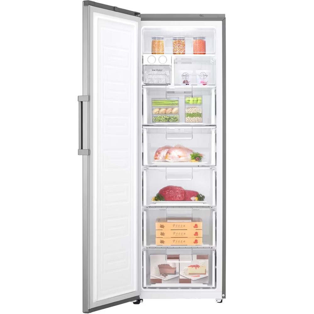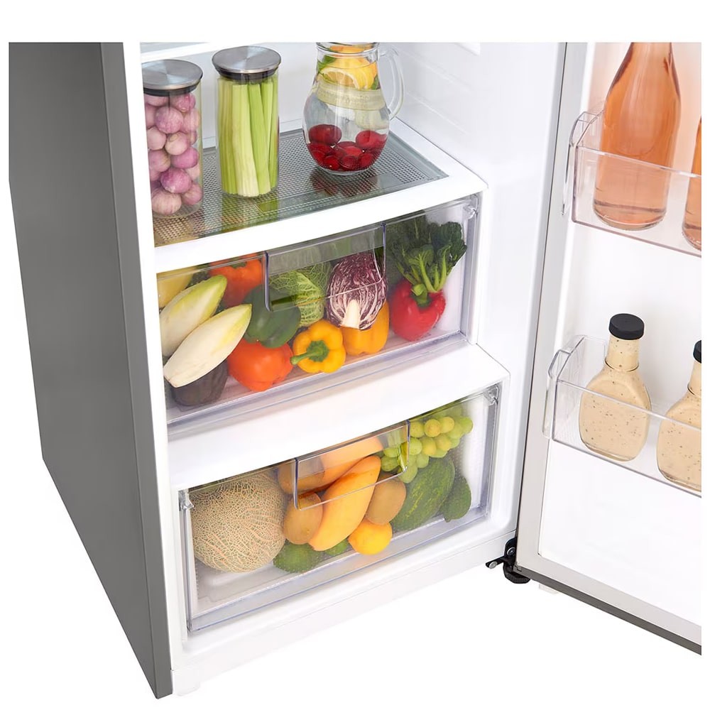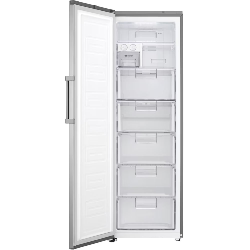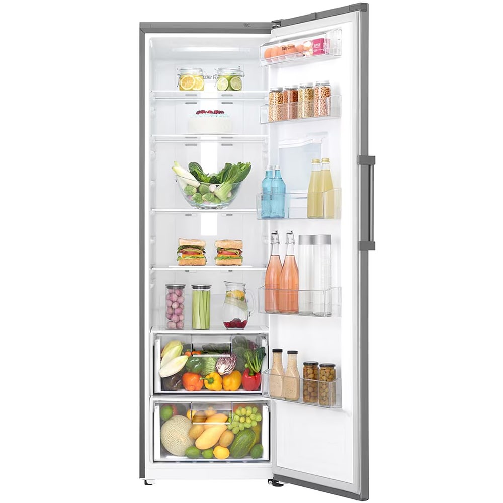 یخچال 377 لیتری ال جی دارای 5 قفسه، قفسه بطری و 2 کشوی مخصوص است که میوه و سبزیجات شما را برای مدت طولانیتری تازه نگه میدارد. قفسهها را میتوان به صورت کشویی بیرون آورد تا بتوانید به راحتی تمام مواد غذایی خود را ذخیره کنید. در یکی از 5 محفظه درب میتوانید مواد غذایی کوچکتری مانند کره و تخم مرغ را ذخیره کنید. در جلوی این یخچال و روی درب آن 1 پنل و 1 آب ریز وجود دارد. متاسفانه این محصول قابلیت اتصال مستقیم به آب شهری را ندارد و شما باید به صورت دستی مخزن آب را پر نمایید. پنل یاد شده نیز از نوع سگمنتی بوده و جهت نمایش دمای یخچال، اتصال به اینترنت و سایر اطلاعات مربوط به آن طراحی شده است. با فریزر بلند ال جی GC-B404ELRZ ، تمام مواد غذایی را که احتمالاً به آن نیاز دارید، بدون زحمت منجمد کنید. این دستگاه مستقل دارای عملکرد Express Freeze برای یخ زدن سریع غذا و حفظ ویتامینها و طعم است. فریزر ال جی GC-B404ELRZ دارای 2 کشو فریزر با اندازه متوسط و 5 کشو BigBox است که به شما امکان میدهد هر اقلام یخ زدهای را که ممکن است نیاز داشته باشید ذخیره کنید. علاوه بر این، این فریزر کاملاً بدون یخ زدگی است، بنابراین دیگر نیازی به یخ زدایی نخواهد بود. در واقع ظاهر مدرن از فولاد ضد زنگ ظاهری براق ایجاد میکند. کنترلهای الکترونیکی LED شما را همیشه به روز نگه میدارند و سیستم هشدار صوتی باز بودن درب شما را هوشیار نگه میدارد.