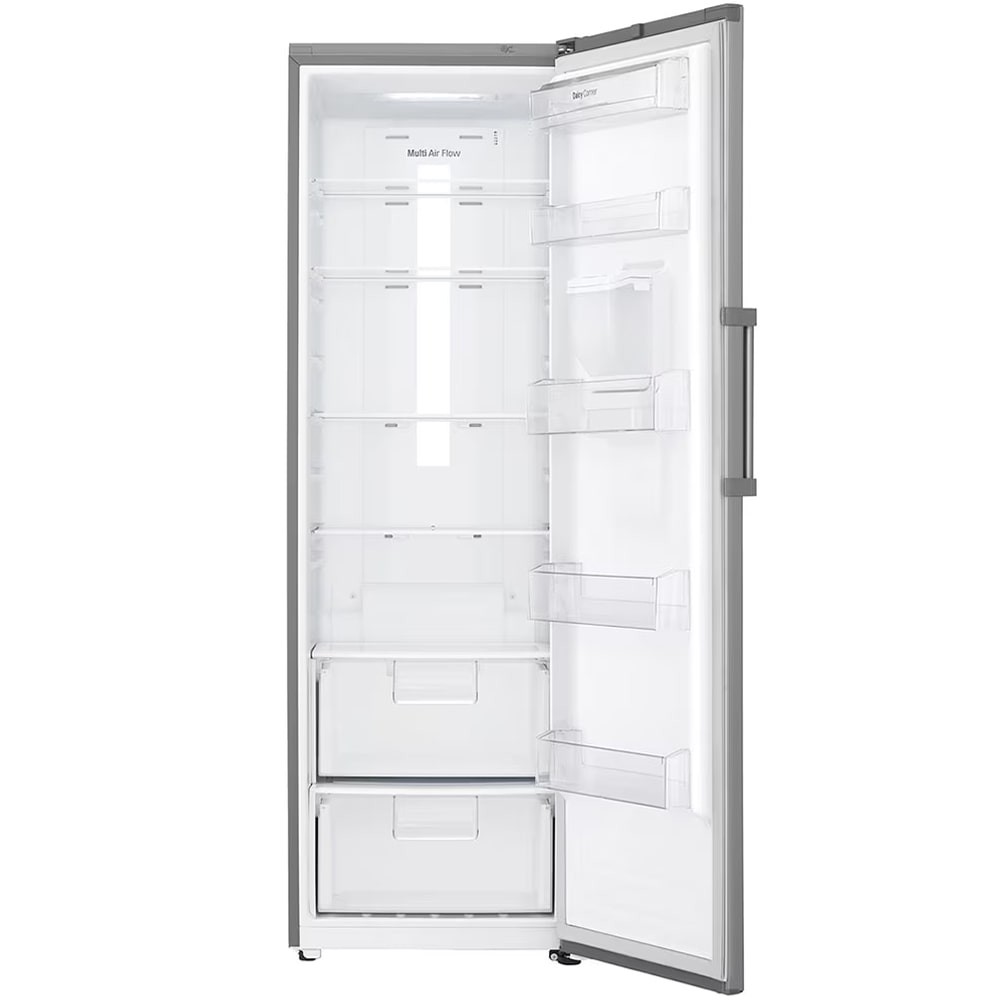 فناوری جریان هوای چندگانه (multi air flow) چیست؟ هدف از فناوری جریان هوای چندگانه در یخچال فریزر دوقلو LG GC-F401ELDZ GC-B404ELRZ، حفظ جریان یکنواخت هوا در سراسر دستگاه، در هر بخش به طور همزمان است. این امر به ویژه هنگامی که درب باز شده است اهمیت دارد. هوای خنک از طریق دریچههای هوای کوچکی که به دقت در اطراف هر بخش قرار گرفتهاند جریان مییابد و برای تازهتر نگه داشتن غذا برای مدت طولانیتر ضروری است. جریان هوا از کجا سرچشمه میگیرد؟ هوای سرد از پشت یخچال از طریق خروجیهای جداگانه برای هر فضای قفسه وارد میشود و اطمینان حاصل میکند که همه مواد غذایی به طور یکنواخت خنک میشوند. بنابراین، با کمک این فناوری، اقلام گیاهی شما که در جعبه بزرگ در پایین یخچال قرار میگیرند، مانند محصولات شیری که در قفسههای بالایی نگهداری میشوند، خنک میمانند.