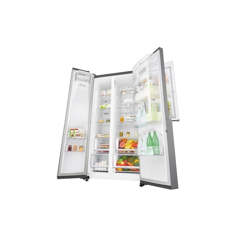 - دارای سیستم ذخیره و نگهداری هوشمند مواد غذایی (Smart Storage System) تکنولوژی +Hygiene FRESH با فیلتر 5 لایه برای از بین بردن باکتری ها تا 99.999% و بوی بد مواد غذایی و تصفیه هوای داخلی یخچال سیستم یخ ریز با قابلیت تولید یخ حبه ای (مکعبی) و یخ خرد تضمین عملکرد و کارایی موتور Inverter Linear Compressor تا 10 سال توسط ال جی قابلیت درب در درب (Door-in-Door) برای دسترسی به برخی مواد غذایی بدون باز کردن درب اصلی یخچال و جلوگیری از هدر رفت سرما سیستم یخ ساز اتوماتیک با طراحی فوق باریک برای اشغال فضای کمتر (Slim SpacePlus Ice System) دارای موتور اینورتر خطی (Inverter Linear Compressor) با طول عمر بالا (حدود 20 سال)، عملکرد عالی و صرفه جویی در مصرف انرژی
