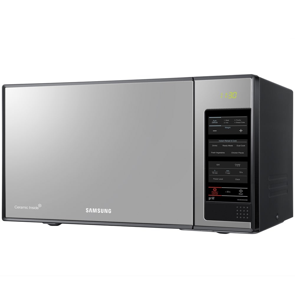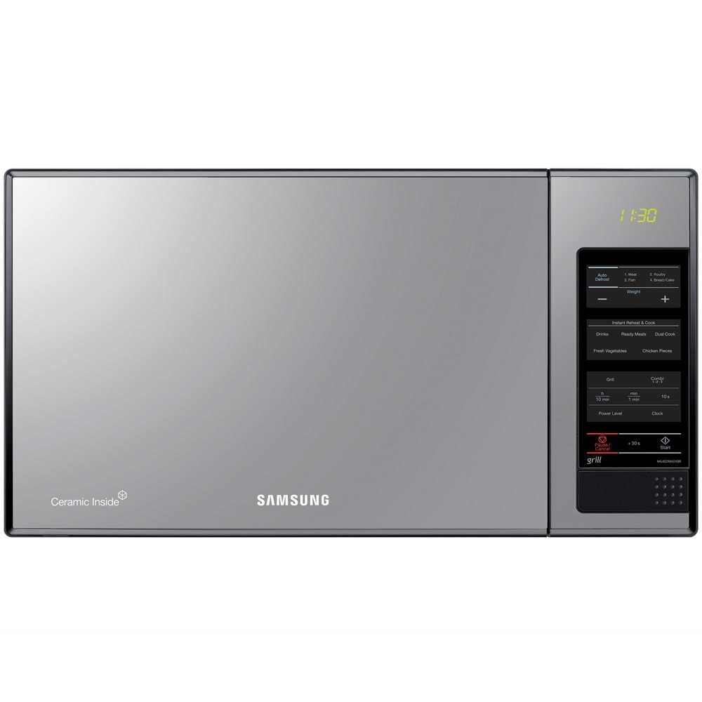 مایکروویو سامسونگ MG402MADXBB یک همراه عالی برای هر خانهداری خواهد بود که همراه با آن میتواند هر نوع غذایی را به راحتی و با سرعت بیشتر پخت و پز نماید. مونتاژ مالزی این محصول هم اکنون در بازار ما موجود میباشد. گاها برخی از فروشگاهها این محصول را با عنوان مایکروویو سامسونگ 402 معرفی میکنند که ممکن است با محصولات مشابه اشتباه گرفته شود پس در هنگام خرید دقت لازم را به عمل آورید تا محصول درست و دقیق یعنی مایکروویو سامسونگ MG402MADXBB رنگ مشکی را خریداری نمایید. در واقع این مایکرووفر سامسونگ دارای ظرفیت 40 لیتری میباشد و فضای کافی برای آماده کردن غذا برای 5 تا 6 نفر دارد و چون قدرت نسبتا زیادی دارد به کمک آن میتوانید غذای مورد خود را سریعا آماده کنید. این محصول نوآورانه سامسونگ تضمین میکند که از پیتزا گرفته تا شیر گرم هر بار کاملاً آماده و خوشمزه است. این مایکروویو با داشتن 10 سطح قدرت مختلف تجربیات آشپزی موفق و دلپذیری را با آن خواهید داشت.