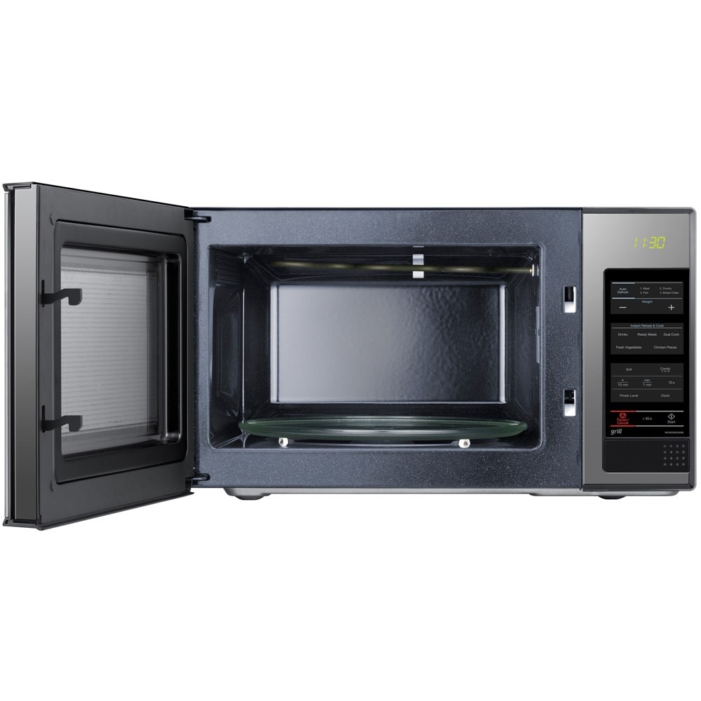 مایکروویو یک ابزار پخت و پز میباشد که با دقت طراحی شده است. مدت زمانی را که نیاز دارید غذایتان در مایکروویو گرم شود را مشخص کنید و این کاری است که انجام می دهد. نه بیشتر و نه کمتر. به جای حدس زدن زمان و دما، اجازه دهید این مایکروویو این کار را برای شما انجام دهد کافی است فقط یک منو انتخاب کنید و دکمه را فشار دهید تا غذای شما آماده شود. سامسونگ ویژگی One Minute/30 sec Plus را در لیست مشخصات فنی مایکروویو 40 لیتر MG402MADXBB قرار داده است که در واقع یک قابلیت بسیار موثر میباشد که به کاربران این امکان را میدهد تا تنظیمات کوچک و تدریجی را در زمان پخت خود انجام دهند، بدون اینکه نیازی به شروع فرآیند از ابتدا باشد. این "تکه" کار، کار پخت و پز با مایکروویو را قابل کنترلتر و کمتر طاقت فرسا میکند. حالت Eco Mode به شما این امکان را میدهد که در صورت عدم استفاده از مایکروویو، صفحه نمایش را خاموش کنید و در مصرف انرژی صرفه جویی نمایید. این حالت به طور قابل توجهی مصرف انرژی را با کمترین قدرت آماده به کار در صنعت کاهش میدهد. مایکروویو سوله 40 لیتری سامسونگ 402 با تمام ویژگیهای خاص خود مانند Auto Cook کار را آسانتر میکند. آنچه را که در حال پختن هستید انتخاب کنید و محاسبات را به مایکروویو بسپارید. بعد از یک روز کاری طولانی، بالاخره میتوانید آرامش داشته باشید! این سنسور به طور خودکار سطوح قدرت و زمان پخت صحیح را با تشخیص بخار از غذا هنگام پختن تنظیم و حفظ میکند. کتابچه راهنمای کاربر شما گزینههای دقیق مدل شما را به تفکیک میدهد، اما فرآیند اصلی استفاده از این ویژگی یکسان میباشد. دکمه پخت خودکار روی مایکروویو برجسته شده است. غذای خود را روی صفحه گردان قرار دهید و در را ببندید، سپس Auto Cook را فشار دهید تا فرآیند پخت صورت بگیرید.