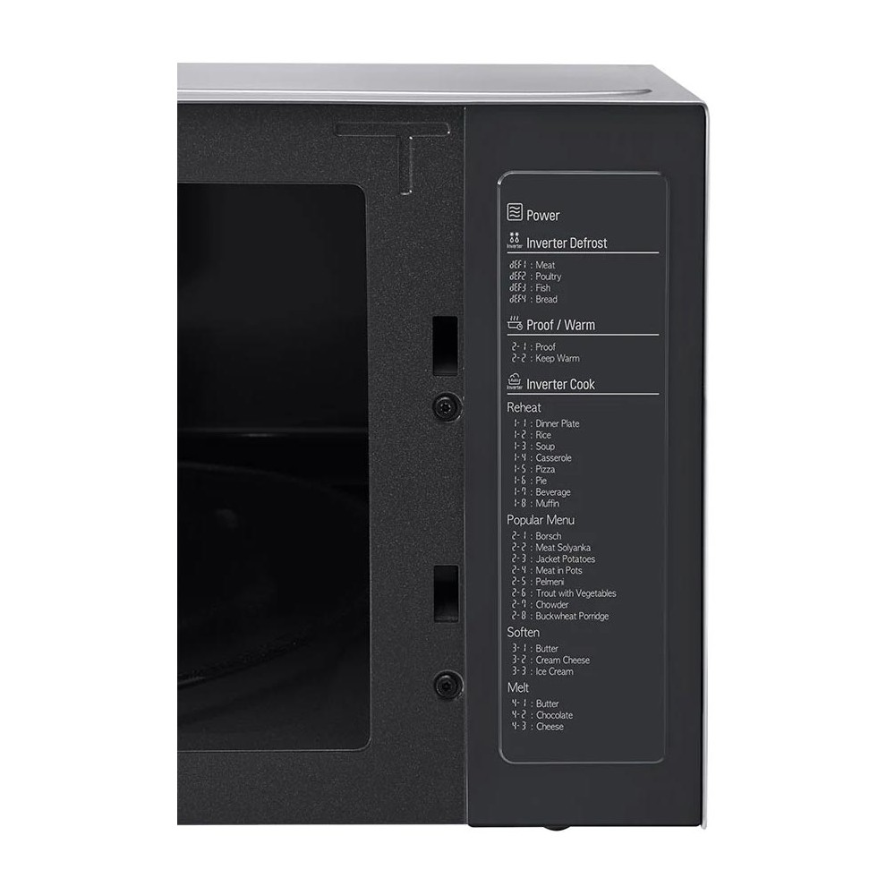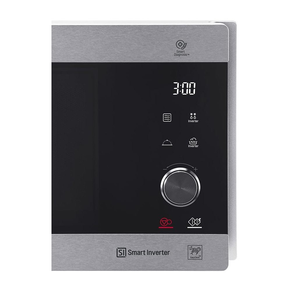 - قابلیت Various Cooking و استفاده از مایکروویو برای پخت و پز، گرم کردن غذاها، سرخ کردن مواد غذایی و همچنین تهیه ماست خانگی قابلیت More/Less برای افزایش یا کاهش زمان پخت و پز به دلخواه دارای 1 توری گریل فلزی (Rack) دارای هیتر (Heater) برای پخت و پز بهتر و یکنواخت غذاها و مواد غذایی قابلیت Time Setting برای تنظیم دستی زمان پخت و پز صفحه گردان داخلی با 6 نقطه تثبیت کننده به شکل 6 ضلعی برای جلوگیری از ریختن مواد غذایی دارای هیتر کوارتزی (Quartz) برای تولید گرما و پخت بهتر غذاها قابلیت گریل (Grill) یا کباب کردن مواد غذایی به صورت یکنواخت قابلیت Fast Cooking برای پخت و پز سریع غذاها در مدت زمان کمتر قابلیت Quick Start برای پخت و پز سریع تر غذاها قابلیت Smart Diagnosis برای عیب یابی هوشمند تکنولوژی اسمارت اینورتر (Smart Inverter) ال جی برای پخت و پز، یخ زدایی و گرم کردن دقیق غذاها درب تمام شیشه ای از جنس شیشه حرارت دیده و بسیار مقاوم به رنگ دودی نمایشگر سگمنتی با ال ای دی های سفید رنگ (White LED) برای نمایش اطلاعات قابلیت Stable Working برای عملکرد در مناطق جغرافیایی که ولتاژ برق پایینی دارند (حداقل 150 ولت معادل 300 وات) قابلیت Tastesaver برای حفظ طعم اصلی غذاها قابلیت یخ زدایی (Defrost) برای یخ زدایی کامل و یکنواخت مواد غذایی منجمد قابلیت Clock برای نمایش ساعت دارای لامپ LED داخلی با روشنایی 3 برابر لامپ های معمولی و مصرف انرژی کمتر پوشش آنتی باکتریال داخل مایکروویو برای کاهش چسبندگی باکتری های مضر تا 99.99% به دیواره مایکروویو و تمیز کردن آسان آن پنل کنترلی لمسی و دکمه پیچی (Touch & Dial) برای کنترل راحت تر و بهتر مایکروویو