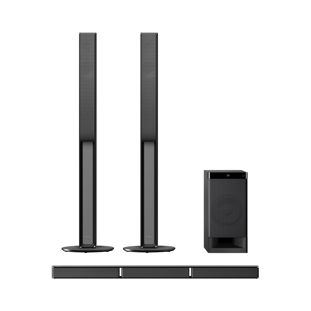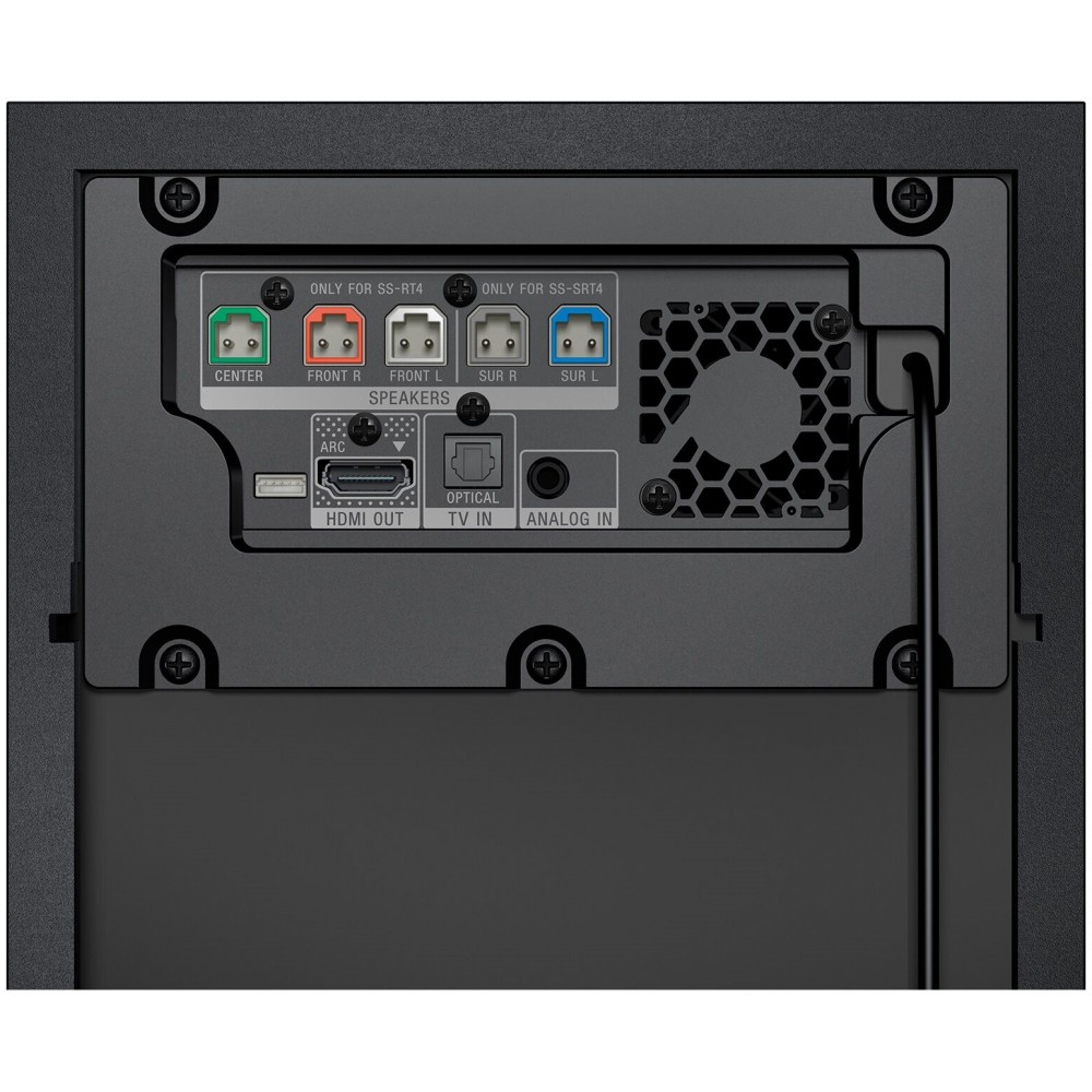 - قابلیت One-touch برای اتصال سریع موبایل به ساندبار از طریق بلوتوث به کمک چیپ NFC دارای بلندگو های فراگیر (Surround Speakers) مدل SS-SRT4 دارای 1 بلندگوی ساب ووفر (Subwoofer) 160 میلیمتری و با توان 170 وات دارای بلوتوث با برد یا شعاع عملکرد تا 25 متر (بدون وجود مانع) قابلیت Night Mode برای شنیدن واضح صدای دیالوگ ها حتی هنگام تماشای محتوا با صدای کم (مناسب استفاده در شب) دارای 2 بلندگوی فول رنج چپ و راست (Full Range Front L/R) 65 واتی در قسمت جلوی ساندبار دارای صدای فراگیر واقعی 5.1 کاناله پشتیبانی از برنامه Sony | Music Center برای مدیریت و کنترل ساندبار از طریق موبایل هوشمند دارای چراغ نشانگر ال ای دی آبی رنگ (Blue LED indicator) جلوی ساب ووفر برای نمایش وضعیت بلوتوث تکنولوژی +ClearAudio برای تولید صدای واضح و شفاف دارای ساندبار (Bar Speaker) مدل SS-RT4 دارای 1 بلندگوی وسط (Center) 170 واتی در قسمت میانی ساندبار پشتیبانی از فرمت LPCM با 2 کانال صوتی تکنولوژی Clear Voice برای بهبود و تقویت صدای دیالوگ ها و بهتر شنیده شدن صدای گوینده پشتیبانی از فرکانس بلوتوث از 2.4000GHz تا 2.4835GHz دارای 1 پورت ورودی AUX از نوع 3.5 میلیمتری قابلیت USB Video & Music Playback برای پخش فایل های صوتی و ویدئویی از طریق حافظه فلش و پورت USB دارای کابل HDMI به طول 1.5 متر دارای صفحه نمایش کاراکتری برای نمایش اطلاعات دارای بلندگوی ساب ووفر (Subwoofer) سیمی از نوع اکتیو (Active) دارای بلندگوی ساب ووفر (Subwoofer) مدل SA-WRT40 دارای 2 بلندگوی فراگیر فول رنج چپ و راست (Full Range Surround L/R) 65 میلیمتری و با توان 65 وات تکنولوژی Dolby Digital 5.1 یا Dolby 5.1 برای تولید صدای فراگیر و سه بعدی قابلیت Bravia Sync (HDMI-CEC) برای کنترل ساندبار از طریق ریموت کنترل تلویزیون (در صورت اتصال ساندبار به تلویزیون سونی از طریق کابل HDMI) پشتیبانی از مدولاسیون بلوتوث FHSS (Freq Hopping Spread Spectrum) قابلیت Auto Standby Mode برای رفتن ساندبار به حالت استندبای (آماده به کار) در صورت عدم استفاده از ساندبار تا 20 دقیقه