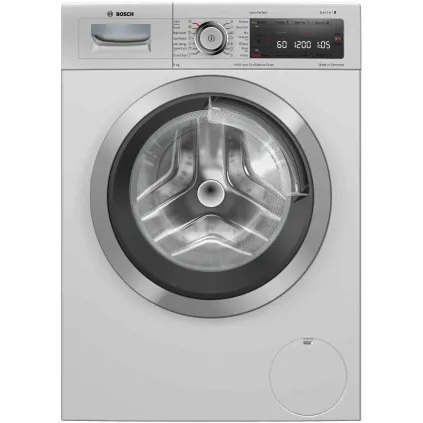 - قابلیت Water Plus برای اضافه کردن آب و دور چرخش بیشتر به برنامه شستشو برنامه Night Wash برای کاهش صدای ماشین لباسشویی هنگام کار و قطع صدای بوق پایان شستشو مناسب استفاده در شب دارای موتور EcoSilence Drive با صدای کم، راندمان و طول عمر بالا و صرفه جویی در مصرف انرژی قابلیت Rinse برای تنظیم تعداد آبکشی به صورت دستی دارای لوله ورودی آب به طول 150 سانتی متر مدت زمان شستشو با برنامه 40℃ Cotton حدود 105 دقیقه طراحی ضد لرزش (AntiVibration Design) برای کاهش لرزش و صدای لباسشویی هنگام کار قابلیت Prewash برای خیس کردن لباس ها پیش از شروع برنامه شستشو سیستم لکه بری (AntiStain System) برای شستشو و از بین بردن 4 نوع لکه مختلف با توجه به انتخاب کاربر سیستم Automatic Load Adjustment برای تنظیم میزان مصرف آب و انرژی نسبت به حجم لباس ها دارای بوق (Buzzer) برای اعلام پایان برنامه شستشو سیستم تاخیر در شروع برنامه 1 تا 24 ساعت تضمین عملکرد و کارایی موتور EcoSilence Drive تا 10 سال توسط بوش ویژگی EcoBar Plus برای نمایش میزان مصرف انرژی و آب نسبت برنامه شستشوی انتخاب شده سرعت چرخش 1600 دور در دقیقه (1600 rpm) قابلیت Child Lock برای قفل کردن پنل کنترلی و برنامه های ماشین لباسشویی دارای لوله تخلیه آب به طول 150 سانتی متر قابلیت Stains برای انتخاب نوع لکه و از بین بردن آن هنگام شستشوی لباس ها برنامه SuperQuick 15 برای شستشوی سریع لباس ها در 15 دقیقه سیستم چندگانه جلوگیری از نشت آب (Multiple Water Protection) دارای محفظه مواد شوینده تقسیم بندی شده مناسب استفاده از مواد شوینده مایع (Divider for Liquid Detergent) استفاده از آب سرد بعنوان ورودی دارای دیگ شستشو VarioDrum با طراحی برجسته برای جلوگیری از آسیب رسیدن به لباس ها سیستم تشخیص کف (Foam Detection System) برای از بین بردن کف باقیمانده تکنولوژی ActiveWater Plus برای مدیریت و صرفه جویی در مصرف آب متناسب با حجم لباس ها دارای کابل برق به طول 160 سانتی متر قابلیت Ready in برای شروع شستشو با تاخیر و تنظیم زمان پایان شستشو از 1 تا 24 ساعت دارای سنسور جریان (Flow Sensor) برای تشخیص میزان آب ورودی سیستم Unbalanced Load Detection برای تشخیص توزیع نامناسب لباس ها در دیگ و توقف شستشو در صورت نیاز برنامه Anti-allergy برای شستشوی کاملا بهداشتی و از بین بردن باکتری ها و آلرژی ها تا 99.99% صفحه نمایش بزرگ از نوع LED قابلیت SpeedPerfect برای کاهش زمان برخی از برنامه های شستشو حداکثر تا 65% دیگ شستشو با حجم 60 لیتر یا ظرفیت XXL قابلیت Easy Iron جهت کاهش چین خوردگی لباس ها قابلیت Reload برای اضافه کردن لباس حتی بعد از شروع شستشو دارای پوشش عایق صدا (Sound insulation) در زیر ماشین لباسشویی نمایش حداکثر وزن البسه قابل شستشو برای برنامه شستشوی انتخاب شده محفظه مواد شوینده با امکان تمیز کردن آسان (Easy Cleaning Detergent Drawer)