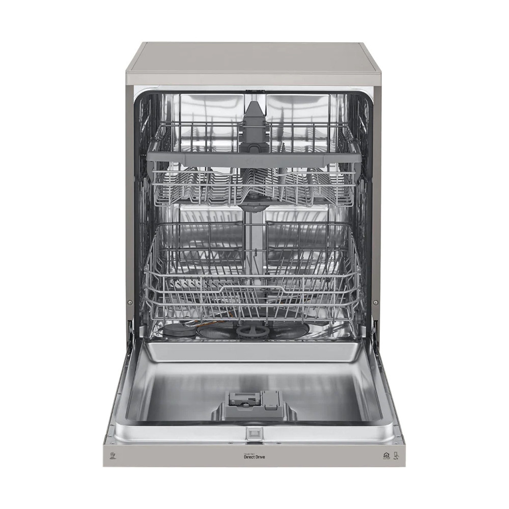 ظرفشویی ال جی DFB512FP از محصولات خوش ساخت و با دوام شرکت کره ای ال جی می باشد که با رنگ نقره ای تولید شده است. این مدل ظرفشویی به دلیل ظرفیت بالای 14 نفره ای که دارد به آسانی حجم کثیری از ظروف کثیف را در داخل خود جای می دهد. همچنین قابلیت تنظیم کردن ارتفاع سبدهای ظرفشویی ال جی به کاربر این امکان را می دهد تا به راحتی اقلام بسیار بزرگ مانند انواع قابلمه ها را داخل آن قرار داد. از برجسته ترین امکانات ظرفشویی ال جی می توان به سیستم اسپری چهار بازو یا همان QuadWash اشاره داشت که ال جی با جای دادن آن در این مدل ظرفشویی این اطمینان را به کاربر می دهد تمامی ظروف به کمک این اسپری کاملا تمیز و پاکیزه از داخل ظرفشویی بیرون می آیند. همچنین نوع موتور ظرفشویی ال جی Inverter Direct Drive می باشد که علاوه بر ارائه کارایی مناسب؛ در عین حال نیز میزان نویز بسیار پایینی را در هنگام شستشو تولید می کند. سیستم عیب یاب هوشمند Smart Diagnosis و سیستم هوشمند SmartThinQ هر کدام برای ظرفشویی ال جی می باشند که در بخش های بعدی به شرح مفصل تر آنها می پردازیم. میزان مصرف آب هدر رونده توسط ظرفشویی ال جی تنها 9 لیتر می باشد که در کنار کلاس بهره وری انرژی A++ می توان این اطمینان را حاصل آورد که در پایان هر ماه شاهد هزینه های پایین قبض آب و برق می شوید. به علاوه طراحی زیبا و از همه مهمتر جنس فلزی ضد زنگ ظرفشویی ال جی یکی از دلایل قاطعی می باشد که کاربران زیادی از خرید آن استقبال به عمل می آورند. شما نیز اگر به دنبال یک نوع ظرفشویی با امکانات خوب و قیمت مناسب می گردید پیشنهاد این ظرفشویی ال جی DFB512FP می تواند بهترین گزینه باشد.