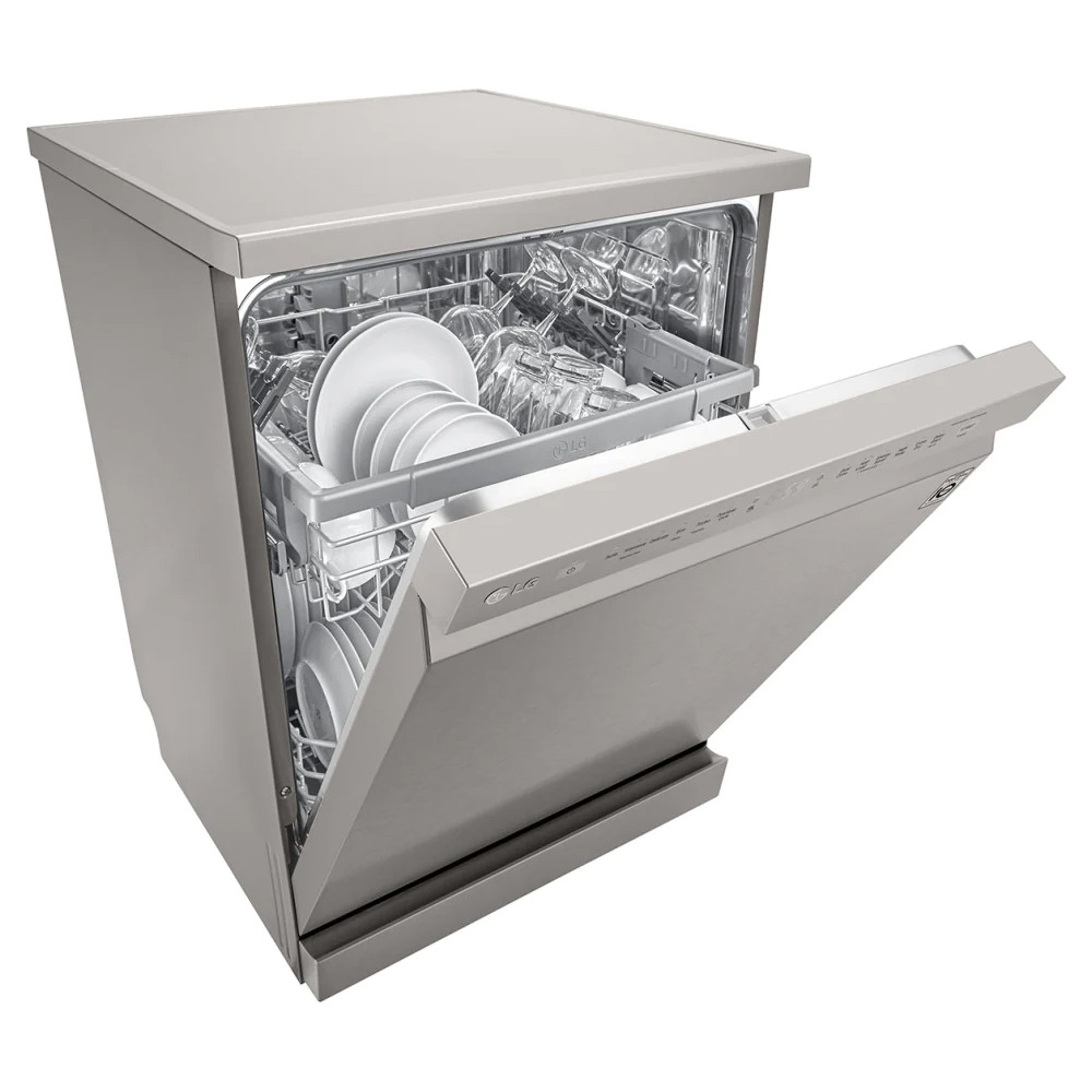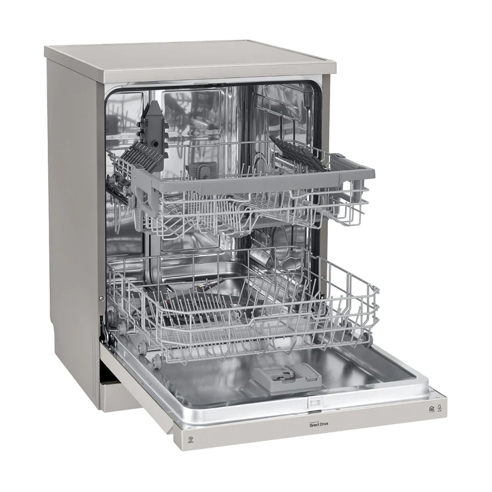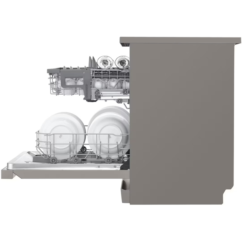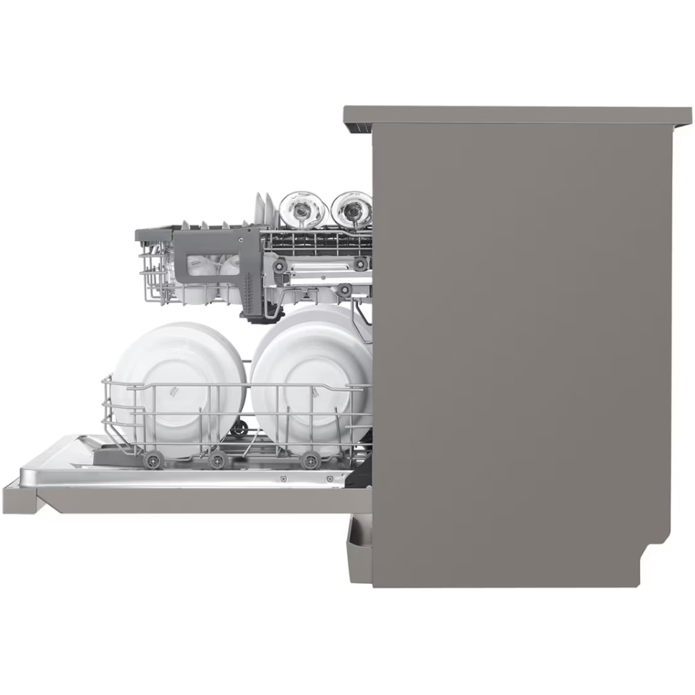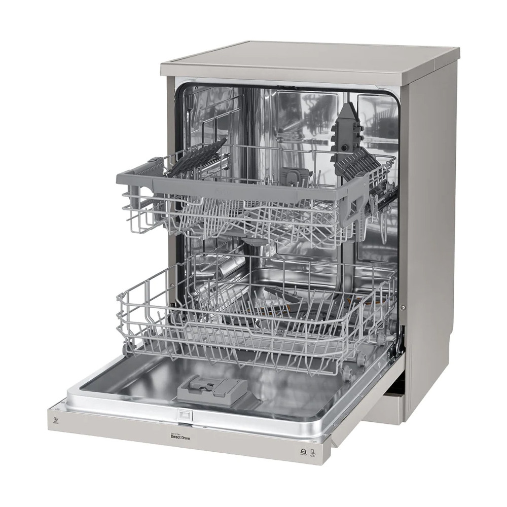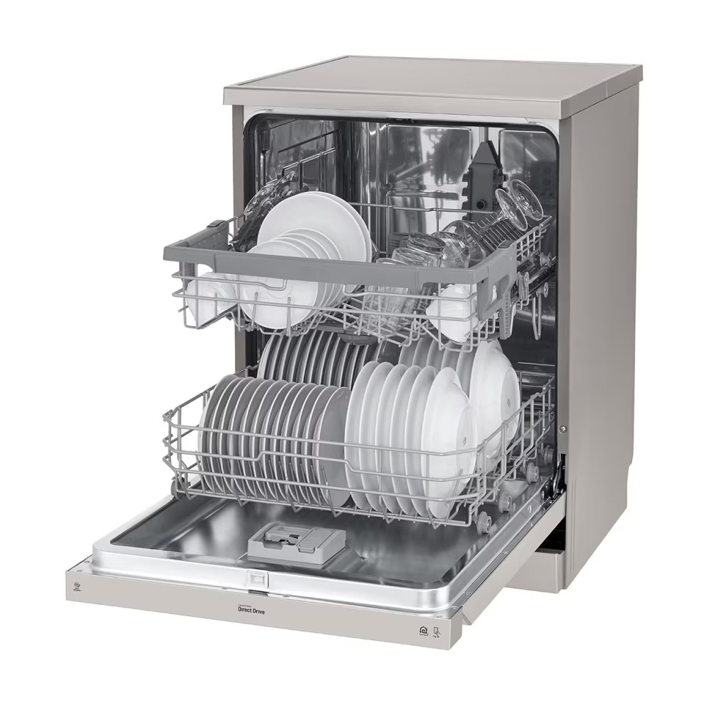 - سیستم Water Softener برای تنظیم میزان سختی آب سیستم EasyRack Plus برای تنظیم طبقات یا سبد های ماشین ظرفشویی تکنولوژی Detergent Detection برای صرفه جویی و تنظیم خودکار میزان استفاده از مواد شوینده قابلیت Energy Saver برای صرفه جویی در مصرف انرژی قابلیت Adjustable Leg برای تنظیم پایه ها تا 30 میلیمتر قابلیت Control Lock برای قفل کردن پنل کنترلی ماشین ظرفشویی دارای قیف (Funnel) برای پر کردن مخزن نمک ماشین ظرفشویی استفاده از مواد ضد باکتری در ساخت برخی از اجزا ماشین ظرفشویی (Anti-Bacterial Treatment) دارای نگهدارنده مخصوص لیوان های پایه دار (Stemware Holder) محفظه داخلی ماشین ظرفشویی از جنس فولاد ضد زنگ با دوام (NeveRust Stainless Steel) تضمین عملکرد و کارایی موتور Inverter Direct Drive تا 10 سال توسط ال جی سیستم تنظیم شدت جریان آب بین سبدها و طبقات مختلف (Vario Washing System) قابلیت Half Load برای شستشوی ظروف با نصف ظرفیت برنامه Delicate برای شستشوی ظروف ظریف و شیشهای دارای سبد کوچک Vario Basket یا Cutlery Basket مخصوص کارد، قاشق و چنگال تکنولوژی QuadWash برای شستشوی بهتر ظروف با استفاده از بازوی آبپاش 4 پره دارای نشانگر پر کردن مجدد نمک (Salt Refill Icon) قابلیت Dual Zone برای شستشوی ظروف ظریف و ظروف بزرگ به طور هم زمان شستشوی توربو (Turbo Cycle) در 59 دقیقه دارای 3 بازوی آبپاش (Top, Upper, Lower Spray Arms) سیستم Smart Diagnosis برای عیب یابی هوشمند دارای 1 نوار نویزگیر (Noise Strip) با قابلیت نصب برای کاهش انتقال لرزش و صدای ماشین ظرفشویی سیستم Aqua-Stop برای جلوگیری از نشت آب جنس بدنه فولاد ضد زنگ (Stainless Steel) دارای موتور Inverter Direct Drive با طول عمر بالا و صرفه جویی در مصرف انرژی و زمان هنگام شستشو سیستم SenseClean میزان کثیفی ظروف را تشخیص می دهد و شستشو را به صورت خودکار تنظیم میکند قابلیت Extra Dry برای خشک کردن بهتر ظروف طراحی کاملا مینیمال برای هماهنگی هر چه بهتر با آشپزخانه شما برنامه شستشوی Machine Care برای شستشو و تمیز کردن خودکار داخل ماشین ظرفشویی دارای چرخه Intensive برای شستشوی ظروف بسیار کثیف قابلیت شروع شستشو با تاخیر از 1 تا 12 ساعت شستشوی سریع (Express Cycle) در 38 دقیقه دارای سنسور تشخیص میزان کثیفی آب و ظروف (Soil Sensor (Turbidity Sensor)) پشتیبانی از برنامه LG ThinQ برای کنترل و مدیریت ماشین ظرفشویی از طریق موبایل (مخصوص موبایل های اندرویدی و iOS) قابلیت Machine Clean Reminder جهت یادآوری تمیز کردن دستگاه از طریق برنامه LG ThinQ قابلیت High temp برای شستشو با آب داغ مجهز به قابلیت Delay Start برای شروع شستشو با تاخیر