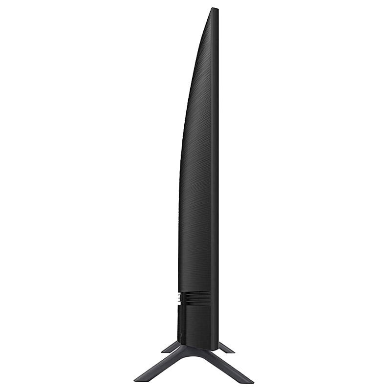 باریک و شیک! این بهترین لقبی بود که سامسونگ می توانست به تلویزیون 55RU7300 ببخشد. بار دیگر سامسونگ با پرده برداری از جدیدترین تلویزیون های سال 2019 خود برخی از آنها را همچون مدل RU7300 با طراحی منحنی شکل روانه بازار کرد. میزان انحنای صفحه نمایش تلویزیون سامسونگ 4200R می باشد که با قرار گیری اش در هر جایی شیک بودن را به آنجا می بخشد. در واقع تلویزیون سامسونگ آنچنان ماهرانه جلا داده شده و به صورت حرفه ای بر روی آن کار شده که چه از سمت جلو و چه از سمت عقب یا چه تلویزیون بر روی دیوار باشد و چه بر روی دکور در هر صورت لوکس بودن خود را به رخ می کشد. طراحی پایه دو شاخهای تلویزیون سامسونگ همراه با قاب باریک آن که هر چهار طرف صفحهنمایش را فراگرفته همگی ساختاری از یک هارمونی خاص را در کنار هم به وجود آورده اند. اگر بخواهید به وسیله صفحه نمایش تلویزیون سامسونگ به تماشای برنامه ها بنشینید، در هر کجا و با هر فاصلهی مکانی از تلویزیون باز هم می توان به صورت استاندارد هر برنامه را با دقت و کیفیت بالایی مشاهده کرد. در کل باید گفت تلویزیون سامسونگ 55RU7300 چه در حالت روشن و چه در حالت خاموش طراحی منحصر بفردی به محیط می بخشد و بیشترین دلیل خاص بودن فضا را می توانید به کمک براکت احساس کنید. چرا که وجود یک براکت جهت نصب تلویزیون بر روی دیوار کمک چشمگیری به شیک جلوه دادن محیط می کند. شما نیز اگر جزو آن دسته از افراد وسواس هستید و می خواهید از فضایی سینمایی در منزل برخوردار شوید، با انتخاب همین مدل 55RU7300 رویای خود را تحقق می بخشید.