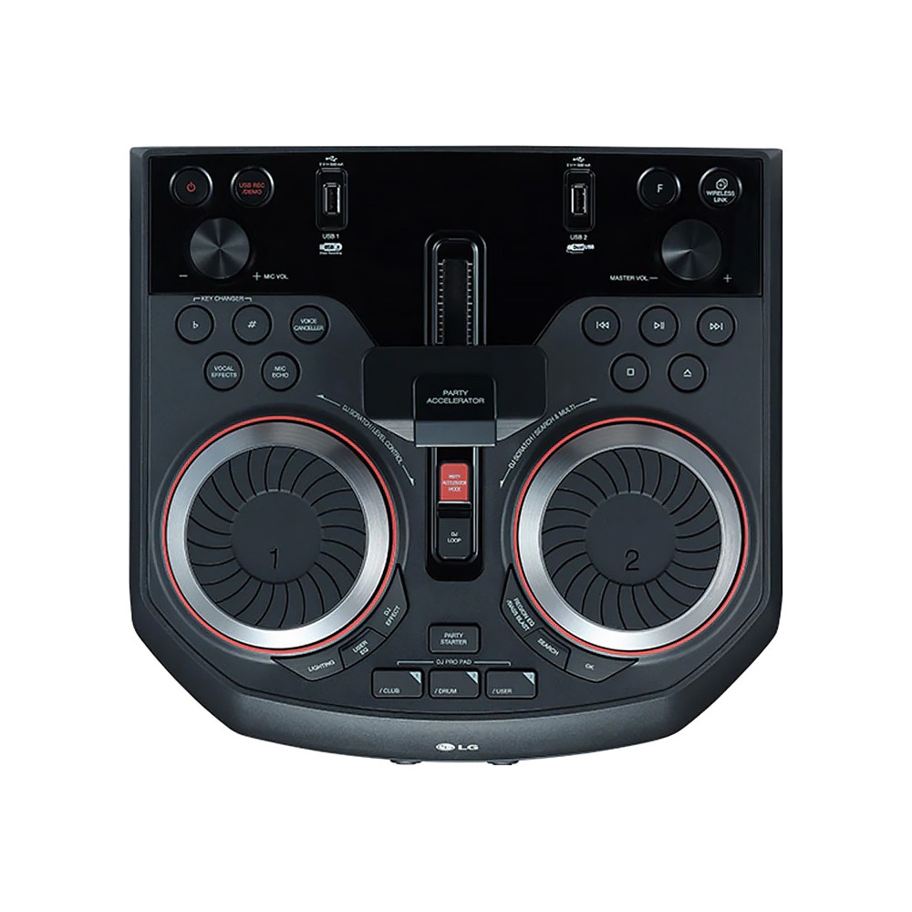- تکنولوژی DRC (Dynamic Range Control) برای جلوگیری از افزایش و کاهش ناگهانی صدا (فقط برای محتوای Dolby Digital) قابلیت Party Accelerator برای ایجاد افکت های دی جی قابلیت Auto DJ برای پخش آهنگ ها به صورت پیوسته دارای 1 پخش کننده دیسک نوری با قابلیت پخش CD قابلیت DJ Scratch برای ایجاد افکت های دی جی قابلیت Vocal Effects با 18 حالت مختلف برای تغییر صدای خواننده در صورت وصل بودن میکروفون دارای 2 بلندگوی توییتر (Tweeter) 50.8 میلیمتری و 2 بلندگوی میدرنج (Mid-Range) 76.2 میلیمتری با توان کلی 590 وات در قسمت جلوی سیستم صوتی قابلیت Bluetooth Power On (Stand by) برای روشن شدن خودکار سیستم صوتی هنگام اتصال دستگاهی دیگر به آن از طریق بلوتوث قابلیت Party Kick Starter Sampler Creator جهت ضبط و ساخت افکت های صوتی دلخواه برای قابلیت Party Kick Starter قابلیت اتصال میکروفون (Microphone) به سیستم صوتی دارای 1 پورت ورودی صدای آنالوگ یا AUX از نوع RCA L/R قابلیت Wireless Party Link (Twin Mode) برای اتصال بی سیم (بلوتوثی) به سیستم صوتی مشابه و ارائه صدای قدرتمندتر قابلیت Mic Volume برای تنظیم سطح صدای میکروفون پشتیبانی از برنامه Music Flow Bluetooth برای مدیریت و کنترل سیستم صوتی از طریق موبایل های هوشمند اندروید قابلیت Dimmer برای تنظیم نور صفحه نمایش قابلیت DJ Loop برای تکرار یک قسمت از آهنگ و ایجاد افکت های دی جی (زمانی که موزیک از طریق CD یا USB در حال پخش است) قابلیت Station Preset برای ذخیره سازی 50 کانال رادیو FM قابلیت Sampler Creator برای ضبط و ساخت افکت های صوتی دلخواه در موبایل و انتقال بی سیم (بلوتوثی) آنها به سیستم صوتی از طریق برنامه مخصوص موبایل قابلیت Echo برای اضافه کردن افکت اکو به صدا در 2 سطح مختلف احتمال انحراف فرکانس صدا یا Total Harmonic Distortion (THD) به میزان 10% قابلیت رقص نور خطی Sparkle Lighting در جلوی سیستم صوتی قابلیت EZ File Search (File/Folder Search With Music Playing) برای جستجوی سریع و آسان فایل و پوشه های درون دیسک یا حافظه فلش و پخش آهنگ ها دارای 1 بلندگوی ساب ووفر (Subwoofer) 203.2 میلیمتری با توان 410 وات در قسمت جلوی سیستم صوتی قابلیت User EQ برای تنظیم اکولایزر صدا به صورت دستی قابلیت Voice Canceller برای کاهش صدای خواننده از آهنگ در حال پخش قابلیت Multi Juke Box (Multi Jukebox) برای اتصال همزمان 3 موبایل هوشمند از طریق بلوتوث (Bluetooth) به سیستم صوتی و ایجاد لیست آهنگ مشترک قابلیت نمایش ساعت (Clock) قابلیت DJ Sharing برای انتقال آهنگ از حافظه فلش به موبایل هوشمند از طریق برنامه مخصوص موبایل دارای 2 ورودی میکروفون از نوع 6.3 میلیمتری قابلیت Alarm برای تنظیم زمان روشن شدن سیستم صوتی و پخش آهنگ یا رادیو (به غیر از ورودی AUX و بلوتوث) دارای ریموت کنترل ساده ال جی مدل MA2 پشتیبانی از فرکانس صوتی از 40Hz تا 20KHz قابلیت Auto Power On/Off برای روشن یا خاموش شدن خودکار سیستم صوتی هم زمان با تلویزیون در صورت اتصال آن به تلویزیون ال جی از طریق بلوتوث قابلیت Party Kick Starter برای پخش افکت صوتی قابلیت Juke Box (Jukebox) برای ایجاد لیست پخش از آهنگ های درون دیسک یا حافظه فلش قابلیت FOTA (Firmware Over-the-Air) برای آپدیت نرم افزاری سیستم صوتی از طریق موبایل هوشمند (فقط از طریق نرم افزار مخصوص موبایل) دارای دستگیره در کناره ها و پشت سیستم صوتی برای حمل و نقل آسان قابلیت Sleep Timer برای تنظیم زمان به خواب رفتن دستگاه (بین 10 الی 180 دقیقه) قابلیت افکت دی جی (DJ Effects) با حالت های Flanger، Phaser، WAH و Delay قابلیت ChildSafe Mode برای جلوگیری از پخش صدای بلند به صورت ناگهانی هنگام روشن کردن سیستم صوتی قابلیت DJ Pad با 3 دکمه فیزیکی روی بدنه سیستم صوتی برای دی جی کردن آهنگ ها به صورت حرفه ای دارای چرخ (Wheels) برای حمل و نقل آسان تکنولوژی LG Sound Sync برای اتصال بی سیم یا با سیم سیستم صوتی به تلویزیون ال جی و امکان کنترل صدا از طریق تلویزیون دارای نسبت سیگنال به نویز 75 دسی بل دارای 2 پورت USB 2.0 قابلیت Multi Bluetooth (Multipoint) برای اتصال هم زمان حداکثر 3 موبایل هوشمند (اندرویدی) به سیستم صوتی قابلیت Auto Music Play (Move&Play) برای پخش و انتقال خودکار صدا از موبایل به سیستم صوتی در محدوده خاصی از آن (از طریق نرم افزار مخصوص موبایل) قابلیت رقص ن