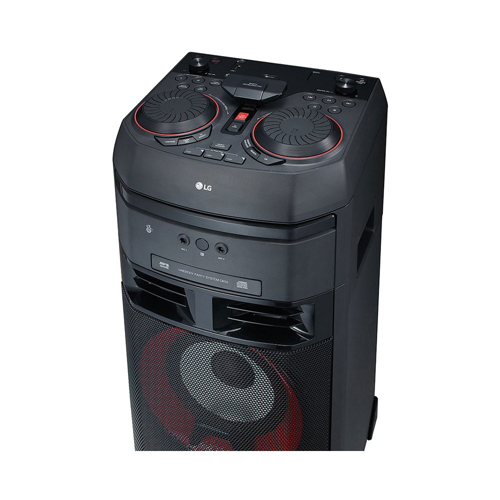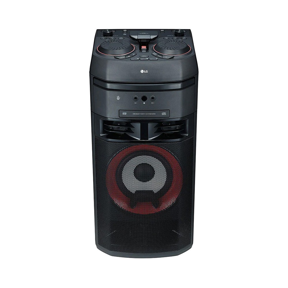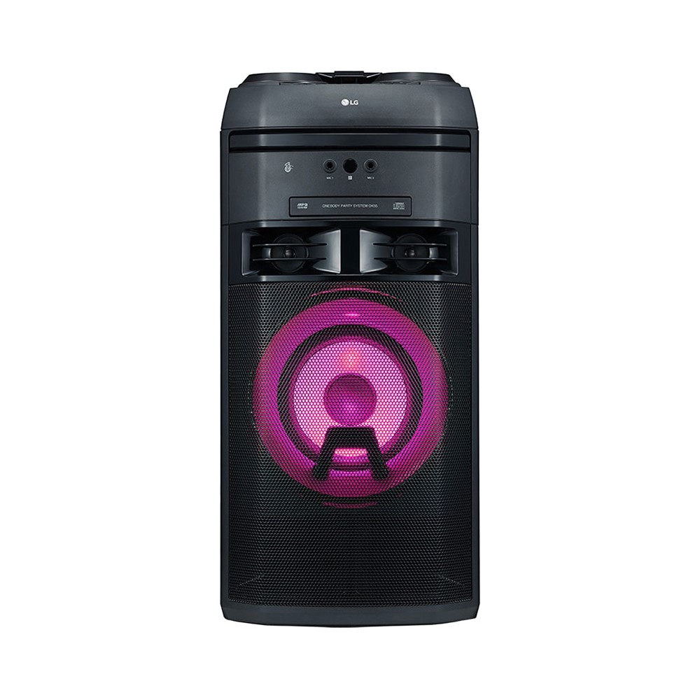سیستم صوتی ال جی XBOOM OK55 از جمله محصولات 2018 ال جی می باشد. سیستم صوتی ال جی OK55 ارزانترین سیستم صوتی از سری OK است. این محصول یکی دیگر از اعضای خانواده بزرگ XBOOM می باشد که ممکن است به اشتباه با عنوان سیستم صوتی شیک ال جی OK55 نیز در بازار شناخته شود. این سیستم صوتی قدرت و کیفیت صدای نسبتا خوبی دارد و برای مهمانی ها و دورهمی های کوچک پیشنهاد می شود. سیستم صوتی OK55 دارای 1 کانال صوتی می باشد که می تواند صدای مونو (Mono) پخش کند و متاسفانه امکان تولید صدای استریو را ندارد. البته این بدان معنی نیست که جزئیات محتوای صوتی استریو را از دست می دهید. این محصول از جمله سیستم های صوتی Hi-Fi ال جی است و صدایی با کیفیت ارائه می دهد. سیستم صوتی فوق دارای 2 بلندگوی توییتر (Tweeter) با توان 165 وات و 1 ووفر (Woofer) با توان 170 وات می باشد و جمعا توان خروجی صدای آن برابر با 500 وات می باشد. قدرت صدای بیس این محصول خوب است، ولی ال جی از تکنولوژی Bass Blast در سیستم صوتی فوق استفاده نموده است که باعث می شود صدای باس قدرتمندتری را تجربه کنید. سیستم صوتی خانگی ال جی ایکس بوم OK55 از انواع ورودی های رایج جهت پخش صدا پشتیبانی می کند. این محصول دارای 1 پورت AUX از نوع 3.5 میلیمتری و 1 پورت ورودی صدای آنالوگ از نوع RCA L/R می باشد که امکان اتصال انواع پخش کننده های صوتی یا حتی موبایل را به سیستم صوتی فراهم می سازد. همچنین این سیستم صوتی به بلوتوث داخلی نسخه 4 مجهز شده است و به لطف ویژگی Multi Bluetooth (Multipoint)، همزمان 3 گوشی هوشمند را به محصول فوق متصل نمایید. محصول پیش روی شما دارای 1 پورت USB نیز می باشد که از حافظه های فلش با سیستم فایل FAT16 و FAT32 پشتیبانی می کند و شما می توانید آهنگ های موجود در حافظه جانبی را روی این سیستم صوتی پخش کنید. ال جی این سیستم صوتی خانگی را به پخش کننده دیسک مجهز نموده است تا بتواند سی دی صوتی (Audio CD) را پخش کند. در صورتی که به شبکه های رادیویی نیز علاقه دارید، این محصول امکان پخش رادیو FM را دارد، حتی این امکان را به شما می دهد تا حداکثر 50 ایستگاه رادیویی را ذخیره کرده و به راحتی به آنها دسترسی داشته باشید. سیستم صوتی ایکس بوم ال جی OK55 امکانات بسیار خوبی نیز در اختیار شما قرار می دهد. این محصول علاوه بر قابلیت پخش از حافظه جانبی، به قابلیت USB Direct Recording مجهز می باشد و می تواند محتوای در حال پخش را روی حافظه فلش ضبط نماید. با وجود قابلیت DJ Sharing می توانید آهنگ مد نظر خود را از حافظه جانبی به موبایل خود منتقل کنید (برای این کار نیاز به برنامه مخصوص ال جی دارید). به همراه این محصول ریموت کنترل مدل MA2 عرضه می شود و به راحتی می توانید این سیستم صوتی را توسط آن کنترل نمایید. همچنین سیستم صوتی فوق به تکنولوژی LG Sound Sync نیز مجهز می باشد و در صورتی که به یک تلویزیون ال جی متصل شود که این قابلیت را دارد، می توانید صدای سیستم صوتی را از طریق تلویزیون خود کنترل نمایید. این سیستم صوتی از نرم افزار Music Flow Bluetooth پشتیبانی می کند و شما می توانید با نصب این برنامه روی گوشی هوشمند خود، محصول فوق را کنترل نمایید. همچنین به لطف این برنامه و قابلیت Multi Jukebox می توانید یک لیست مشترک از آهنگهای موجود در 3 گوشی موبایل هوشمند تهیه کرده و پخش نمایید. توسط این نرم افزار امکان شخصی سازی برخی از ویژگی های این محصول نیز وجود دارد که در ادامه به توضیح مفصل تر آنها خواهیم پرداخت. از ویژگی های خاص این سیستم صوتی می توان به قابلیت Auto Music Play اشاره نمود. این ویژگی باعث می شود تا زمانی که از اتاقی به اتاق دیگر می روید، آهنگ در حال پخش بطور اتوماتیک به سیستم صوتی دیگری که در نزدیکی شما قرار دارد منتقل شود (سیستم های صوتی باید همگی از قابلیت Auto Music Play پشتیبانی کنند). از قابلیت های بسیار خوب دیگر این سیستم صوتی می توان به Wireless Party Link اشاره کرد که به شما این اجازه را می دهد تا بتوانید یک سیستم صوتی مشابه دیگر را به این محصول متصل نمایید و از صدای استریو و قدرتمند آنها لذت ببرید. سیستم صوتی 500 وات ال جی XBOOM OK55 امکانات بس