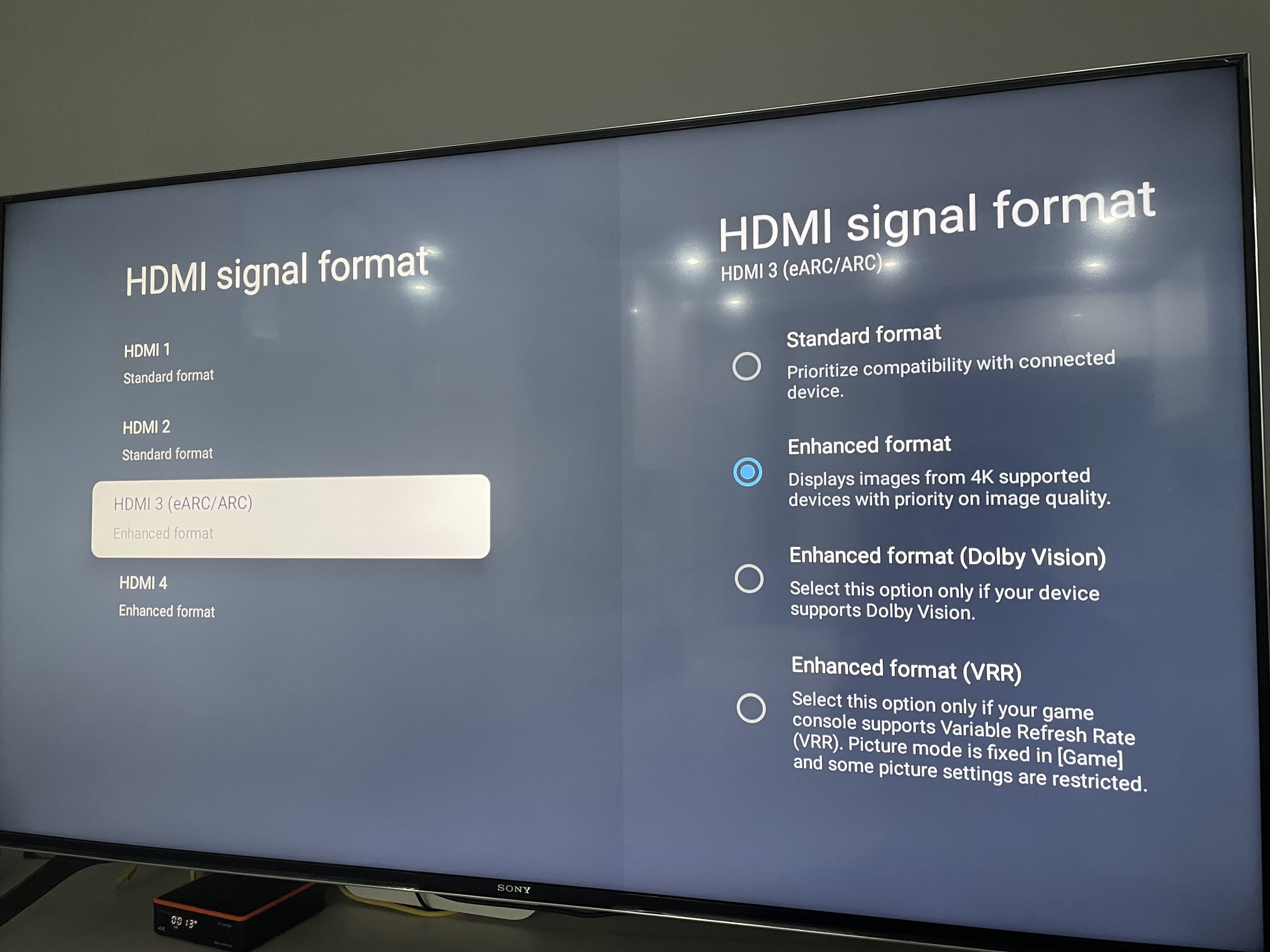 رفتم تنظیمات Hdmi که فرمودین گزینه اخر رو انتخاب کردم Enhanced format vrr