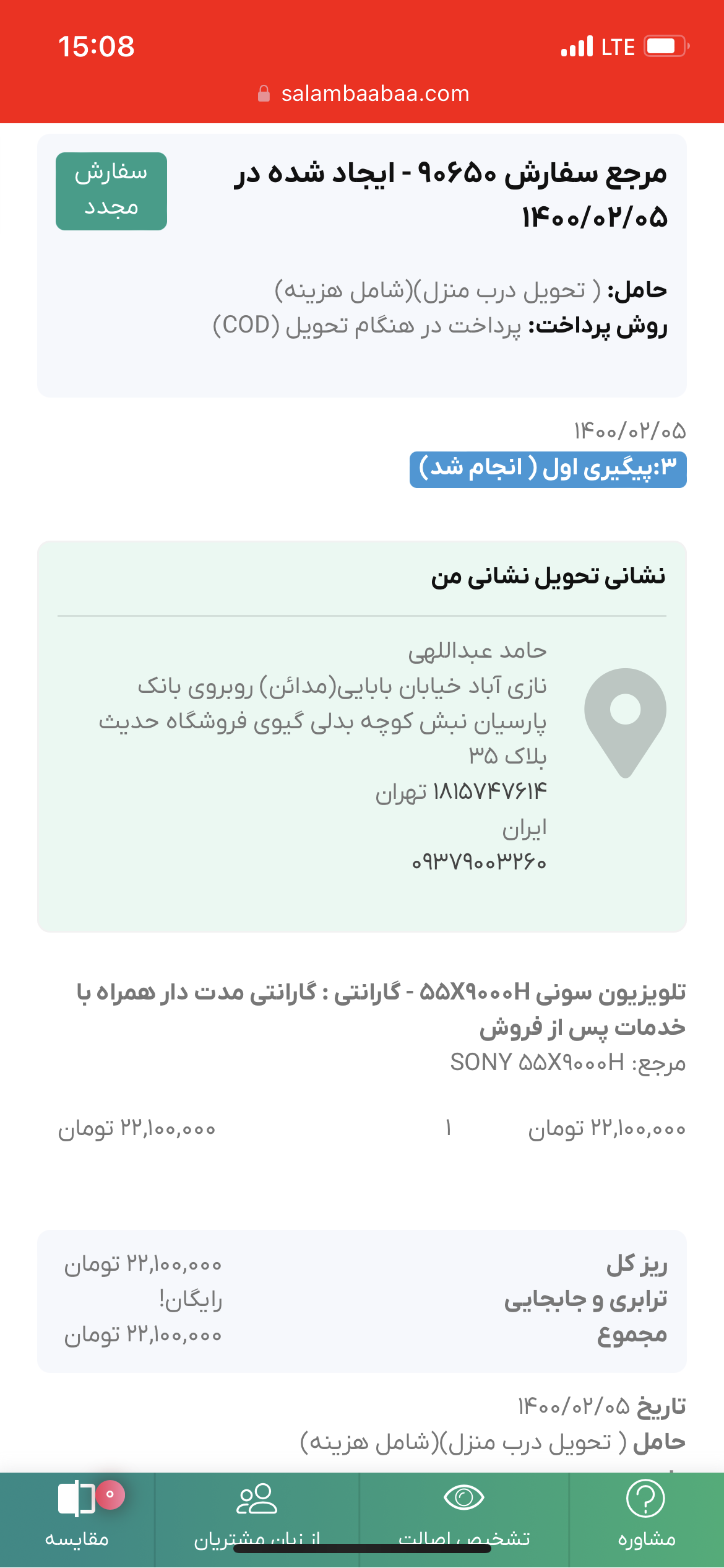 بله تلوزیون رو من دو سال پیش از همینجا خریدم ۵۵ اینچ سونی تو پروفایلم عکس فاکتور هست الان اسکرین شات میگیرم میفرستم خدمتتون