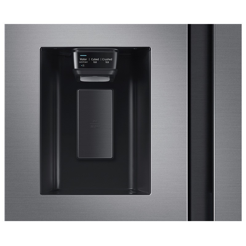 هر چه از طراحی زیبا و دلربای ساید بای ساید سامسونگ RS71 بگوییم باز هم زبان از توصیف از آن عاجز است. بهتر است بگوییم سبک طراحی ساید سامسونگ به حدی مدرن و امروزی طراحی شده که در زیبایی هر آشپزخانه نقش مهمی ایفا می کند. رنگ بسیار زیبای نقره ای این یخچال با هر فضایی به راحتی مچ می شود. همانطورکه می دانید این ساید بای ساید به صورت دو درب طراحی شده لذا قسمت یخچال در سمت راست و قسمت فریزر نیز در سمت چپ ساید بای ساید می باشد. آب سرکن نیز بر روی درب فریزر آن نگاشته شده است.