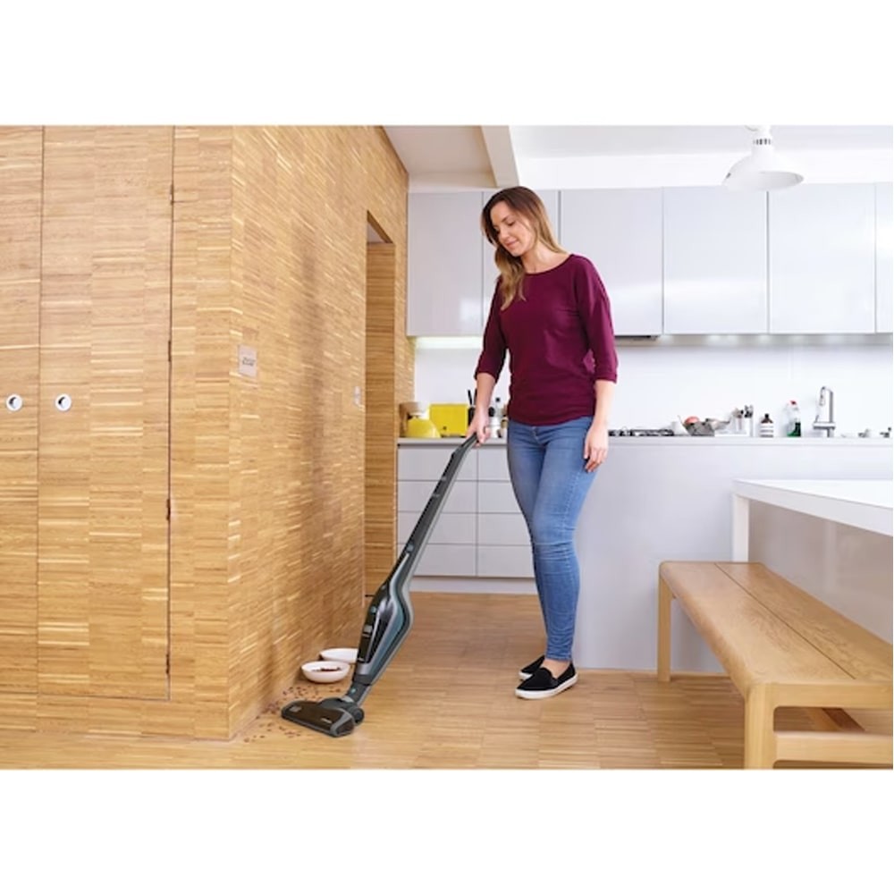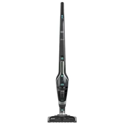 جارو شارژی ایستاده بلک اند دکر SVA420B برای استفاده ی همه جانبه مناسب است و چون به جارو شارژی 2 در 1 معروف است می توان از آن به دو طریق مختلف استفاده کرد؛ اول اینکه دارای یک میله ضربدار برقی است که برای برداشتن زبالههای سرسخت از فرش و سطوح سخت زمین طراحی شده است و جارو کردن نقاط مختلف را بسیار آسانتر میکند. ضمن اینکه به لطف سر چرخانش به راحتی در نقاط تنگ و اطراف گوشه ها ورود پیدا می کند. این جارو شارژی دارای دهانه ی گسترده ای است که منطقه پوشش بهینه ای را فراهم می کند و این کار کاربر را قادر می سازد تا با مکش صاف و کارآمد سریعتر تمامی نقاط را تمیز کند. دهانه پهن جارو شارژی دارای چرخ هایی در پشت برای حرکت آسان بر روی سطوح و فرش می باشد. میله ی جارو شارژی دارای ساختاری خود ایستاده است، بدین معنی که می تواند بدون هیچ گونه تکیه گاه به صورت عمودی بایستد. همچنین دارای کاسه ای است که به راحتی تخلیه می شود، و برای حفظ بهداشت بهینه قابل شستشو است این کار تضمین می کند که راحت ترین و بهداشتی ترین نظافت را داشته باشید. این ظرف گرد و غبار دارای ظرفیتی حدود 500 میلی لیتر که معادل 0.5 لیتر می باشد و به صورت یک ظرف شفاف طراحی شده و به کاربر این امکان را می دهد تا از پر شدن کامل کاسه مطلع شود. دوم اینکه در قسمت جلویی دستگاه یک جارو شارژی دستی نیز تعبیه شده است که با جدا کردن دسته عصایی آن می توان آن را تبدیل به جارو شارژی دستی کرد. از جارو شارژی دستی می توان برای تمیز کردن و جارو کردن خودرو، ماشین، مبل و پرده و یا قسمت ها و مکان های بسیار تنگی که دسترسی به آن ها امکان پذیر نیست، استفاده کرد. جارو شارژی دستی دارای طراحی نازل باریکی است که تمیز کردن مکانهای سخت را آسان تر میکند، از فضاهای نامناسب بین بالش های مبل یا گوشه ها و شکاف های بین صندلی های ماشین گرفته تا قفسه ها و لوازم خانگی و فضاهای فشرده را می توان با این جارو شارژی دستی پر کاربرد بلک اند دکر تمیز کرد.
