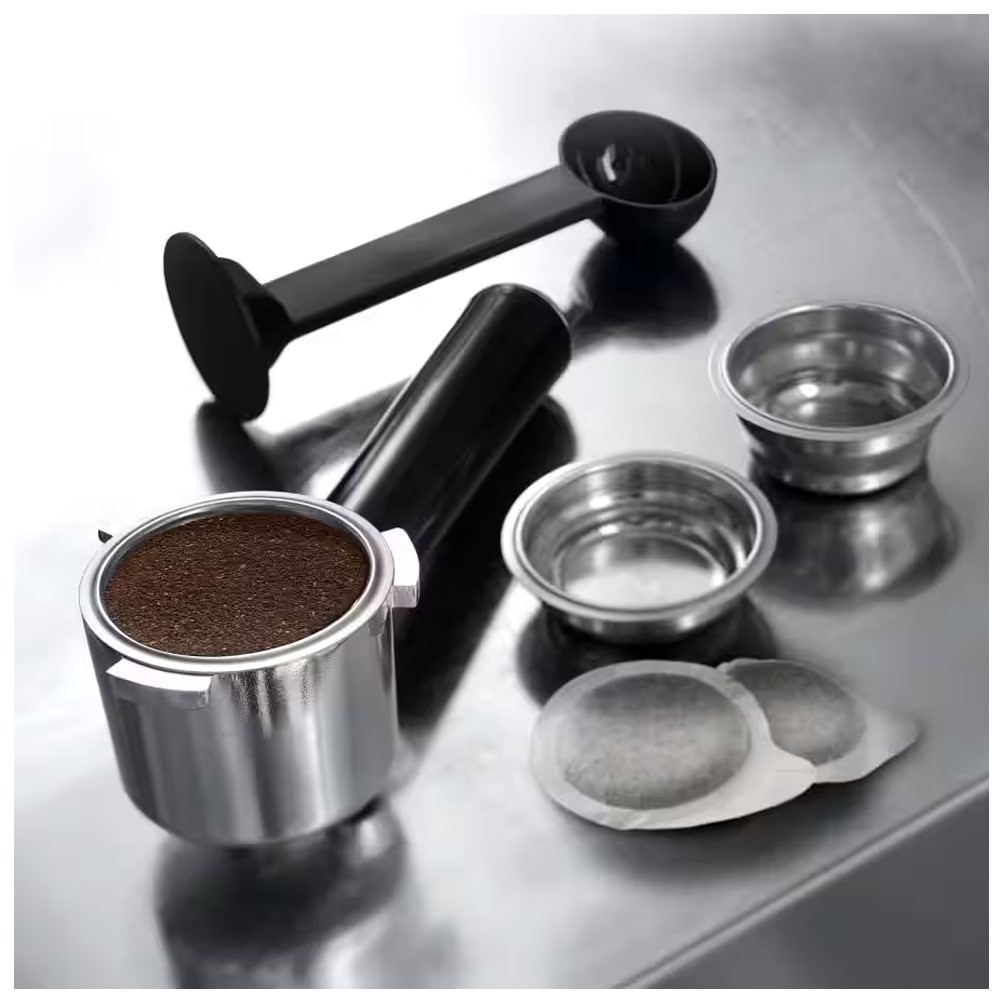 - سیستم گرمایش ترموبلاک قابلیت تنظیم میزان بخار به صورت دستی فیلتر های قهوه تحت فشار و دو جداره امکان تنظیم فاصله لیوان و نازل قابلیت تولید فوم شیر غلیظ