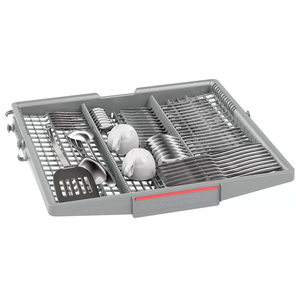 - دارای موتور EcoSilence Drive با صدای کم، راندمان و طول عمر بالا و صرفه جویی در مصرف انرژی سیستم AquaStop برای جلوگیری از نشت آب با گارانتی مادام العمر توسط بوش دارای نشانگر پر کردن مجدد نمک (Salt Refill Icon) تکنولوژی Glass Protection برای محافظت از ظروف شیشه ای و ظریف هنگام شستشو برنامه پیش شستشو (Pre-Rinse) برای شستن ظروف با آب سرد دارای قیف (Funnel) برای پر کردن مخزن نمک ماشین ظرفشویی قابلیت تنظیم ارتفاع طبقات یا سبد ها در 3 سطح مختلف Dosing assistant مخصوص انحلال کامل مواد شوینده و نفوذ پذیری بیشتر به داخل لکه ها و ذرات برنامه شستشوی Silence برای کارکرد با صدای کم (در حدود 40 دسی بل) دارای نشانگر پر کردن مجدد جلادهنده (Rinse Aid Refill Icon) برنامه Hygiene Plus جهت شستشوی بهداشتی و ضدعفونی کردن ظروف دارای چرخه Intensive برای شستشوی ظروف بسیار کثیف قابلیت شروع شستشو با تاخیر از 1 تا 24 ساعت سیستم Aqua-Stop برای جلوگیری از نشت آب (Load Sensor) سنسور تشخیص میزان ظروف قابلیت Remote Start برای شروع برنامه شستشو ماشین ظرفشویی از راه دور به کمک موبایل با برنامه Home Connect دارای طبقه یا سبد Vario Drawer یا Cutlery Drawer برای شستوشوی ظروف کوچک آشپزخانه دارای مبدل حرارتی (Heat Exchanger) برای خشک کردن ظروف دارای شاخکهای تاشو (Folding Prongs) طراحی کاملا مینیمال برای هماهنگی هر چه بهتر با آشپزخانه شما تکنولوژی ActiveWater برای شستشوی بهتر و صرفه جویی در مصرف آب و انرژی قابلیت ExtraDry برای خشک کردن بهتر ظروف محفظه داخلی ماشین ظرفشویی از جنس فولاد ضد زنگ (Stainless Steel) فناوری Speed Perfect Plus با توانایی شستشوی سریع ظروف برنامه شستشوی Machine Care برای شستشو و تمیز کردن خودکار داخل ماشین ظرفشویی دارای Wi-Fi برای اتصال به شبکه و اینترنت