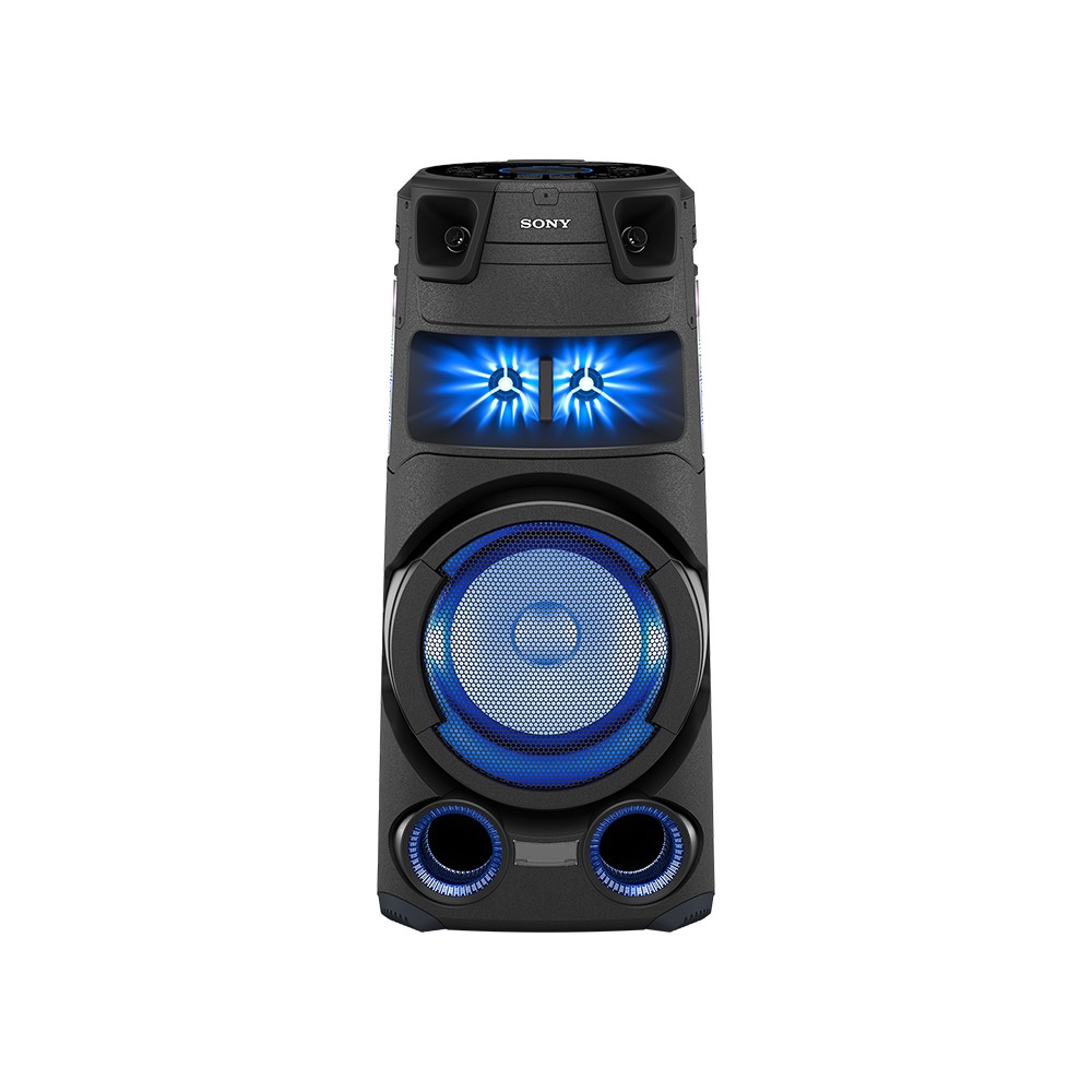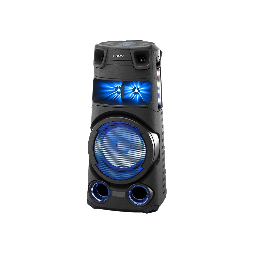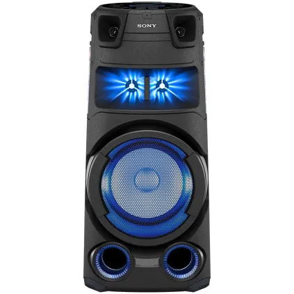 سیستم صوتی سونی MHC-V73D یا V73 جزو سیستم های صوتی 2020 سونی محسوب می شود. سیستم صوتی خانگی سونی V73D یکی از بهترین سیستم های صوتی سری MHC سونی در سال 2020 می باشد. این محصول ممکن است با مدل MHC-V73D//M SP6 نیز در بازار شناخته شود. این دستگاه که به اشتباه با مدل سیستم صوتی شیک سونی V73 نیز شناخته می شود در واقع مدل جدید تر و جایگزین سیستم صوتی سونی MHC-V72D در سال قبل است. تعداد کانال سیستم صوتی مذکور به طور رسمی توسط سونی اعلام نشده اما طبق بررسی هایی که ما انجام داده ایم دارای 2.1 کانال صوتی است. سیستم صوتی 2.1 کاناله سونی MHC-V73D دارای 2 بلندگوی میدرنج 80 میلیمتری، 4 بلندگوی توییتر 40 میلیمتری و 1 بلندگوی ووفر 300 میلیمتری می باشد. سونی درباره توان خروجی این مدل نیز اطلاعاتی را اعلام نکرده است اما به طور تقریبی توان خروجی 1440 وات را در اختیار کاربر قرار می دهد. این سیستم صوتی مجهز به 2 بلندگوی توییتر در قسمت جلو و 2 بلندگوی توییتر در قسمت پشت برای پخش صدای 360 درجه می باشد. پخش کننده خانگی سونی MHC-V73D با قابلیت پخش صدای همه جانبه (Omnidirectional Party Sound) کاملا مناسب استفاده در جشن و دورهمی ها است. سیستم صوتی مذکور دارای بلندگوی ووفر با تکنولوژی Jet Bass Booster می باشد و قادر به تولید صدای باس قدرتمندی است. به لطف استفاده از سیستم Double Bass Reflex و دو حفره خروج صدا در زیر بلندگوی ووفر، صدای بیس با قدرت بیشتری تولید می شود تا آن را از فواصل دورتری بشنوید. علاوه بر آن شما می توانید به کمک قابلیت Mega Bass در این محصول، صدای باس قدرتمند تری را تجربه کرده و هیجان در مهمانی و جشن های خود را دو چندان نمایید. باند سونی V73 با بهره مندی از تکنولوژی Hi-Fi، Dolby Audio و Dolby Digital می تواند صداها را با کیفیت بالایی به گوش شما برساند. این مدل دارای تکنولوژی Surround می باشد تا با ارائه صدای فراگیر مجازی، تجربه ای لذت بخش را برایتان رقم بزند. این سیستم صوتی دارای حالت های صدای پیش فرض است و می توانید به دلخواه خود حالت مورد نظر را انتخاب نمایید. علاوه بر آن سیستم صوتی مذکور دارای تکنولوژی ClearAudio+ می باشد و به کمک آن قادر است تنظیمات صدا را با توجه به صوت یا آهنگ در حال پخش به صورت خودکار تنظیم کند تا صداها را به صورت شفاف و واضح بشنوید. شما با استفاده از حالت FIESTA Mode در این محصول می توانید صداها را با قدرت بیشتری بشنوید تا حس حضور در یک مهمانی را به شما القا کند. علاوه بر آن حالت Football Mode نیز این امکان را به شما می دهد تا حس کنید در استادیوم حضور دارید و از تماشای برنامه های ورزشی نهایت لذت را ببرید. سیستم صوتی 1440 وات سونی V73D به لطف تکنولوژی Digital Sound Enhancement Engine آهنگ های فشرده شده پردازش می شوند و جزئیات از دست رفته در آنها بازیابی می شود. این کار با بهبود فرکانس صدا انجام می شود تا آهنگ ها را با کیفیتی نزدیک به آنچه که در استودیو ضبط شده اند تجربه کنید و از شنیدن جزئیات صدا در این سیستم صوتی بیش از پیش لذت ببرید. این مدل مجهز به قابلیت Live Sound است و به کمک تکنولوژی DSP آهنگ ها را به نحوی پخش می نماید که حس کنید در یک اجرای زنده یا کنسرت حضور دارید. از دیگر ویژگی های سیستم صوتی مذکور می توان به پشتیبانی از ژست های حرکتی (Gesture Control) اشاره نمود تا به راحتی با حرکت دست به صورت افقی و عمودی در بالای دستگاه، بسیاری از کارها را انجام دهید. این محصول مجهز به 2 پورت ورودی میکروفون می باشد و می توانید 2 میکروفون یا 1 میکروفون و 1 گیتار را هم زمان به آن متصل نمایید. سیستم صوتی 2020 سونی MHC-V73D با برخورداری از قابلیت دی جی و حالت های Pan، Wah، Flanger و Isolater امکانات خوبی را در اختیار شما قرار می دهد. شما می توانید به کمک حالت های مذکور و همچنین قابلیت Sampler در این دستگاه، دی جی مهمانی و جشن ها شده و اطرافیان خود را غافلگیر کنید. علاوه بر آن این مدل دارای قابلیت کارائوکه (Karaoke) با حالت های مختلف است تا با استفاده از آن به تمرین خوانندگی بپردازید و استعدادهای خود را شکوفا نمایید. از جمله حالت های کارائوکه در این سیستم صوتی می توان به Vocal Fader اشا