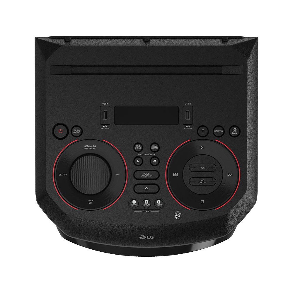 سیستم صوتی ال جی ON5 از جدیدترین سیستم صوتی های شرکت ال جی در سال 2020 است. این مدل از محصولات سری ON می باشد که با طراحی شیک و زیبایی همراه با 2 تویتر و 2 ساب ووفر صدایی با توان 500 وات را ارائه می دهد. بخش سیستم صوتی آن با پشتیبانی از Dolby Audio و افزایش بیس صدا هر کاربری را متحیر خواهد کرد. در قسمت بلندگوها شاهد نور پردازی یا همان رقص نور هستیم که متناسب با ریتم آهنگ هیجان و لذت خاصی را به مراسمات می بخشد. این محصول دارای پورت USB می باشد که با اتصال فلش مموری به آن می توان از پخش موسیقی های مورد علاقه با صدایی بلند لذت برد. از طرفی دیگر برای پخش موسیقی از قابلیت بلوتوث نیز می توانید استفاده نمایید. این سیستم صوتی ال جی دارای ورودی هایی برای اتصال میکروفون و گیتار می باشد، که با اتصال آن ها می توانید هم بخوانید هم بنوازید. همچنین با نصب برنامه XBOOM همزمان می توانید سه دستگاه تلفن همراه را با سیستم صوتی مچ کنید و بدون قطع موسیقی از پخش آهنگ های بیشتر برخوردار شوید. شیک ال جی ON5 با رنگ مشکی طراحی بسیار شیکی دارد و جلوه ای زیبا را به هر محیطی می بخشد. برای آشنایی با سایر امکانات و قابلیت های این شیک در ادامه با ما همراه باشید.