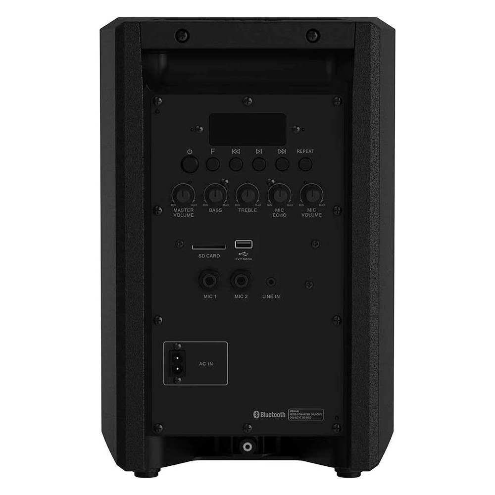 - دارای 2 ورودی میکروفون از نوع 6.3 میلیمتری انحراف فرکانس صدا یا Total Harmonic Distortion (THD) به میزان 10% قابلیت اتصال میکروفون (Microphone) به اسپیکر پشتیبانی از حافظه جانبی USB و سیستم فایل FAT16 و FAT32 قابلیت تنظیم سطح صدای میکروفون در صورت اتصال میکروفون به اسپیکر دارای 1 بلندگوی توییتر (Tweeter) 63.5 میلیمتری با کیفیت در قسمت جلوی اسپیکر دارای 1 پورت USB 2.0 دارای 1 دستگیره جهت حمل آسان امکان نصب روی پایه (پایه مخصوص باید به صورت جداگانه تهیه شود) دارای نسبت سیگنال به نویز 70 دسی بل دارای 1 پورت ورودی AUX از نوع 3.5 میلیمتری دارای 1 بلندگوی ووفر (Woofer) 203.2 میلیمتری پر قدرت در قسمت جلوی اسپیکر قابلیت کارائوکه (Karaoke) برای تمرین خوانندگی و نوازندگی و مسابقه دادن با دوستان خود پشتیبانی از پروفایل بلوتوث A2DP V1.3 قابلیت قرارگیری به صورت ایستاده و خوابیده پشتیبانی از فرکانس صوتی متغییر (Dynamic frequency response range) از 60Hz تا 20KHz