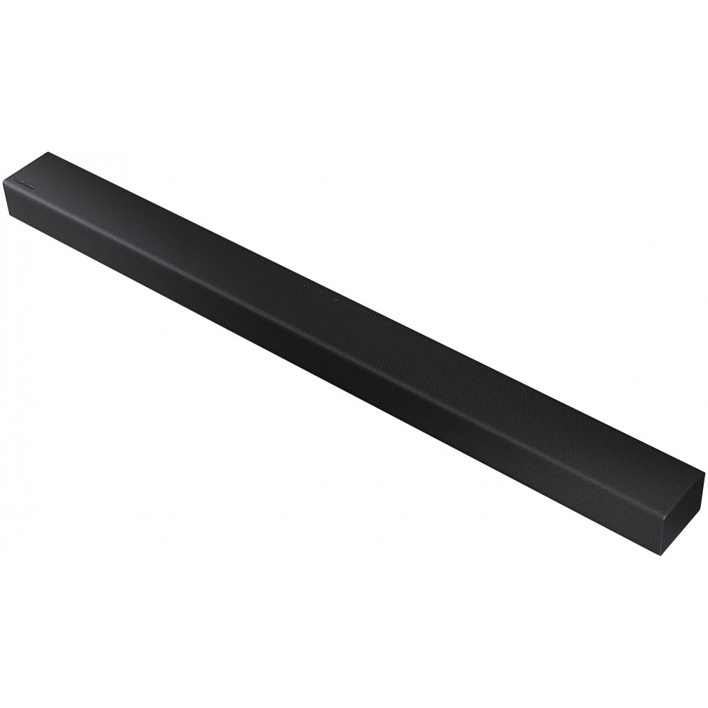 ساندبار T450 سامسونگ از توان صوتی 200 وات برخودار است. این ساندبار برای ارتقای صدا و بالابردن کیفیت آنها از فناوری های صوتی همچون Dolby Digital 2.0 ch و DTS Virtual: X بهره برده است تا کاربران از صدایی قوی، رسا و فراگیر برخوردار باشند. از مزیت های بارز این ساندبار می توان به قابلیت پخش صدای هوشمند Smart Sound اشاره نمود. این قابلیت به طور بسیار هوشمندانه عمل کرده و قادر است صدا را متناسب با محتوای در حال پخش تنظیم کند. همچنین با تنظیم صدا و بهینه سازی آن کیفیت و وضوح را افزایش داده و کاربران را از شنیدن صدایی فوق العاده و واقعی بهره مند می سازد. همچنین توسط قابلیت POWERFULL BASS صدایی واضح با باس قدرتمند دریافت نمایید. به علاوه ارتباط آن به شکل بی سیم بوده که از هر گوشه و کناره ی در محیط بدون درد سر از آن استفاده نمایید و از موسیقی های خود نهایت لذت و عرق در کیفیت آن شوید. از دیگر قابلیت های این ساندبار می توان قابلیت Wireless surround Sound Ready نام برد. با استفاده از این قابلیت امکان اتصال سه عدد بلندگوی دیگر به صورت بی سیم از طریق بلوتوث را فراهم می کند که به لطف این قابلیت می توانید بلندگوها را در زاویه های مختلف قرار دهید تا تمامی مهمان از صدای یکسان با کیفیت بالا بهره مند شوند.