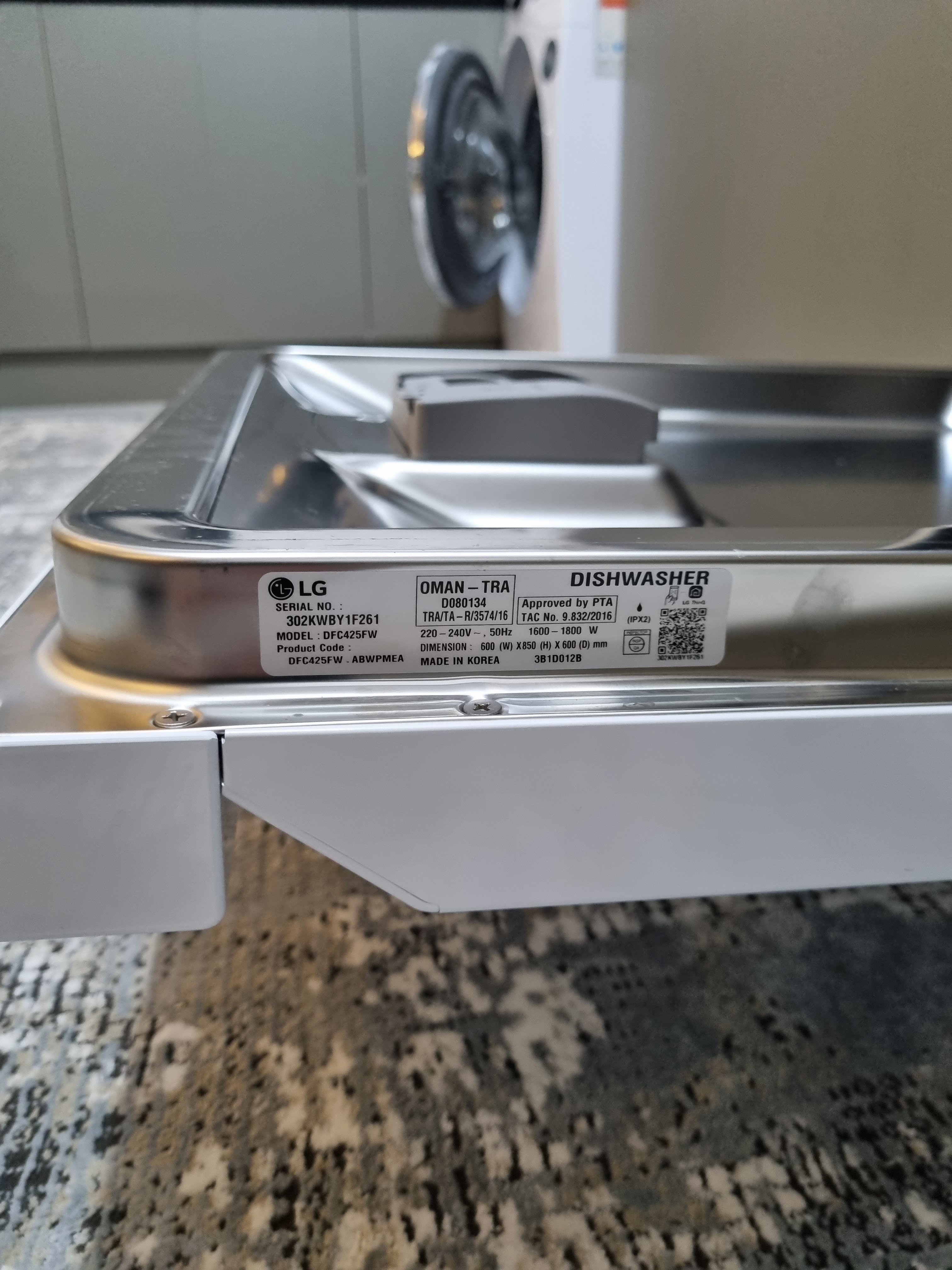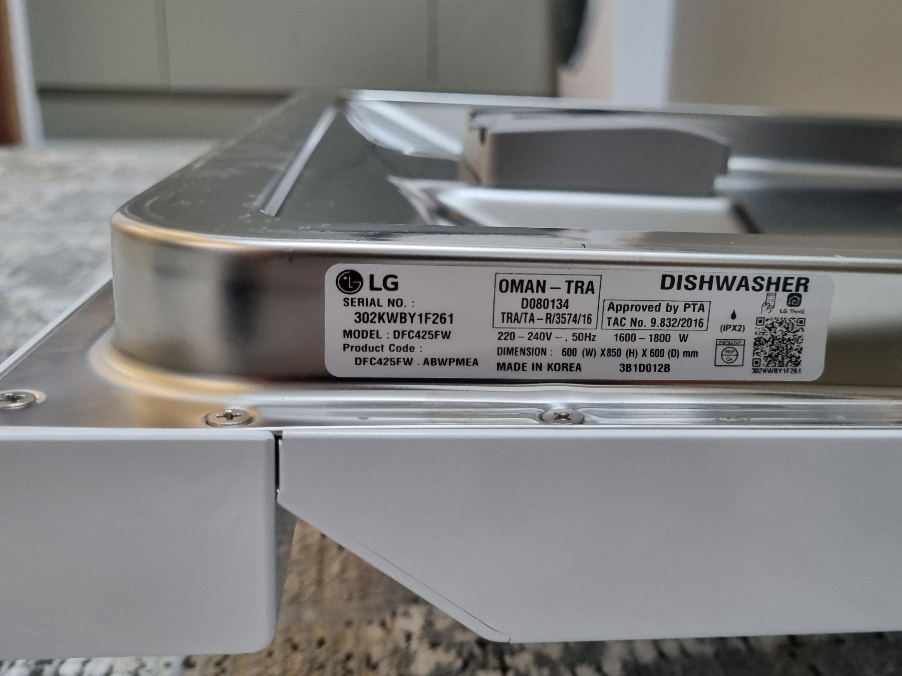 صفحه ساپورت ماشین ظرفشویی ال جی DFC425FW در سایت ال جی منطقه ما وجود دارد اما ال جی هنوز اطلاعات دقیق آن را درج نکرده است و تنها دفترچه راهنمای آن در صفحه ساپورت وجود دارد. ما لینک آن را در اختیار شما قرار دادیم تا از آن مطمئن شوید. بنابراین محصولی که خریداری کرده اید با توجه به عکسی که ارسال کرده اید، اصل و اورجینال است و مشکلی وجود ندارد. برای اطمینان بیشتر نیاز است که از قسمت های مختلف ماشین ظرفشویی که خریداری کرده اید نیز عکس ارسال کنید تا بررسی شود؛ بنابراین لطفا از پنل کنترلی این ماشین ظرفشویی طوری که کل پنل در تصویر مشخص باشد، همینطور از قسمت جلوی ماشین ظرفشویی با درب بسته طوری که کل ماشین ظرفشویی در تصویر مشخص باشد، علاوه بر آن از قسمت جلوی ماشین ظرفشویی با درب باز طوری که داخل آن کاملا مشخص باشد، قسمت پشت ماشین ظرفشویی طوری که کل ماشین ظرفشویی در تصویر مشخص باشد، عکس با کیفیت تهیه کرده و همراه کامنت خود ارسال نمایید تا بررسی شود.