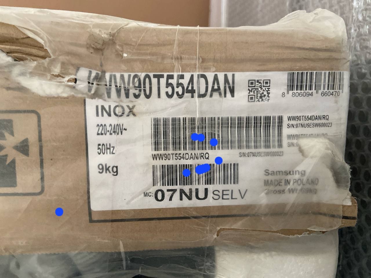- مونتاژ لهستان: WW90T554DAN/RQ مونتاژ چین: WW90T554DAN/SG