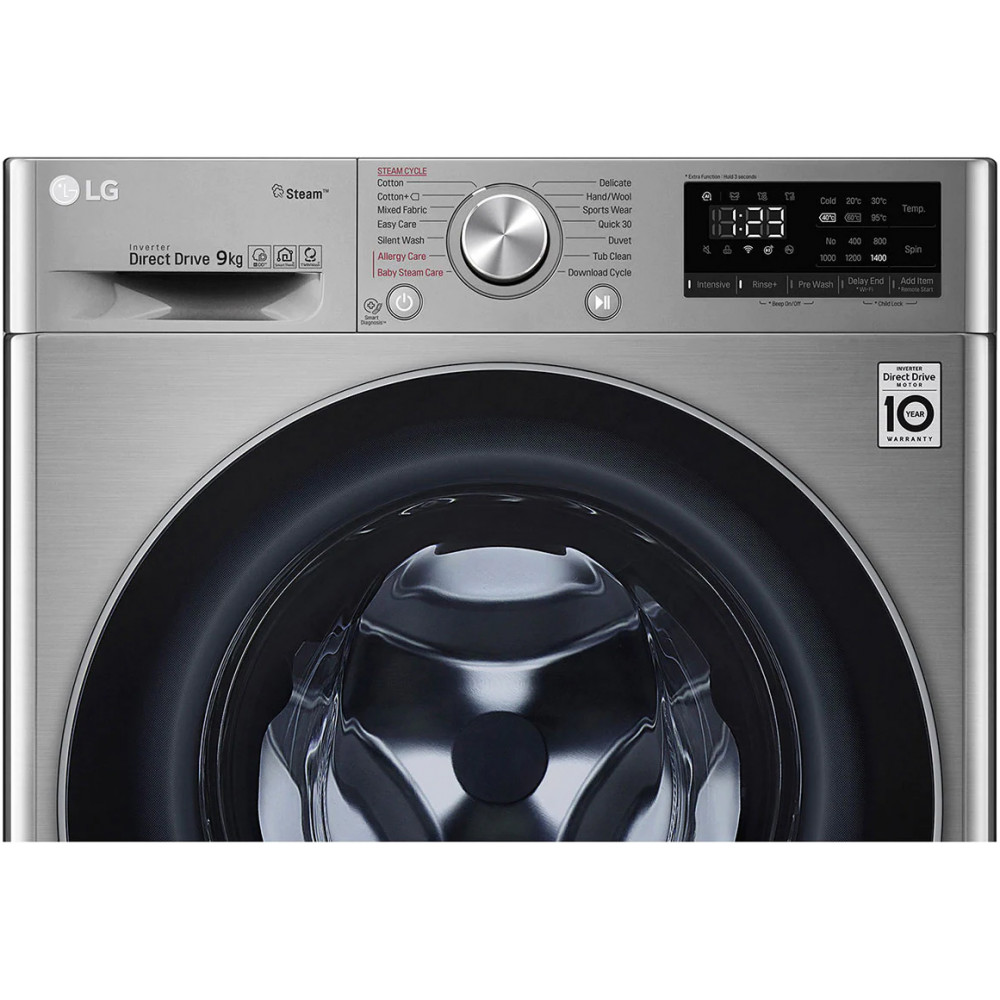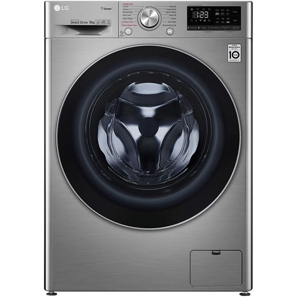 لباسشویی ال جی F4V5VYP2T با ظرفیت 9 کیلوگرم و سرعت چرخش 1400 دور در دقیقه علاوه بر عملکرد و کارایی بالا از طراحی و ظاهری شیک برخوردار می باشد. این لباسشویی با رنگ زیبای نقره ای نمایی شیک را به هر آشپزخانه ای می بخشد. ویژگی ها و قابلیت های منحصر به فردش همراه با طراحی خاصی که دارد این لباسشویی را به مدلی کامل و بی نقص تبدیل کرده است. درب این لباسشویی از جلو و با زاویه 150 درجه باز می شود. جنس درب آن شیشه می باشد که در عین حال بسیارظریف و بادوام می باشد. از طرفی دیگر جنس بدنه ی این لباسشویی ضد زنگ است که تا مدت زمانی طولانی سالم و با کیفیت باقی می ماند. همچنین در قسمت بالا و سمت راست این لباسشویی با صفحه نمایش LED مواجه می شوید که دسترسی سریع به برنامه ها و تنظیمات را بریتان امکان پذیر می سازد.