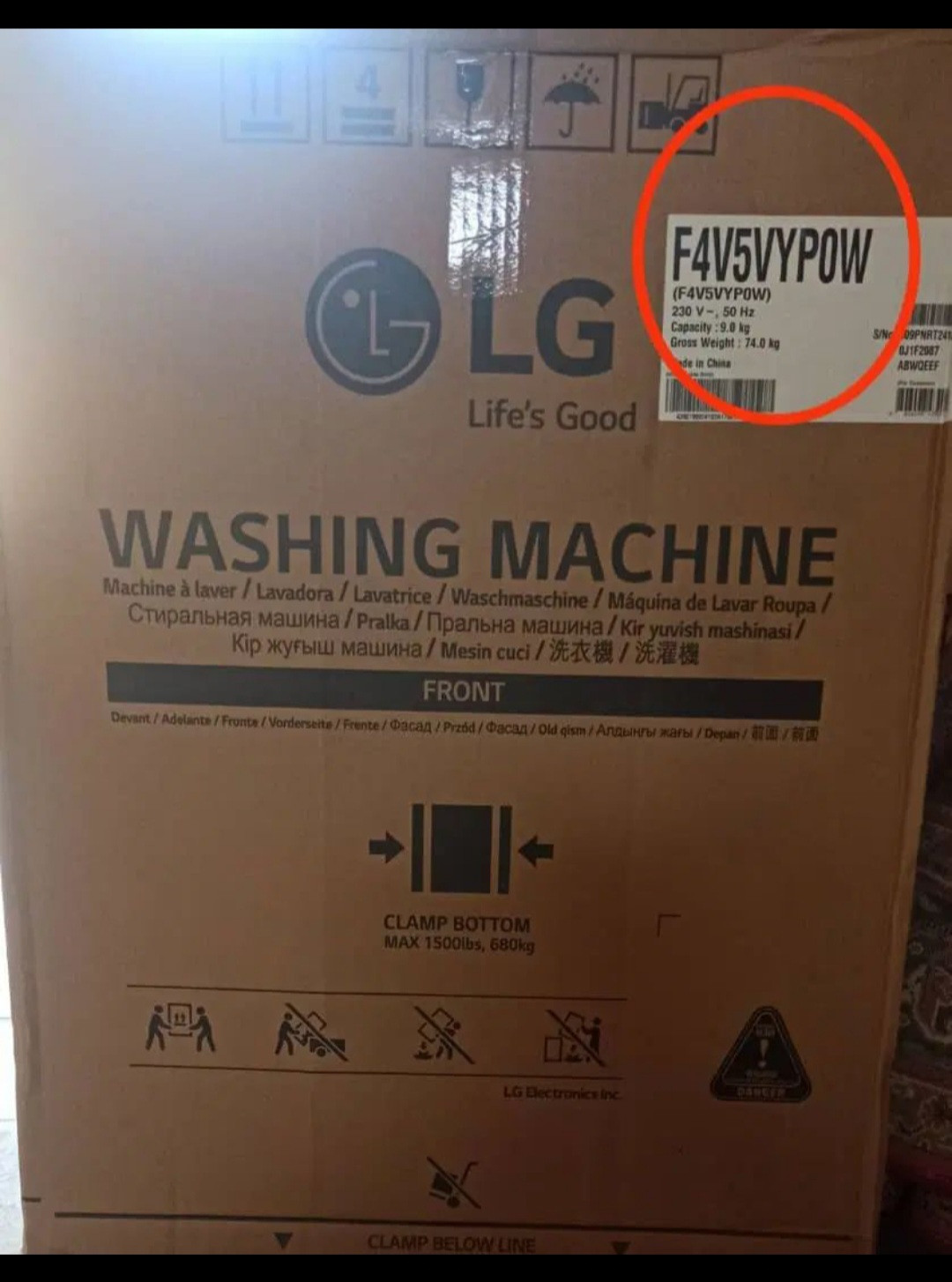 در ابتدا باید خدمت شما عرض کنیم که مدل ماشین لباسشویی شما F4V5RYP0W است. قسمتی که به رنگ قرمز نوشته شده (از سمت راست دومین کاراکتر) در واقع عدد صفر (0) است و حرف O نیست. شما ماشین لباسشویی 10.5 کیلویی ال جی مدل F4V5RYP0W رنگ سفید مونتاژ چین را خریداری کرده اید که محصول 2020 است. این ماشین لباسشویی در بازار به عنوان ماشین لباسشویی 10.5 کیلویی ال جی V5 رنگ سفید نیز به فروش می رسد. چیزی که باعث سردرگمی مشتریان و کاربران می شود این است که ماشین لباسشویی های زیادی وجود دارند که در مدل همه آنها عبارت V5 وجود دارد و متاسفانه فروشندگان به همه آنها ماشین لباسشویی V5 می گویند! متاسفانه کاربران زیادی نیز به دنبال ماشین لباسشویی V5 می گردند و به همین صورت سرچ می کنند. به همین دلیل ما یک صفحه مجزا با عنوان ماشین لباسشویی ال جی V5 ساخته ایم که تمام ماشین لباسشویی های ال جی V5 را در آن لیست کرده ایم و شما می توانید از طریق لینک مربوطه آنها را مشاهده کنید.