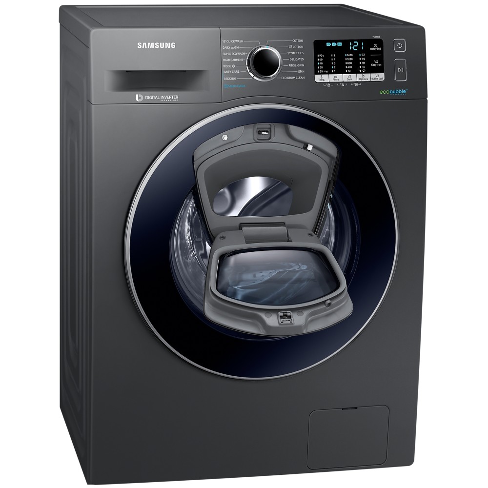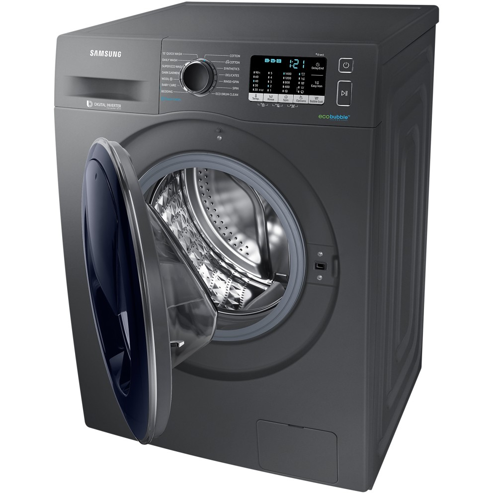 - قابلیت Steam برای شستشو با بخار دارای دیگ الماسه Diamond Drum صفحه نمایش بزرگ از نوع LED محفظه مواد شوینده با ویژگی StayClean Drawer جهت شستشوی خودکار داخل محفظه و جلوگیری از به جا ماندن مواد شوینده در آن دارای لوله هیتر سرامیکی (Ceramic Heater) برای جلوگیری از تشکیل رسوبات در اطراف لوله و افزایش طول عمر ماشین لباسشویی تکنولوژی Hygiene Steam برای شستشوی کاملا بهداشتی و از بین بردن باکتری ها و ذرات آلرژی زا تا 99.9% به کمک بخار استفاده از آب سرد بعنوان ورودی تضمین عملکرد و کارایی موتور دیجیتال اینورتر (Digital Inverter) تا 10 سال توسط سامسونگ دارای موتور (دیجیتال اینورتر) Digital inverter با طول عمر بالا و صرفه جویی در مصرف انرژی و زمان هنگام شستشو سرعت چرخش 1400 دور در دقیقه (1400 rpm) تکنولوژی Ecobubble (Eco Bubble) برای ایجاد حباب و تمیز کردن موثرتر و محافظت از لباس ها با دمای پایین آب پشتیبانی از برنامه SAMSUNG Smart Washer برای عیب یابی هوشمند ماشین لباسشویی از طریق موبایل (مخصوص موبایل های اندرویدی و iOS)