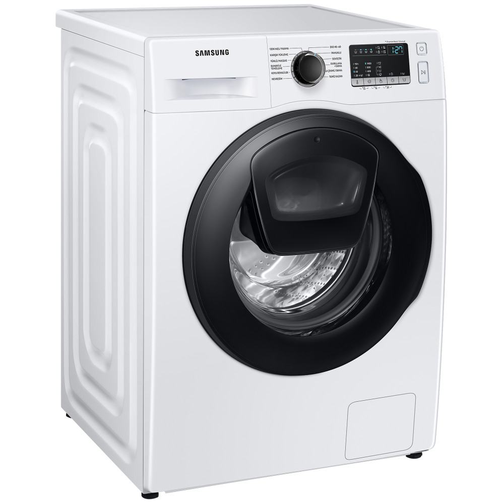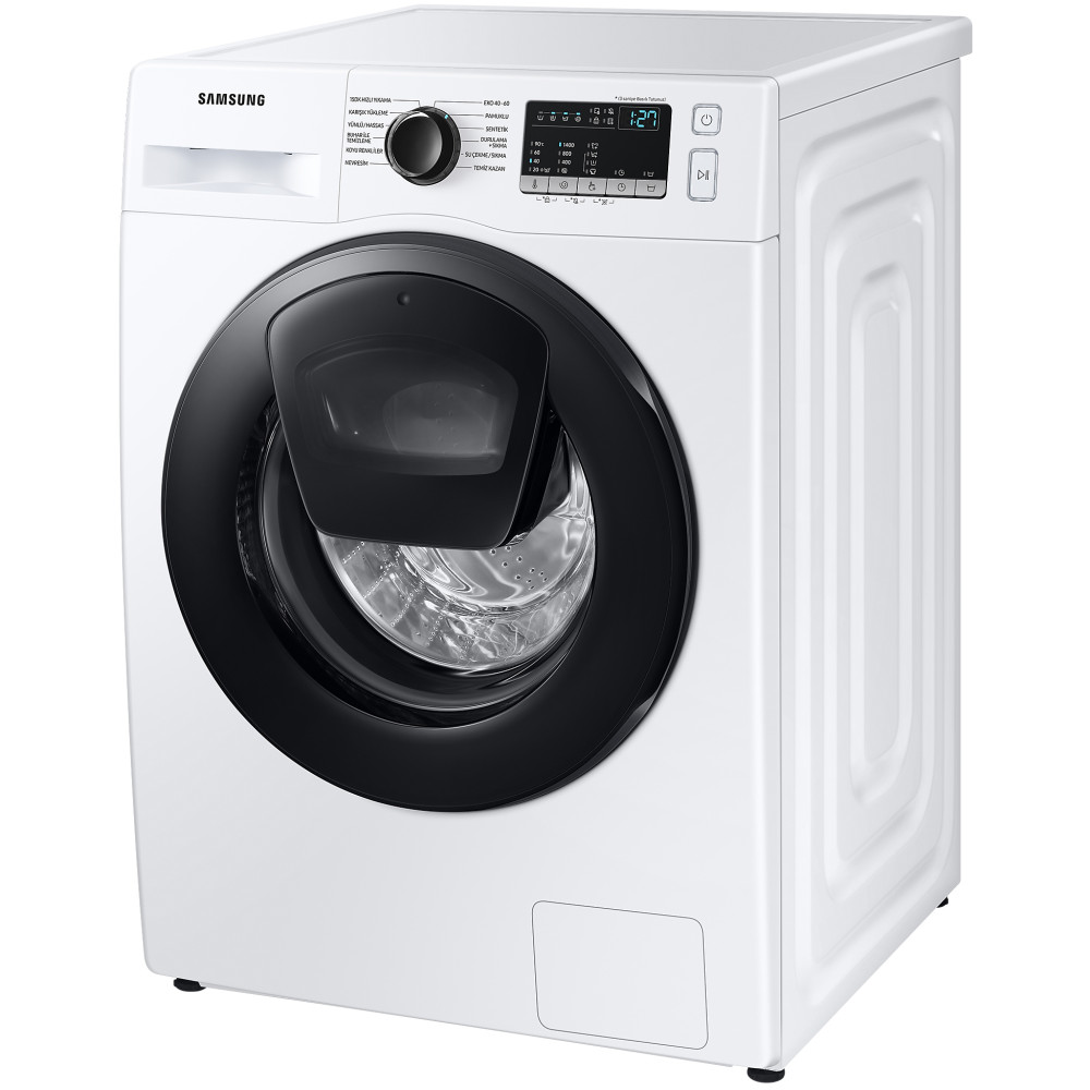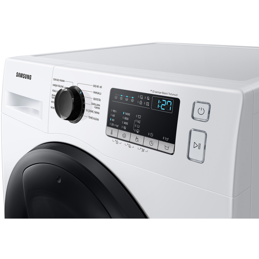 ماشین لباسشویی سامسونگ WW90T4540AE یا WW90 رنگ سفید یکی از ماشین لباسشویی های 2020 سامسونگ محسوب می شود. محصول فوق در حال حاضر با مدل کامل ماشین لباسشویی سامسونگ WW90T4540AE/AH مونتاژ لهستان (سفارش ترکیه) در بازار ایران موجود است؛ لازم است بدانید نوشته های روی ماشین لباسشویی به زبان ترکی می باشد. محصول مذکور ممکن است در بازار با مدل ماشین لباسشویی سامسونگ WW90 یا WW90T نیز به مشتری معرفی شود که کاملا اشتباه است، زیرا حرف T نشان دهنده سال تولید محصول یعنی 2020 و عدد 90 معرف ظرفیت این محصول یعنی 9 کیلویی بودن آن است. ماشین لباسشویی 9 کیلویی سامسونگ WW90T4540AE برای خانواده های با جمعیت زیاد گزینه مناسبی می باشد. محصول فوق مجهز به موتور Digital Inverter بوده که نسبت به موتور های معمولی از لرزش و صدای کمتری برخوردار می باشد. همچنین مصرف انرژی آن نیز پایین تر است و عملکرد و طول عمر بیشتری نیز دارد به طوری که سامسونگ طول عمر این موتور دیجیتال اینورتر را تا 20 سال نیز تضمین نموده است. موتور دیجیتال اینورتر این ماشین لباسشویی در واقع بدون برس یا براش است و به اصطلاح براشلس (Brushless) می باشد و به صورت مغناطیسی کار می کند. این موتور به کمک یک تسمه به دیگ شستشو متصل است و آن را می چرخاند. بنابراین می توان گفت که این ماشین لباسشویی تسمه ای است. ماشین لباسشویی سامسونگ WW90T دارای 12 برنامه شستشو به صورت پیش فرض می باشد و شما نمی توانید برنامه شستشوی جدیدی را دانلود نمایید. شما می توانید برنامه شستشوی مدنظر خود را از طریق دکمه پیچی روی محصول انتخاب و تنظیم نمایید. این محصول دارای قابلیت بخارشوی یا Steam می باشد. برنامه شستشوی Hygiene Steam با بخارشوی نمودن و شستشوی لباس ها در دمای بالا تا 99.9% ذرات آلرژی زا و باکتری ها را از الیاف پارچه حذف می نماید. اگر زمان کمی برای شستشوی لباس های خود در اختیار دارید می توانید برنامه شستشوی 15' Quick Wash را اجرا نمایید تا در کمترین زمان ممکن لباس های شما شسته شود. محصول فوق دارای برنامه مخصوص شستشوی دیگ (Drum Clean) می باشد. بعد از 40 بار شستشوی لباس ها، چراغی روی پنل ماشین لباسشویی نمایان می شود که نمایانگر فرا رسیدن زمان شستشوی دیگ است. پس از دیدن آلارم مذکور شما می توانید برنامه شستشوی Drum Clean را اجرا نمایید؛ اگر این آلارم را نادیده بگیرید تا 6 شستشو جهت اطلاع رسانی روی پنل LED باقی می ماند و پس از آن خاموش می شود. برنامه Wool/Delicates یا برنامه شستشوی دستی برای انواع لباس های ظریف و حساس مانند پشمی، حریر و یا لباس زیر به کار می رود که با کمترین درجه سختی لباس ها شستشو می نماید. علاوه بر برنامه های شستشویی که برخی از آن ها قبل تر توضیح داده شد، محصول فوق دارای قابلیت هاییست که کار با ماشین لباسشویی را برای شما آسان تر می نماید. شما می توانید قابلیت های Spin، Rinse+ و Temp را به صورت دستی نیز در برنامه های شستشوی خود تنظیم نمایید. اگر لباس های شما دارای لکه های سخت می باشد می توانید قابلیت Intensive را در کنار برنامه شستشوی خود فعال نمایید. همچنین می توانید قابلیت Soak را نیز در این شرایط فعال نمایید. اگر لباس های ضخیمی در اختیار دارید می توانید قبل از اجرای برنامه شستشوی اصلی آن ها را به کمک قابلیت Prewash در آب خیس دهید. با وجود قابلیت Delay End در این محصول می توانید شروع و پایان شستشو را با تاخیر تنظیم نمایید. قابلیت Alarm Off در این محصول برای شما این امکان را فراهم می نماید تا در صورت نیاز صدای دکمه های دستگاه را غیر فعال نمایید. ماشین لباسشویی 1400 دور سامسونگ WW90T4540AE خشک کن ندارد و نمی تواند لباس ها را به طور کامل خشک و قابل پوشیدن به شما تحویل دهد. سرعت چرخش در برنامه های مختلف شستشو متفاوت از یکدیگر است اما حداکثر سرعت چرخش آن 1400 دور بر دقیقه می باشد. ماشین لباسشویی سامسونگ WW90T4540AE هوشمند نیست، وایفای ندارد و از اینترنت اشیاء پشتیبانی نمی کند. اما دارای قابلیت عیب یابی هوشمند یا Smart Check است. طراحی ماشین لباسشویی سامسونگ WW90 مدرن و بدنه آن به رنگ سفید و درب آن مشکی می باشد. 