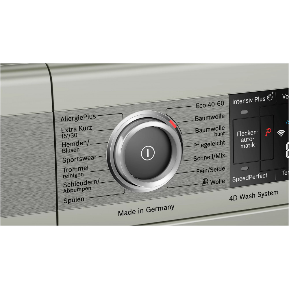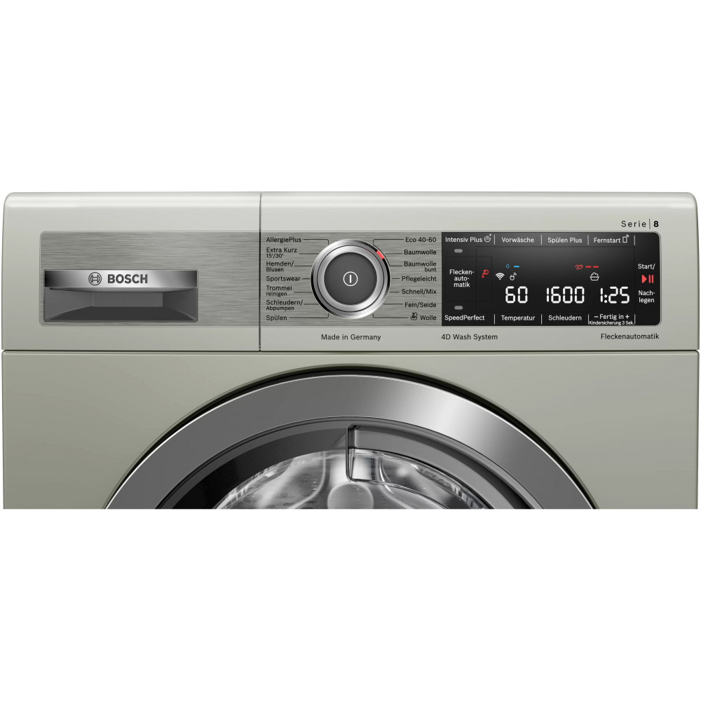 - سرعت چرخش 1600 دور در دقیقه (1600 rpm) طراحی ضد لرزش (AntiVibration Design) برای کاهش لرزش و صدای لباسشویی هنگام کار سیستم 4D Wash برای اسپری آب و شستشوی کامل تر لباس ها ویژگی EcoBar Plus برای نمایش میزان مصرف انرژی و آب نسبت برنامه شستشوی انتخاب شده سیستم Automatic Load Adjustment برای تنظیم میزان مصرف آب و انرژی نسبت به حجم لباس ها قابلیت AntiStain برای انتخاب نوع لکه و از بین بردن آن هنگام شستشوی لباس ها دارای کابل برق به طول 160 سانتی متر قابلیت Ready in برای شروع شستشو با تاخیر و تنظیم زمان پایان شستشو از 1 تا 24 ساعت دارای بوق (Buzzer) برای اعلام پایان برنامه شستشو دیگ شستشو با حجم 70 لیتر یا ظرفیت XXL استفاده از آب سرد بعنوان ورودی تکنولوژی ActiveWater Plus برای مدیریت و صرفه جویی در مصرف آب متناسب با حجم لباس ها قابلیت Spin برای تنظیم سرعت چرخش دیگ به صورت دستی سیستم تشخیص کف (Foam Detection System) برای از بین بردن کف باقیمانده قابلیت Extra Rinse برای اضافه کردن مرحله آبکشی به برنامه شستشو پشتیبانی از اینترنت اشیا (IoT) برای مدیریت و کنترل ماشین لباسشویی از راه دور دارای دیگ شستشو VarioDrum با طراحی برجسته برای جلوگیری از آسیب رسیدن به لباس ها برنامه AllergyPlus برای شستشوی کاملا بهداشتی و از بین بردن باکتری ها و آلرژی ها تا 99.99% قابلیت Intensive Plus برای شستشوی لباس های معمولی و بسیار کثیف دارای محفظه مواد شوینده تقسیم بندی شده مناسب استفاده از مواد شوینده مایع (Divider for Liquid Detergent) صفحه نمایش بزرگ از نوع LED سیستم شستشوی هوشمند (Intelligent Washing System) قابلیت Reload برای اضافه کردن لباس حتی بعد از شروع شستشو قابلیت Rinse برای تنظیم تعداد آبکشی به صورت دستی قابلیت Prewash برای خیس کردن لباس ها پیش از شروع برنامه شستشو سیستم Unbalanced Load Detection برای تشخیص توزیع نامناسب لباس ها در دیگ و توقف شستشو در صورت نیاز برنامه Drum Clean مخصوص شستشو و ضد عفونی کردن دیگ لباسشویی و از بین بردن باکتری ها تا 99.9% دارای موتور EcoSilence Drive با صدای کم، راندمان و طول عمر بالا و صرفه جویی در مصرف انرژی قابلیت SpeedPerfect برای کاهش زمان برخی از برنامه های شستشو حداکثر تا 65% استفاده از مواد عایق صدا (Sound insulation) در ساخت ماشین لباسشویی نمایش حداکثر وزن البسه قابل شستشو برای برنامه شستشوی انتخاب شده قابلیت Remote Start برای شروع برنامه شستشو ماشین لباسشویی از راه دور به کمک موبایل با برنامه Home Connect پشتیبانی از دستیار صوتی الکسا (Alexa) (ممکن است برای تمام مناطق جغرافیایی در دسترس نباشد) سیستم AquaStop برای جلوگیری از نشت آب با گارانتی توسط بوش تضمین عملکرد و کارایی موتور EcoSilence Drive تا 10 سال توسط بوش قابلیت Temperature برای تنظیم دمای آب برنامه شستشو به صورت دستی محفظه مواد شوینده با امکان تمیز کردن آسان (Easy Cleaning Detergent Drawer) پشتیبانی از برنامه Home Connect برای کنترل و مدیریت ماشین لباسشویی از طریق موبایل (مخصوص موبایل های اندرویدی و iOS) قابلیت Child Lock برای قفل کردن پنل کنترلی و برنامه های ماشین لباسشویی دارای سنسور تشخیص میزان لباس ها (LoadSensor) سیستم لکه بری (AntiStain System) برای شستشو و از بین بردن 4 نوع لکه مختلف با توجه به انتخاب کاربر دارای چراغ روشنایی داخل دیگ Drum Interior Light) Interior Drum Light)