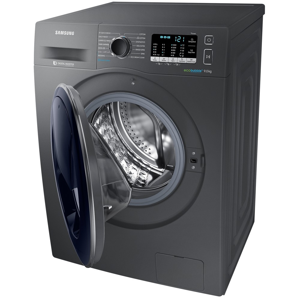 - سرعت چرخش 1400 دور در دقیقه (1400 rpm) تکنولوژی Ecobubble (Eco Bubble) برای ایجاد حباب و تمیز کردن موثرتر و محافظت از لباس ها با دمای پایین آب پشتیبانی از برنامه SAMSUNG Smart Washer برای عیب یابی هوشمند ماشین لباسشویی از طریق موبایل (مخصوص موبایل های اندرویدی و iOS) قابلیت Steam برای شستشو با بخار دارای دیگ الماسه Diamond Drum صفحه نمایش بزرگ از نوع LED محفظه مواد شوینده با ویژگی StayClean Drawer جهت شستشوی خودکار داخل محفظه و جلوگیری از به جا ماندن مواد شوینده در آن دارای لوله هیتر سرامیکی (Ceramic Heater) برای جلوگیری از تشکیل رسوبات در اطراف لوله و افزایش طول عمر ماشین لباسشویی تکنولوژی Hygiene Steam برای شستشوی کاملا بهداشتی و از بین بردن باکتری ها و ذرات آلرژی زا تا 99.9% به کمک بخار استفاده از آب سرد بعنوان ورودی تضمین عملکرد و کارایی موتور دیجیتال اینورتر (Digital Inverter) تا 10 سال توسط سامسونگ دارای موتور (دیجیتال اینورتر) Digital inverter با طول عمر بالا و صرفه جویی در مصرف انرژی و زمان هنگام شستشو