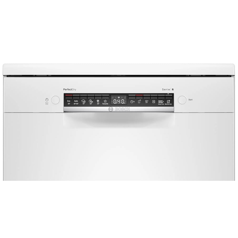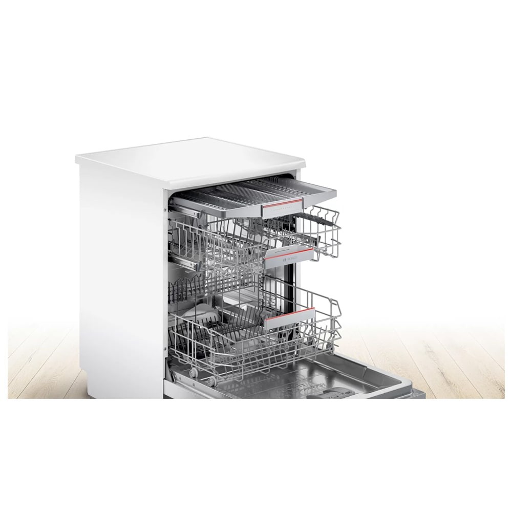 - دارای موتور EcoSilence Drive با صدای کم، راندمان و طول عمر بالا و صرفه جویی در مصرف انرژی شستشوی خودکار (Auto Cycle) در 193 دقیقه قابلیت ExtraDry برای خشک کردن بهتر ظروف شستشوی سریع (Express Cycle) در 38 دقیقه (Load Sensor) سنسور تشخیص میزان ظروف قابلیت Half Load برای شستشوی ظروف با نصف ظرفیت دارای طبقه یا سبد Vario Drawer یا Cutlery Drawer برای شستوشوی ظروف کوچک آشپزخانه شستشوی اقتصادی (Eco) در 235 دقیقه دارای چرخه Intensive برای شستشوی ظروف بسیار کثیف قابلیت شروع شستشو با تاخیر از 1 تا 24 ساعت مجهز به قابلیت Delay Start برای شروع شستشو با تاخیر قابلیت تنظیم ارتفاع طبقات یا سبد ها در 3 سطح مختلف فناوری Speed Perfect Plus با توانایی شستشوی سریع ظروف برنامه شستشوی Machine Care برای شستشو و تمیز کردن خودکار داخل ماشین ظرفشویی سیستم RackMatic 3-stage برای تنظیم ارتفاع طبقه یا سبد در 3 سطح سیستم AquaStop برای جلوگیری از نشت آب با گارانتی مادام العمر توسط بوش دارای Wi-Fi برای اتصال به شبکه و اینترنت تکنولوژی Zeolith Drying برای خشک کردن بهتر و سریع تر ظروف و صرفه جویی در انرژی طراحی کاملا مینیمال برای هماهنگی هر چه بهتر با آشپزخانه شما تکنولوژی Glass Protection برای محافظت از ظروف شیشه ای و ظریف هنگام شستشو دارای طبقات یا سبد های قابل تنظیم با سیستم Flex برنامه شستشوی Silence برای کارکرد با صدای کم (در حدود 40 دسی بل) قابلیت Remote Start برای شروع برنامه شستشو ماشین ظرفشویی از راه دور به کمک موبایل با برنامه Home Connect سیستم Aqua-Stop برای جلوگیری از نشت آب Dosing assistant مخصوص انحلال کامل مواد شوینده و نفوذ پذیری بیشتر به داخل لکه ها و ذرات