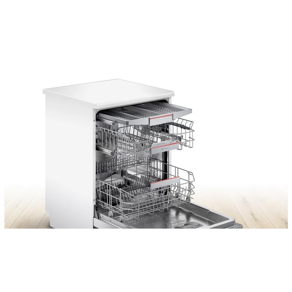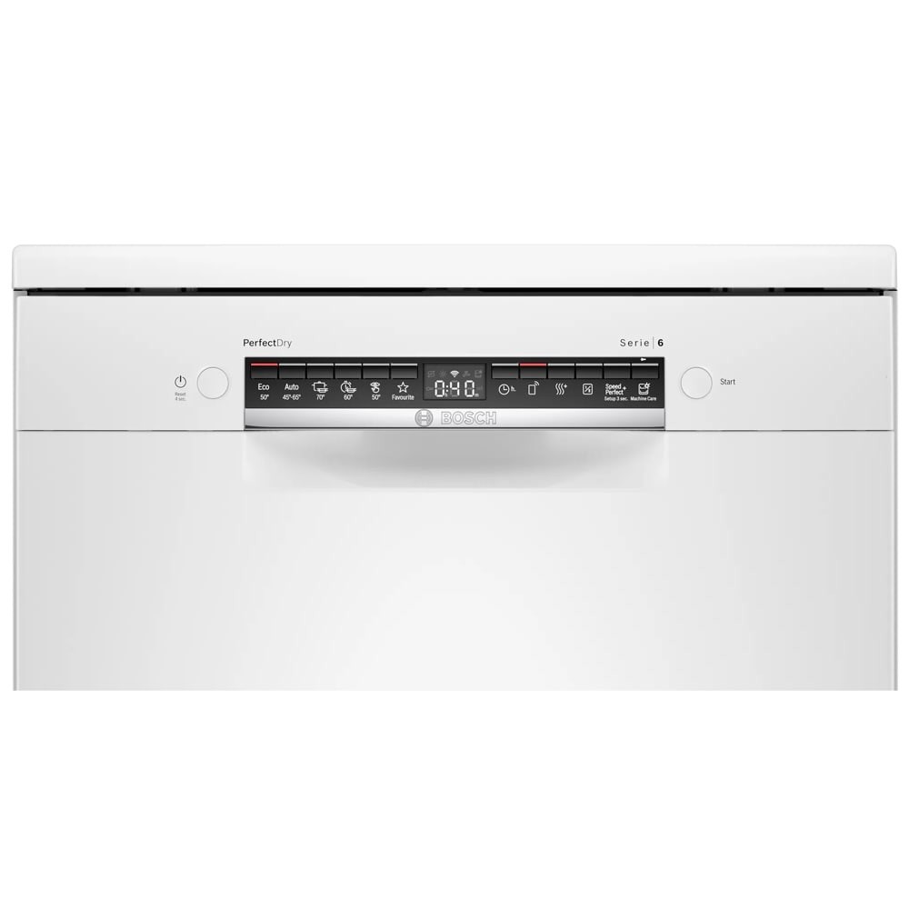 - قابلیت شروع شستشو با تاخیر از 1 تا 24 ساعت (Load Sensor) سنسور تشخیص میزان ظروف قابلیت ExtraDry برای خشک کردن بهتر ظروف برنامه شستشوی Silence برای کارکرد با صدای کم (در حدود 40 دسی بل) دارای نشانگر پر کردن مجدد جلادهنده (Rinse Aid Refill Icon) قابلیت تنظیم ارتفاع طبقات یا سبد ها در 3 سطح مختلف مجهز به برنامه PreWash (پیش شستشو) دارای Wi-Fi برای اتصال به شبکه و اینترنت تکنولوژی Zeolith Drying برای خشک کردن بهتر و سریع تر ظروف و صرفه جویی در انرژی مجهز به قابلیت Delay Start برای شروع شستشو با تاخیر پشتیبانی از اینترنت اشیا (IoT) برای مدیریت و کنترل ماشین ظرفشویی از راه دور دارای قیف (Funnel) برای پر کردن مخزن نمک ماشین ظرفشویی قابلیت Remote Start برای شروع برنامه شستشو ماشین ظرفشویی از راه دور به کمک موبایل با برنامه Home Connect طراحی کاملا مینیمال برای هماهنگی هر چه بهتر با آشپزخانه شما فناوری Speed Perfect Plus با توانایی شستشوی سریع ظروف سیستم Aqua-Stop برای جلوگیری از نشت آب Dosing assistant مخصوص انحلال کامل مواد شوینده و نفوذ پذیری بیشتر به داخل لکه ها و ذرات شستشوی اقتصادی (Eco) در 235 دقیقه دارای نشانگر پر کردن مجدد نمک (Salt Refill Icon) تکنولوژی Glass Protection برای محافظت از ظروف شیشه ای و ظریف هنگام شستشو سیستم Water Softener برای تنظیم میزان سختی آب دارای موتور EcoSilence Drive با صدای کم، راندمان و طول عمر بالا و صرفه جویی در مصرف انرژی شستشوی سریع (Express Cycle) در 38 دقیقه تمیزکاری کامل برای ظروف بسیار کثیف در طبقه یا سبد بالایی (Extra Clean Zone) برنامه شستشوی Machine Care برای شستشو و تمیز کردن خودکار داخل ماشین ظرفشویی شستشوی خودکار (Auto Cycle) در 193 دقیقه جنس بدنه فولاد ضد زنگ (Stainless Steel) دارای چرخه Intensive برای شستشوی ظروف بسیار کثیف قابلیت Half Load برای شستشوی ظروف با نصف ظرفیت دارای طبقه یا سبد Vario Drawer یا Cutlery Drawer برای شستوشوی ظروف کوچک آشپزخانه