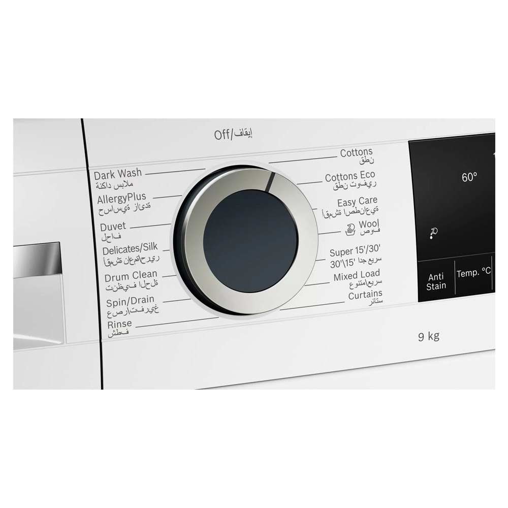ماشین لباسشویی بوش مدل BOSCH WGA142X0GC با تنوع بالای برنامههای شستوشو، برای انواع لباسها و پارچهها طراحی شده است تا بهترین نتیجه را در کمترین مصرف انرژی ارائه دهد. در ادامه هر کدام از برنامهها را توضیح دادهایم. برنامه Wool مناسب لباسهای پشمی و حساس که نیاز به مراقبت ویژه دارند. این برنامه با دمای پایین و حرکات ملایم دیگ، از آسیب دیدن بافت لباس جلوگیری میکند. Dark Wash مخصوص لباسهای تیره و مشکی است تا از بور شدن و از بین رفتن رنگ پارچه جلوگیری شود. ضد آلرژی یا AllergyPlus برنامهای ویژه برای افراد با پوست حساس مناسب میباشد. با شستوشوی عمیق، دمای بالاتر و آبکشی اضافی، موادشوینده و ذرات آلرژیزا را به طور کامل از بین میبرد. با برنامه Spin/Darin برای زمانی که فقط میخواهید آب باقیمانده در دیگ تخلیه شده و لباسها خشکتر شوند بدون انجام شستوشویی این برنامه بسیار کاربردی میباشد. Curtains برنامهای ویژه برای شستوشوی پردهها و پارچههای ظریف خانگی با چرخش ملایم و آبکشی اضافه، مانع چروک شدن یا کشیدگی بافت پارچه میشود. چرخه Easy Care برای پارچههای مصنوعی مانند پلیاستر یا الیاف ترکیبی طراحی شده است. این برنامه از آسیب دیدن و تغییر شکل پارچه جلوگیری میکند. برنامه 'Super 15'/30 هنگامی که زمان کمی دارید و میخواهید لباسها در کمترین زمان ممکن با کیفیت شستوشوی بالا شسته شوند برنامه super 15/30 به کمک شما میآید. این برنامه در 15 یا 30 دقیقه شستوشویی کامل و مؤثر انجام میدهد و مناسب است برای لباسهای روزمره با میزان آلودگی کم. همچنین برنامه Duvet در ماشین لباسشویی 1200 دور بوش 142X0GC مناسب شستوشوی اقلام بزرگ مانند پتو، ملحفه و روتختیهای تخت و تشک با گردش ویژه دیگ، حجم بالای پارچه به طور یکنواخت شسته و آبکشی میشود. برنامه Cottons برنامهای قدرتمند برای لباسهای نخی، حولهها و ملحفهها که نیاز به شستوشوی عمیق و دمای بالا دارند بسیار مفید و کاربردی است. همچنین برنامه Cottons Eco مشابه برنامه Cottons است و همان شستوشو را ارائه میدهد اما با تفاوت مصرف آب و دمای بهینهتر و اقتصادی شستوشو انجام میشود. برنامه Rinse یا آبکشی برای مواقعی که نیاز دارید لباسها فقط آبکشی شوند بدون افزودن موادشوینده یا چرخش سنگین درام عمل آبکشی را به خوبی انجام میدهد. برنامه Delicates/Silk برنامهای ویژه برای لباسهای بسیار حساس مانند ابریشم، ساتن یا پارچههای نازک. یا حرکات نرم دیگ و دمای پایین، از آسیب دیدن، کشیدگی یا تغییر شکل پارچههای ظریف جلوگیری میکند. تمیز کنندهی دیگ یا Drum Clean برنامهای مخصوص تمیز کردن دیگ داخل ماشین لباسشویی بدون اینکه داخل دیگ لباسی قرار گرفته باشد. با دمای بالا و چرخش شدید، باقیمانده موادشوینده، رسوبات و باکتریها را از بین میبرد تا همیشه بوی مطبوع و عملکرد بهینه حفظ شود. و در آخر برنامه Mixed Load زمانی که میخواهید لباسهای مختلف با جنسهای متفاوت را همزمان بشویید این برنامه بهترین گزینه است. با تنظیم خودکار دما و حرکات دیگ همه لباسها به شکل یکنواخت و ایمن شسته میشوند.
