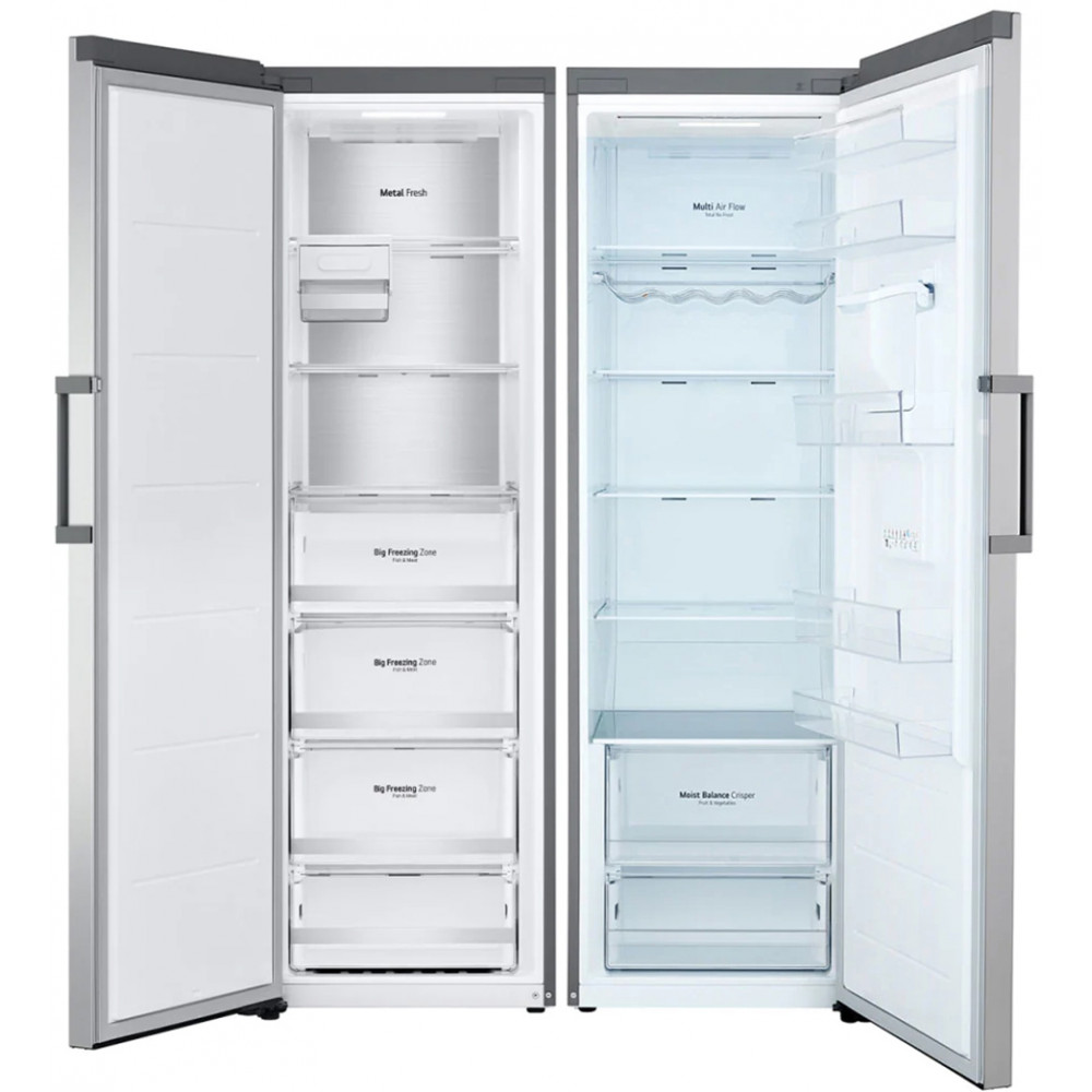 - طبقات یخچال و فریزر از جنس شیشه حرارت دیده عایق گاز سیکلوپنتان (Cyclopentane) دستگیره اهرمی (Easy Open Handle) کشوی Big Freezing Zone برای نگهداری از مواد غذایی گوشتی و ماندگاری طولانی مدت آنها بدون یخ زدن پشتیبانی از برنامه LG ThinQ برای کنترل و مدیریت یخچال فریزر از طریق موبایل (مخصوص موبایل های اندرویدی و iOS) سیستم تهویه هوای Multi Air Flow برای توزیع هوای سرد یکنواخت در کل یخچال و فریزر از طریق دریچه های هوای متعدد کشوی Moist Balance Crisper با ویژگی حفظ رطوبت و جلوگیری از خشک شدن مواد غذایی (مخصوص میوه و سبزیجات) سیستم عیب یاب هوشمند (Smart Diagnosis) برای عیب یابی راحت تر قابلیت Eco Friendly برای کاهش مصرف انرژی یخچال و فریزر مخصوص مسافرت های طولانی قابلیت Door Reversible برای تنظیم و تغییر جهت باز شدن درب ها به سمت چپ یا راست دارای محفظه مخصوص یخ تکنولوژی LINEAR Cooling (LinearCooling) جهت حفظ و کنترل دقیق دما در داخل یخچال و فریزر با نوسان 0.5 درجه سانتیگراد قابلیت Express Freeze برای انجماد سریع در فریزر و یخ ساز استفاده از حداکثر فضا برای ذخیره مواد غذایی بیشتر (Large Capacity) طراحی Zero Clearance برای جلوگیری از برخورد درب یخچال به دیوار و وسایل کناری یخچال و دسترسی راحت به کشوها حتی با باز بودن 90 درجه درب دارای کشوی مخصوص نگهداری میوه و سبزیجات تضمین عملکرد و کارایی موتور Smart Inverter Compressor تا 10 سال توسط ال جی استفاده از گاز R600a برای ایجاد سرمایش و سازگاری با محیط زیست تکنولوژی +Door Cooling برای سرمایش سریع تر مواد غذایی موجود در درب یخچال تکنولوژی Bio Shield (Gasket) و لاستیک ضد باکتری دور درب جهت افزایش عمر یخچال مناسب برای مناطق جغرافیایی با آب و هوای گرمسیری (Tropical) یا T سیستم بدون برفک (No Frost)