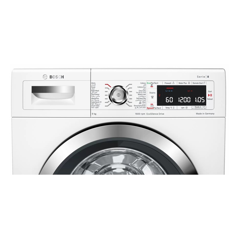 - دارای موتور EcoSilence Drive با صدای کم، راندمان و طول عمر بالا و صرفه جویی در مصرف انرژی دارای سنسور تشخیص میزان کثیفی آب و لباس ها (AquaSensor) قابلیت EcoPerfect برای کاهش مصرف انرژی در برخی از برنامه های شستشو حداکثر تا 50% دارای دیگ شستشو از جنس استیل ضد زنگ قابلیت Delay End برای شروع شستشو با تاخیر و تنظیم زمان پایان شستشو برنامه Drum Clean مخصوص شستشوی دیگ ماشین لباسشویی دارای کابل برق به طول 160 سانتی متر قابلیت Remote Start برای شروع برنامه شستشو ماشین لباسشویی از راه دور به کمک موبایل با برنامه Home Connect قابلیت Reload برای اضافه کردن لباس حتی بعد از شروع شستشو قابلیت Temp برای تنظیم دمای آب برنامه شستشو به صورت دستی قابلیت Ready in برای شروع شستشو با تاخیر و تنظیم زمان پایان شستشو از 1 تا 24 ساعت سرعت چرخش 1600 دور در دقیقه (1600 rpm) قابلیت SpeedPerfect برای کاهش زمان برخی از برنامه های شستشو حداکثر تا 65% قابلیت Prewash برای خیس کردن لباس ها پیش از شروع برنامه شستشو برنامه Drum Clean مخصوص شستشو و ضد عفونی کردن دیگ لباسشویی و از بین بردن باکتری ها تا 99.9% شستشوی سریع Quick Wash دارای دیگ شستشو VarioDrum با طراحی برجسته برای جلوگیری از آسیب رسیدن به لباس ها قابلیت Rinse برای تنظیم تعداد آبکشی به صورت دستی قابلیت Water Plus برای اضافه کردن آب و دور چرخش بیشتر به برنامه شستشو پشتیبانی از برنامه Home Connect برای کنترل و مدیریت ماشین لباسشویی از طریق موبایل (مخصوص موبایل های اندرویدی و iOS) قابلیت Spin برای تنظیم سرعت چرخش دیگ به صورت دستی دیگ شستشو با حجم 60 لیتر یا ظرفیت XXL قابلیت اضافه کردن مجدد لباس ها طراحی ضد لرزش (AntiVibration Design) برای کاهش لرزش و صدای لباسشویی هنگام کار برنامه AllergyPlus برای شستشوی کاملا بهداشتی و از بین بردن باکتری ها و آلرژی ها تا 99.99% برنامه Night Wash برای کاهش صدای ماشین لباسشویی هنگام کار و قطع صدای بوق پایان شستشو مناسب استفاده در شب قابلیت Wi-Fi برای اتصال به شبکه و اینترنت سیستم AquaStop برای جلوگیری از نشت آب با گارانتی توسط بوش قابلیت Child Lock برای قفل کردن پنل کنترلی و برنامه های ماشین لباسشویی قابلیت Stains برای انتخاب نوع لکه و از بین بردن آن هنگام شستشوی لباس ها
