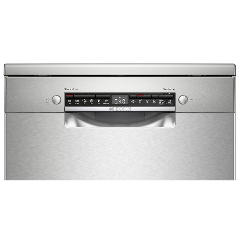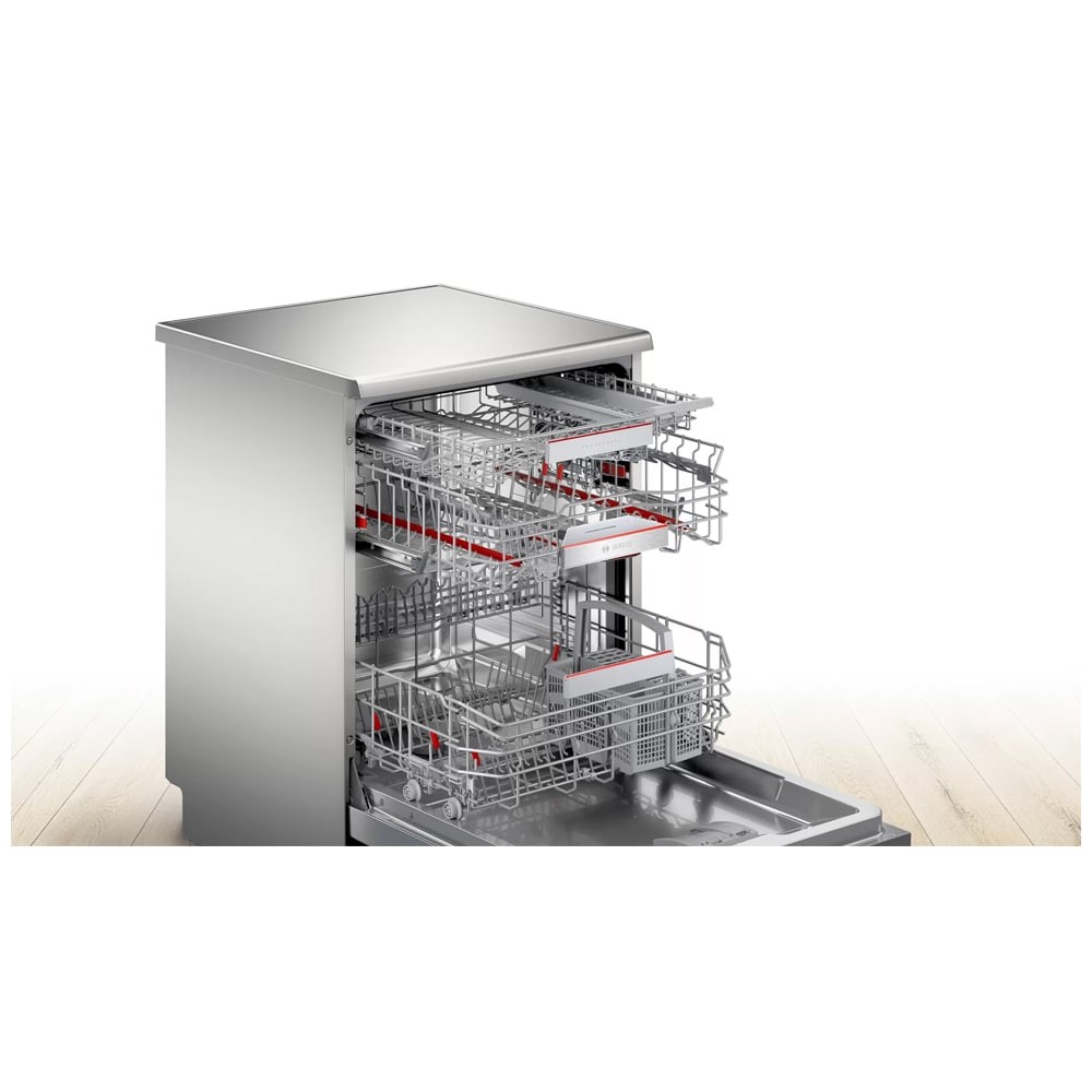 - Dosing assistant مخصوص انحلال کامل مواد شوینده و نفوذ پذیری بیشتر به داخل لکه ها و ذرات قابلیت برداشتن قسمت بالایی ماشین ظرفشویی (Removable Top (Removable Top Cover)) قابلیت Remote Start برای شروع برنامه شستشو ماشین ظرفشویی از راه دور به کمک موبایل با برنامه Home Connect تکنولوژی ActiveWater برای شستشوی بهتر و صرفه جویی در مصرف آب و انرژی برنامه شستشوی Silence برای کارکرد با صدای کم (در حدود 40 دسی بل) دارای نشانگر پر کردن مجدد نمک (Salt Refill Icon) قابلیت شروع شستشو با تاخیر از 1 تا 24 ساعت قابلیت Half Load برای شستشوی ظروف با نصف ظرفیت تمیزکاری کامل برای ظروف بسیار کثیف در طبقه یا سبد بالایی (Extra Clean Zone) سیستم RackMatic 2-stage برای تنظیم ارتفاع طبقه یا سبد در 2 سطح پشتیبانی از اینترنت اشیا (IoT) برای مدیریت و کنترل ماشین ظرفشویی از راه دور دارای قیف (Funnel) برای پر کردن مخزن نمک ماشین ظرفشویی شستشوی اقتصادی (Eco) در 235 دقیقه برنامه شستشوی Machine Care برای شستشو و تمیز کردن خودکار داخل ماشین ظرفشویی دارای طبقه یا سبد Vario Drawer یا Cutlery Drawer برای شستوشوی ظروف کوچک آشپزخانه طراحی کاملا مینیمال برای هماهنگی هر چه بهتر با آشپزخانه شما تکنولوژی Glass Protection برای محافظت از ظروف شیشه ای و ظریف هنگام شستشو دارای طبقه یا سبد بالا (Extra Space 3rd Basket) مخصوص قرارگیری قاشق، چنگال و ظروف کوچک دارای چرخه Intensive برای شستشوی ظروف بسیار کثیف مجهز به برنامه PreWash (پیش شستشو) دارای مبدل حرارتی (Heat Exchanger) برای خشک کردن ظروف قابلیت ExtraDry برای خشک کردن بهتر ظروف دارای Wi-Fi برای اتصال به شبکه و اینترنت دارای موتور EcoSilence Drive با صدای کم، راندمان و طول عمر بالا و صرفه جویی در مصرف انرژی سیستم AquaStop برای جلوگیری از نشت آب با گارانتی مادام العمر توسط بوش دارای سنسور تشخیص میزان کثیفی آب و ظروف (AquaSensor) دارای نشانگر پر کردن مجدد جلادهنده (Rinse Aid Refill Icon) (Load Sensor) سنسور تشخیص میزان ظروف دارای طبقات یا سبد های قابل تنظیم با سیستم Max Flex Pro جنس بدنه فولاد ضد زنگ (Stainless Steel) محفظه داخلی ماشین ظرفشویی از جنس فولاد ضد زنگ (Stainless Steel) سیستم Aqua-Stop برای جلوگیری از نشت آب