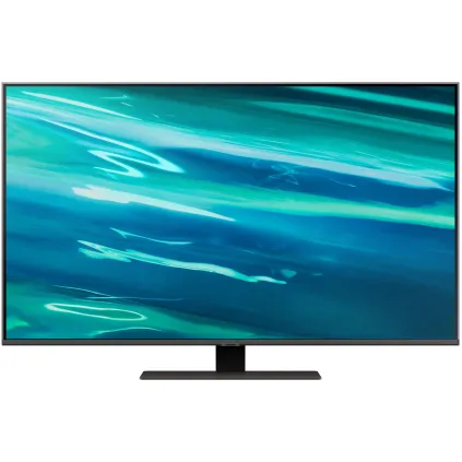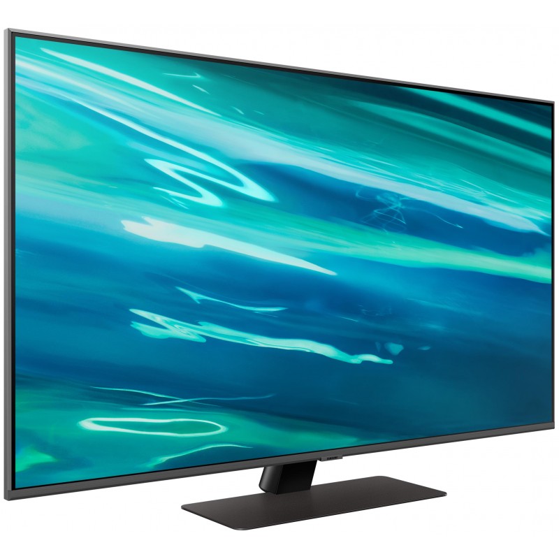 تلویزیون سامسونگ Q80A سایز 50 اینچ یکی از تلویزیون های 2021 سامسونگ محسوب می شود. این تلویزیون جزو تلویزیون های سری 8 و میان رده سامسونگ است. این تلویزیون مدل جایگزین و جدید تر تلویزیون سامسونگ Q80T است که در سال گذشته معرفی شده بود. تلویزیون 50 اینچ سامسونگ Q80A با سایز های بزرگ تر خود متفاوت است و یک استثنا به حساب می آید. این تلویزیون برای تماشای فیلم و استفاده خانگی مناسب است اما برای بازی کردن با کنسول های نسل نهم گزینه عالی نیست. تلویزیون Q80A بهترین تلویزیون 50 اینچ QLED سامسونگ در سال 2021 است. تلویزیون Q80A دارای صفحه نمایش QLED و کیفیت تصویر 4K HDR است. تلویزیون QLED سامسونگ 50Q80A دارای نور پس زمینه Direct Full Array LED است اما بر خلاف سایز 55، 65 و 75 اینچ از پنل VA برخوردار است. به لطف پنل VA، این تلویزیون توانایی تولید رنگ های تیره و عمیق را دارد. متاسفانه سامسونگ در سایز 50 اینچ این تلویزیون از تکنولوژی Wide Viewing Angle استفاده نکرده است و نباید انتظار زاویه دید گسترده ای از آن داشته باشید. این تلویزیون نسبت به سایز های بزرگ تر خود از حداکثر روشنایی صفحه نمایش کمتری برخوردار است. این تلویزیون دارای تکنولوژی Local Dimming است و کنتراست تصویر دقیق و بسیار خوبی ایجاد می کند. سامسونگ به کمک تکنولوژی Local Dimming از نوع Direct Full Array 8x و همچنین تکنولوژی Supreme UHD Dimming نور پس زمینه صفحه نمایش این تلویزیون را کنترل کرده و کنتراست تصویر لازم را ارائه می دهد. صفحه نمایش این تلویزیون از رفرش ریت 60 هرتز برخوردار است و به کمک تکنولوژی Auto Motion Plus صحنه های سریع را واضح و روان نمایش می دهد. صفحه نمایش این محصول از عمق رنگ 10 بیت (8 بیت + FRC) برخوردار است و به کمک تکنولوژی Quantum Dot توانایی تولید طیف گسترده ای از رنگ ها را دارد. به گفته سامسونگ تکنولوژی کوانتوم دات توانایی نمایش حجم رنگ 100% از فضای رنگ DCI-P3 را دارد. تلویزیون 4K سامسونگ 50Q80A دارای پردازشگر Quantum Processor 4K است و به کمک هوش مصنوعی و تکنولوژی AI Upscale رزولوشن تصاویر را افزایش داده و نویز آنها را از بین می برد و همه چیز را در حد کیفیت تصویر 4K نمایش می دهد. این تلویزیون بر خلاف سایز های بزرگ تر خود از تکنولوژی Quantum HDR 8x برای نمایش محتوای HDR برخوردار است و از فرمت های HDR10+ و HLG پشتیبانی می کند. متاسفانه سامسونگ از تکنولوژی Dolby Vision پشتیبانی نمی کند. این تلویزیون دارای تکنولوژی Contrast Enhancer است و کنتراست تصاویر و صحنه ها را بهبود می بخشد و آنها را واقعی تر نمایش می دهد. این محصول دارای تکنولوژی Adaptive Picture نیز میباشد که پس از اینکه قابلیت Intelligent Mode را فعال کنید در دسترس شما قرار میگیرد؛ تلویزیون به کمک تکنولوژی مذکور نور صفحه نمایش را با توجه به نور محیط و محتوای در حال پخش تنظیم می کند تا در هر شرایطی، بهترین کیفیت تصویر ممکن را ارائه دهد. این تلویزیون دارای قابلیت Film Mode است و فیلم ها را با کیفیت بهتری نمایش می دهد. همچنین دارای قابلیت Natural Mode است و به کمک سنسور نور میزان روشنایی صفحه نمایش را با توجه به شرایط نوری تنظیم می کند تا در هر شرایطی بهترین کیفیت تصویر را تجربه کنید. سامسونگ قابلیت Brightness/Color Optimisation را نیز در اختیار شما قرار داده است که برای کاهش مصرف انرژی از طریق تنظیم میزان روشنایی و رنگ صفحه نمایش باتوجه به نور و رنگ محیط کاربردی است. این محصول دارای 4 پورت HDMI 2.0 است و بر خلاف سایز های بزرگ تر خود خبری از HDMI 2.1 در آن نیست. این محصول به کمک تکنولوژی Motion Xcelerator توانایی نمایش کیفیت تصویر 4K@60Hz را دارد. همچنین از تکنولوژی ALLM نیز برخوردار است و Input Lag متغیر را در اختیار شما قرار می دهد. این تلویزیون دارای قابلیت Super Ultra Wide Game View و Game Bar نیز دارد و تجربه بازی خوبی را در اختیار شما قرار می دهد. با توجه به ویژگی های گفته شده این تلویزیون برای بازی کردن با کنسول های نسل نهم یعنی PS5 و Xbox Series X گزینه عالی نیست و شما نمی توانید از تمام ظرفیت آنها استفاده کنید اما برای بازی کردن با کنسول های نسل هشتم گزینه بسیار خوبی است. تلویزیون سامسونگ 50Q80A دارای سی