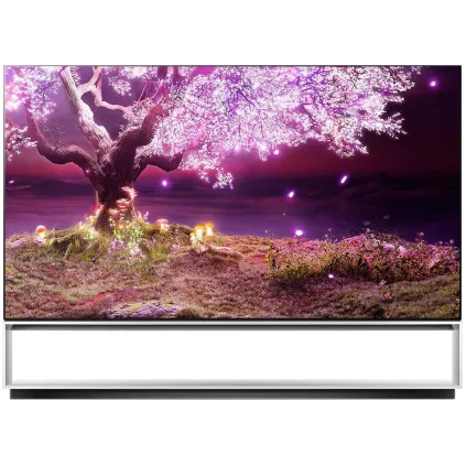 تلویزیون Z1 سایز 88 اینچ یکی از تلویزیون های 2021 ال جی می باشد. به کمک این تلویزیون فوق العاده شیک و بزرگ می توان یک سینمای واقعی در خانه خود راه اندازی کنید. تلویزیون ال جی Z1 بهترین تلویزیون OLED ال جی با کیفیت تصویر ایت کی (8K) در سال 2021 است و جزو تلویزیون های لوکس بازار محسوب می شود. این تلویزیون برای استفاده های حرف های مانند تماشای فیلم، بازی کردن و استفاده خانگی و معمولی کاملا مناسب است. همچنین به علت داشتن قابلیت Hotel Mode به عنوان یک تلویزیون تجاری برای هتل ها نیز مناسب می باشد. این تلویزیون در واقع مدل جدید تر و جایگزین تلویزیون ال جی ZX است که در سال گذشته معرفی شده بود. تلویزیون ال جی Z1 دارای صفحه نمایش OLED و کیفیت تصویر ایت کی می باشد. تلویزیون های OLED فاقد نور پس زمینه هستند و هر پیکسل به صورت مستقل عمل کرده و نور مورد نیاز خود را تامین می کند که اصطلاحا به آن Self-lit pixels می گویند. تلویزیون OLED ال جی 88Z1 نیز از این قاعده مستثنی نیست و فاقد نور پس زمینه می باشد. این تلویزیون دارای پنل WRGB است و نسبت به تلویزیون هایی که از پنل RGB برخوردار هستند، طیف گسترده تری از رنگ ها را نمایش می دهد. ال جی به کمک تکنولوژی Pixel Dimming پیکسل های صفحه نمایش این تلویزیون را کنترل کرده و کنتراست تصویر لازم را ارائه می دهد. این تکنولوژی در واقع عملکردی شبیه به تکنولوژی Local Dimming اما در سطح پیکسل دارد و به اصطلاح کنتراست تصویر بی نهایتی ارائه می دهد. پیکسل های صفحه نمایش این تلویزیون قابلیت خاموش شدن کامل را نیز دارند و رنگ مشکی خالص را تولید می کنند. ال جی به کمک تکنولوژی Perfect Black رنگ های تیره بخصوص رنگ مشکی را کاملا دقیق و عمیق نمایش می دهد. همچنین به کمک تکنولوژی Ultra Luminance Pro قسمت های روشن تصویر را درخشان تر نمایش داده و باعث ایجاد عمق تصویر بیشتری می شود. تلویزیون های OLED به صورت ذاتی از زاویه دید گسترده ای برخوردار هستند اما ال جی به این موضوع بسنده نکرده است و این تلویزیون را به تکنولوژی Wide Viewing Angle نیز مجهز نموده و زاویه دید عالی را در اختیار شما قرار می دهد. صفحه نمایش این تلویزیون از عمق رنگ 10 بیت واقعی برخوردار است و به کمک تکنولوژی Perfect Color طیف گسترده ای از رنگ ها را نمایش می دهد. به گفته ال جی این تلویزیون توانایی نمایش حجم رنگ 100% از فضای رنگ DCI-P3 را دارد. این تلویزیون به کمک تکنولوژی Billion Rich Colors توانایی نمایش حدود 1 میلیارد رنگ مختلف را دارد. این محصول دارای تکنولوژی TruMotion 240 است که معادل رفرش ریت 120 هرتز می باشد. الجی به کمک تکنولوژی OLED Motion Pro صحنه های سریع را واضح نمایش می دهد و از تاری تصاویر جلوگیری می کند. تلویزیون ایت کی ال جی 88Z1 مجهز به پردازشگر نسل چهارم آلفا 9 است که با نام α9 Gen4 AI Processor 8K شناخته می شود. این پردازشگر قدرتمند به کمک تکنولوژی 8K Upscaler و هوش مصنوعی رزولوشن تصاویر را افزایش داده و نویز آنها را از بین می برد. این پردازشگر به کمک تکنولوژی Face Enhancing چهره افراد در تصویر را تشخیص داده و آنها را طبیعی تر نمایش می دهد. علاوه بر آن به کمک تکنولوژی Text Upscaling متن های در تصویر را تشخیص داده و آنها را واضح تر به نمایش می گذارد. همچنین به کمک تکنولوژی Body and Object Enhancing اشیاء و عناصر موجود در صحنه را تشخیص داده و کنتراست، عمق و رنگ آنها را بهبود می بخشد. ال جی به کمک تکنولوژی AI Picture Pro کیفیت تصاویر را با توجه به محتوای در حال پخش و همچنین شرایط محیط بهبود می بخشد تا شما همیشه بهترین کیفیت تصویر را تجربه کنید. این تلویزیون دارای تکنولوژی AI Brightness Control است و به کمک سنسور نور میزان روشنایی صفحه نمایش را با توجه به شرایط نوری محیط تنظیم می کند تا در هر شرایط نوری بهترین کیفیت تصویر را تجربه کنید. این تلویزیون مجهز به تکنولوژی Cinema HDR است و از فرمت های HDR10 Pro، HLG و Dolby Vision IQ پشتیبانی می کند. ال جی به کمک تکنولوژی HDR Dynamic Tone Mapping Pro و AI HDR Tone Mapping جزئیات، کنتراست و رنگ محتوای HDR را بهبود داده و آنها را واقعی تر نمایش می دهد. این تلویزیون برای تماشای محتوای HDR با بالا