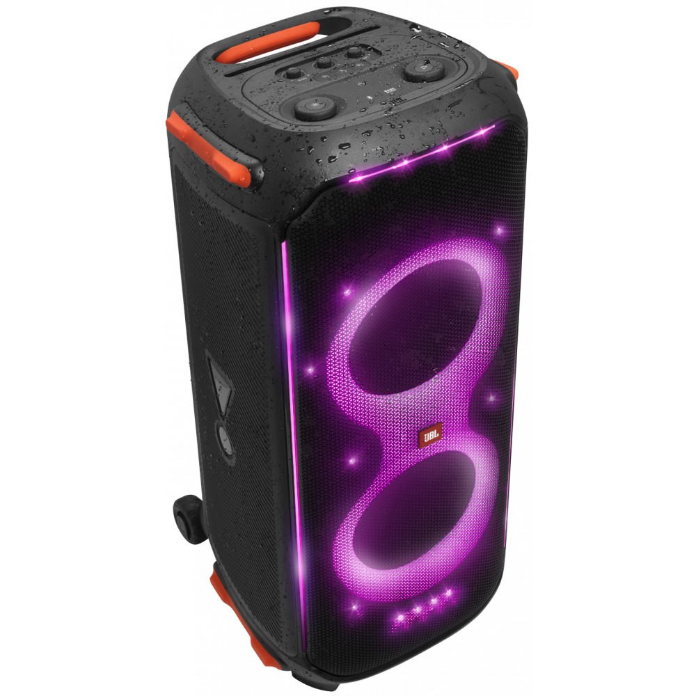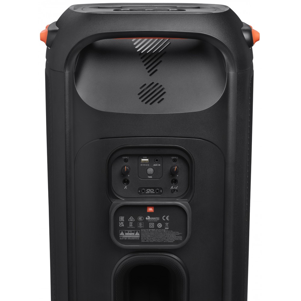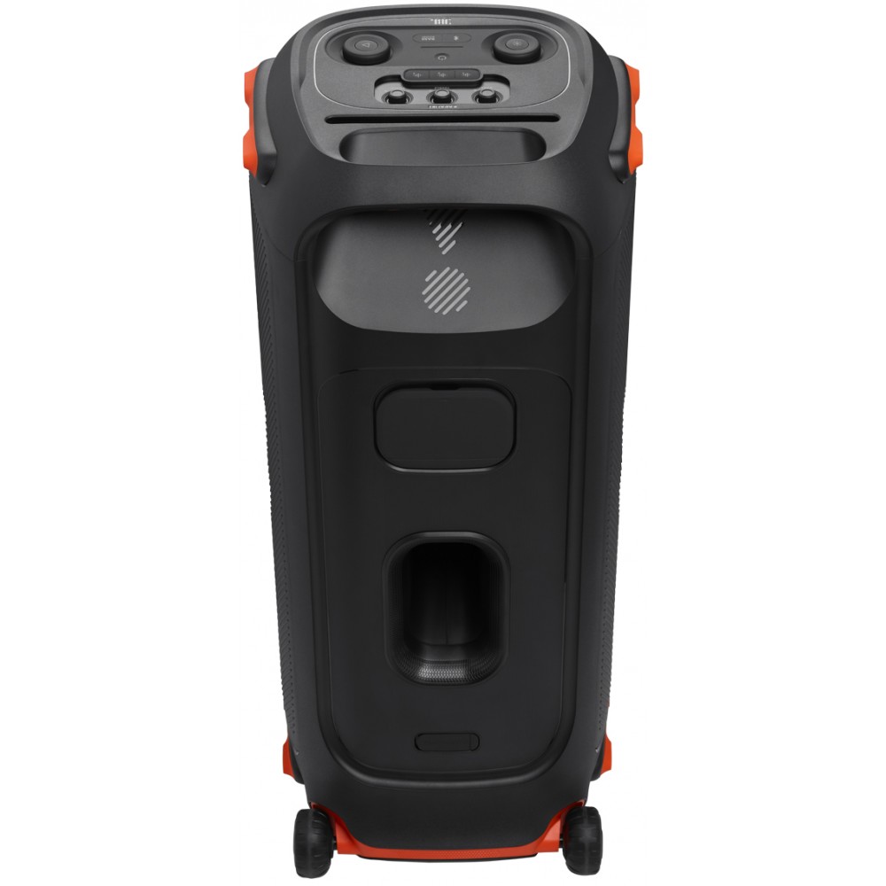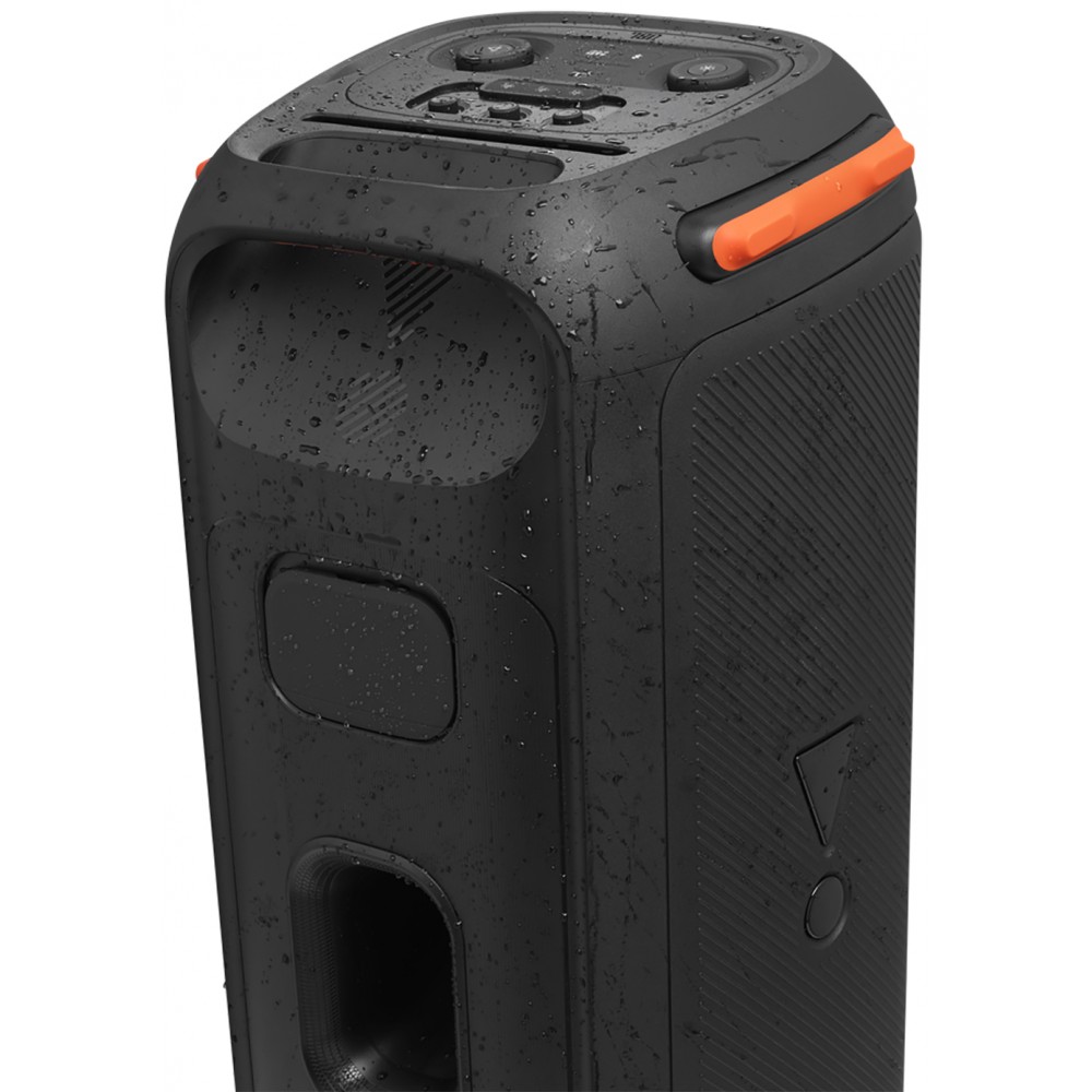 - پشتیبانی از پروفایل بلوتوث AVRCP V1.6 قابلیت DJ Effect برای تولید افکت های دی جی با 3 دکمه اختصاصی به همراه امکان شخصی سازی آنها تکنولوژی True Wireless Stereo (TWS) برای اتصال بی سیم (بلوتوثی) به اسپیکر پارتی باکس جی بی ال دیگر و ارائه صدای قدرتمند دارای 2 بلندگوی ووفر (Woofer) 216 میلیمتری پر قدرت در قسمت جلوی اسپیکر قابلیت اتصال میکروفون (Microphone) به اسپیکر قابلیت تنظیم سطح صدای میکروفون در صورت اتصال میکروفون به اسپیکر قابلیت شارژ دستگاه ها از طریق پورت USB با ولتاژ 5 ولت و توان 2.1 آمپر قابلیت رقص نور و چراغ های ال ای دی از نوع RGB به همراه امکان شخصی سازی رنگ ها قابلیت تنظیم حساسیت صدای (Gain) گیتار در صورت اتصال گیتار به اسپیکر پشتیبانی از مدولاسیون بلوتوث GFSK، 8DPSK و π/4 DQPSK دارای 2 پورت ورودی AUX از نوع 3.5 میلیمتری قابلیت کارائوکه (Karaoke) برای تمرین خوانندگی و نوازندگی و مسابقه دادن با دوستان خود پشتیبانی از فرکانس صوتی متغییر (Dynamic Frequency Response Range) از 35Hz تا 20KHz بدنه بسیار مقاوم از جنس پلاستیک فشرده برای جلوگیری از آسیب های احتمالی در مهمانی ها و جشن ها قابلیت قرارگیری به صورت ایستاده و خوابیده پشتیبانی از پروفایل بلوتوث A2DP V1.3 قابلیت Daisy Chain برای اتصال سیمی به سیستم صوتی یا اسپیکر مجزا و ارائه صدای قدرتمند قابلیت Bass Boost (Bassboost) با 2 حالت مختلف برای تقویت صدای باس و تولید بیس های قدرتمند قابلیت تنظیم حساسیت صدای (Gain) میکروفون در صورت اتصال میکروفون به اسپیکر دارای شکاف مخصوص قرارگیری موبایل در قسمت پنل بالای اسپیکر دارای کابل برق 2 متری دارای چرخ (Wheels) برای حمل و نقل آسان دارای 2 بلندگوی توییتر (Tweeter) 70 میلیمتری با کیفیت در قسمت جلوی اسپیکر پشتیبانی از فرکانس بلوتوث از 2400MHz تا 2483.5MHz قابلیت نمایش میزان سطح صدا به کمک نور پردازی دور بلندگو پشتیبانی از حافظه جانبی USB و سیستم فایل FAT16 و FAT32 دارای حفره خروجی هوا Bass Reflex در قسمت پشت اسپیکر برای تقویت صدای باس قابلیت اتصال گیتار (Guitar) به اسپیکر قابلیت تنظیم سطح صدای گیتار در صورت اتصال گیتار به اسپیکر دارای 1 پورت USB 2.0 دارای نسبت سیگنال به نویز 80 دسی بل پشتیبانی از برنامه JBL PartyBox مخصوص موبایل های هوشمند اندروید و iOS برای کنترل اسپیکر دارای 1 دستگیره جهت حمل آسان