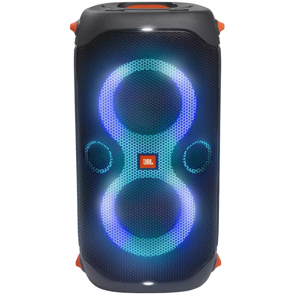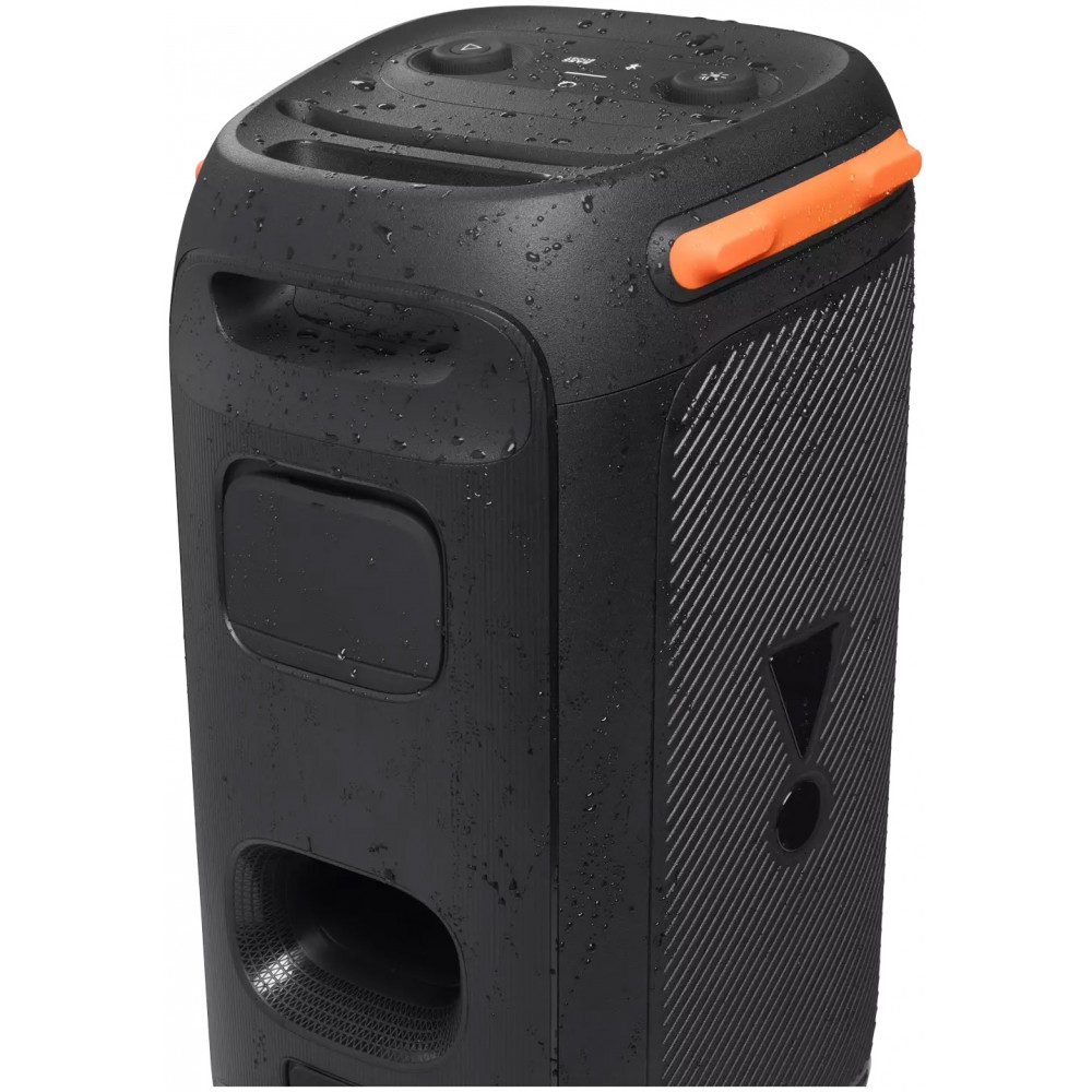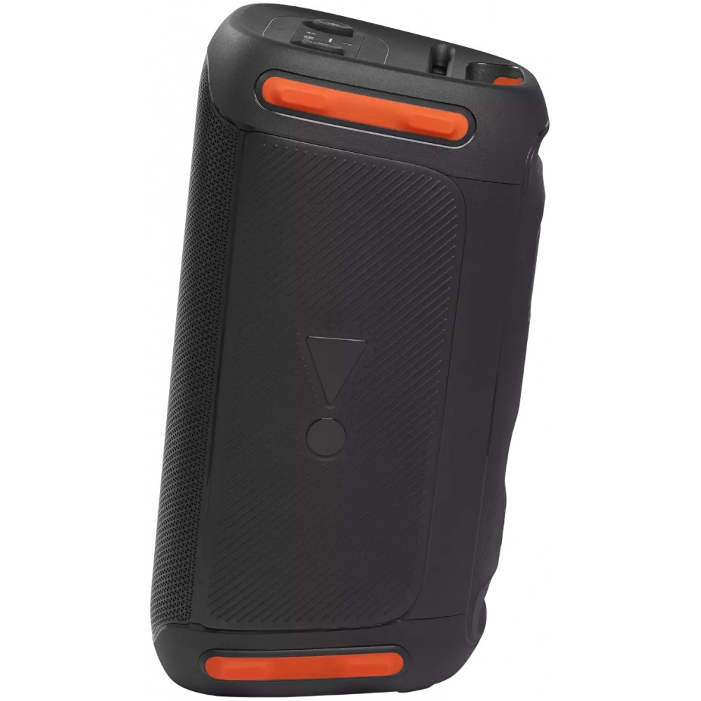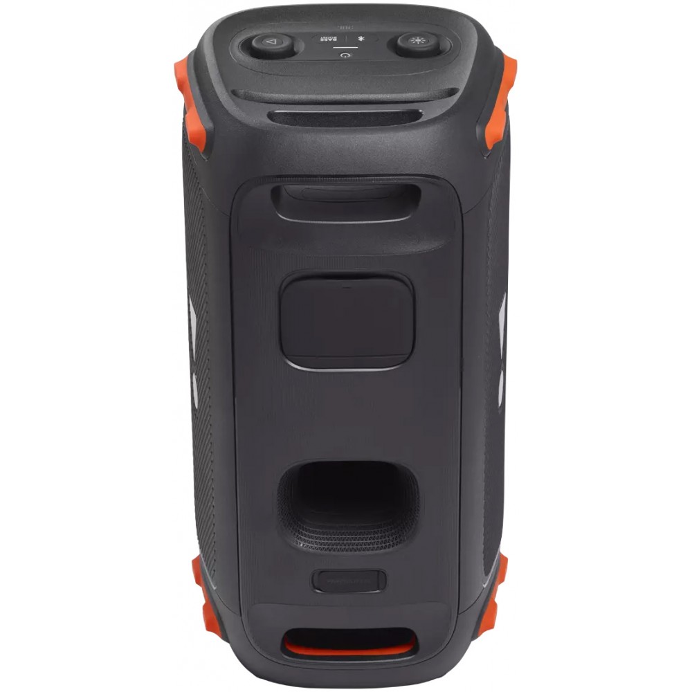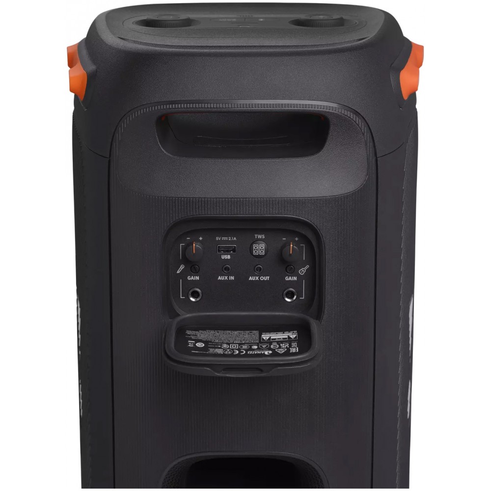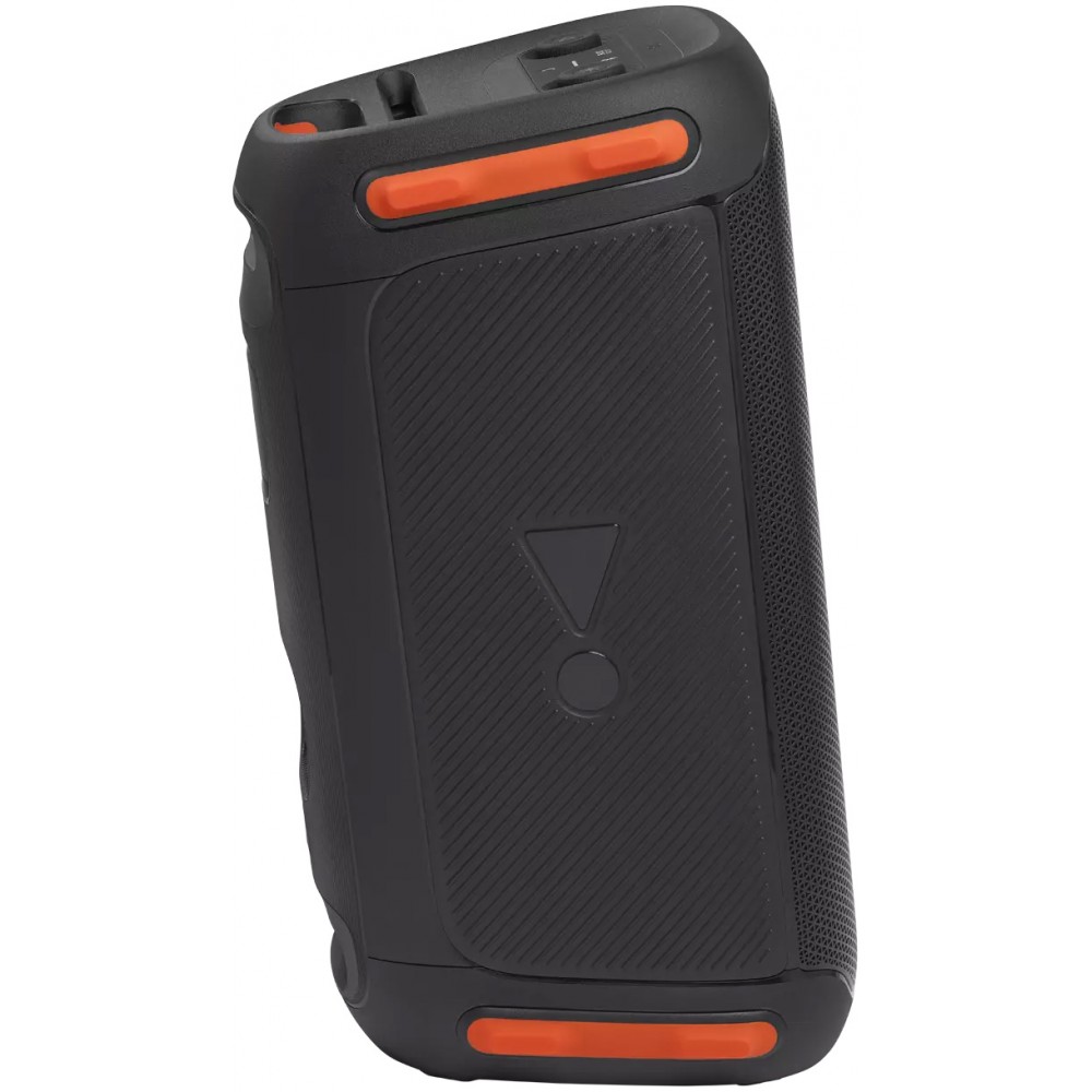 - قابلیت تنظیم سطح صدای گیتار در صورت اتصال گیتار به اسپیکر پشتیبانی از پروفایل بلوتوث A2DP V1.3 قابلیت نمایش میزان سطح صدا به کمک نور پردازی دور بلندگو دارای باتری لیتیوم یونی (Lithium-ion) مدل IDA108GA با ظرفیت 5000 میلی آمپر و 7.2 ولت دارای 2 بلندگوی توییتر (Tweeter) 55 میلیمتری با کیفیت در قسمت جلوی اسپیکر قابلیت اتصال میکروفون (Microphone) به اسپیکر دارای شکاف مخصوص قرارگیری موبایل در قسمت پنل بالای اسپیکر دارای نسبت سیگنال به نویز 80 دسی بل قابلیت Bass Boost (Bassboost) با 2 حالت مختلف برای تقویت صدای باس و تولید بیس های قدرتمند قابلیت تنظیم حساسیت صدای (Gain) گیتار در صورت اتصال گیتار به اسپیکر قابلیت قرارگیری به صورت ایستاده و خوابیده پشتیبانی از فرکانس بلوتوث از 2400MHz تا 2483.5MHz دارای باتری لیتیوم پلیمری (Li-ion polymer 36 Wh) تکنولوژی True Wireless Stereo (TWS) برای اتصال بی سیم (بلوتوثی) به اسپیکر پارتی باکس جی بی ال دیگر و ارائه صدای قدرتمند بدنه بسیار مقاوم از جنس پلاستیک فشرده برای جلوگیری از آسیب های احتمالی در مهمانی ها و جشن ها قابلیت تنظیم سطح صدای میکروفون در صورت اتصال میکروفون به اسپیکر پشتیبانی از حافظه جانبی USB و سیستم فایل FAT16 و FAT32 قابلیت Daisy Chain برای اتصال سیمی به سیستم صوتی یا اسپیکر مجزا و ارائه صدای قدرتمند پشتیبانی از فرکانس صوتی (Frequency Response Range) از 45Hz تا 20KHz دارای 1 پورت USB 2.0 امکان نصب روی پایه (پایه مخصوص باید به صورت جداگانه تهیه شود) پشتیبانی از برنامه JBL PartyBox مخصوص موبایل های هوشمند اندروید و iOS برای کنترل اسپیکر قابلیت تنظیم حساسیت صدای (Gain) میکروفون در صورت اتصال میکروفون به اسپیکر دارای 2 بلندگوی ووفر (Woofer) 155 میلیمتری پر قدرت در قسمت جلوی اسپیکر دارای نشانگر ال ای دی برای نمایش وضعیت شارژ باتری پشتیبانی از پروفایل بلوتوث AVRCP V1.6 قابلیت شارژ کامل در عرض 3.5 ساعت دارای 1 پورت ورودی AUX از نوع 3.5 میلیمتری قابلیت شارژ دستگاه ها از طریق پورت USB با ولتاژ 5 ولت و توان 2.1 آمپر دارای حفره خروجی هوا Bass Reflex در قسمت پشت اسپیکر برای تقویت صدای باس دارای 1 پورت خروجی AUX از نوع 3.5 میلیمتری قابلیت اتصال گیتار (Guitar) به اسپیکر قابلیت کارائوکه (Karaoke) برای تمرین خوانندگی و نوازندگی و مسابقه دادن با دوستان خود دارای 2 دستگیره جهت حمل آسان پشتیبانی از مدولاسیون بلوتوث GFSK، 8DPSK و π/4 DQPSK قابلیت رقص نور از نوع RGB با 5 حالت پیشفرض و امکان شخصی سازی رنگ ها