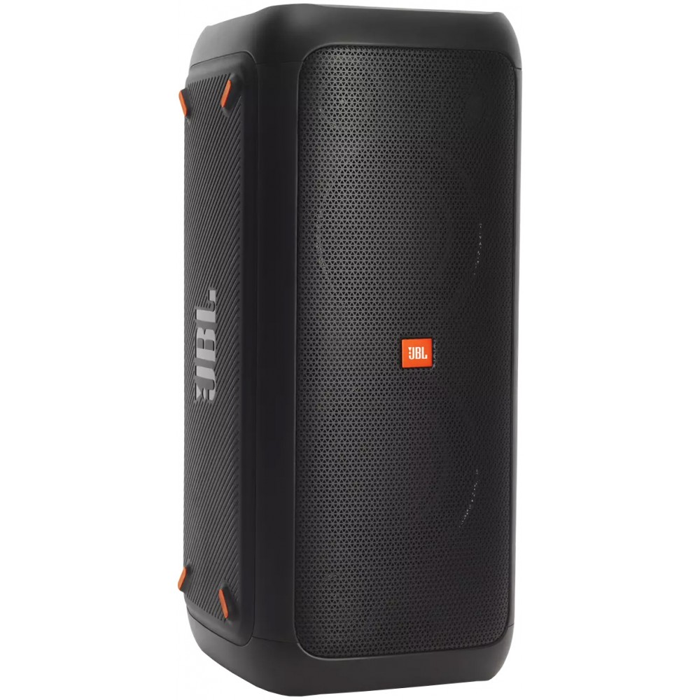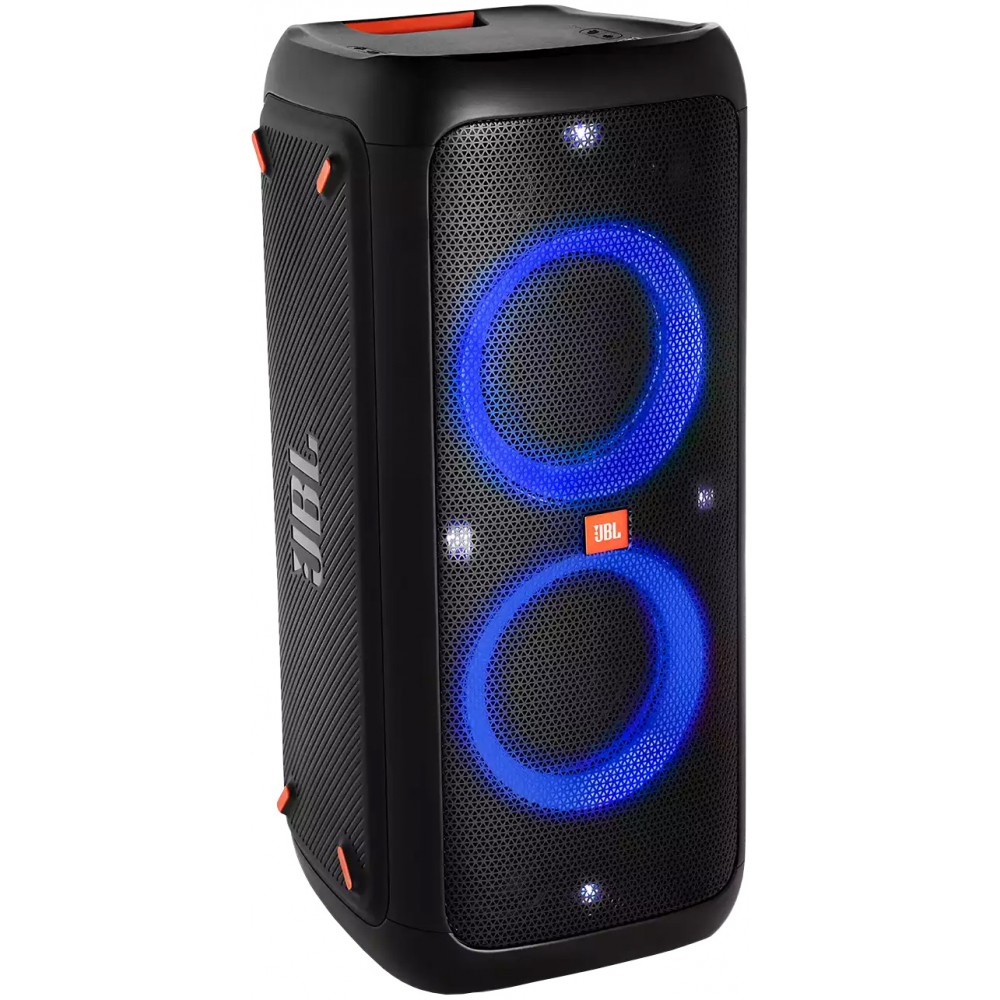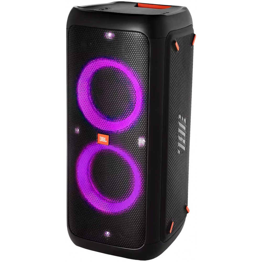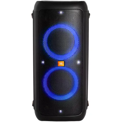 اسپیکر جی بی ال PartyBox 300 یکی از محصولات 2019 می باشد. این محصول از سری PartyBox است و جزو اسپیکر های ایستاده جی بی ال به شمار می آید. اسپیکر Party Box 300 را می توان از جمله بهترین اسپیکر های قابل حمل جی بی ال دانست. این بلندگو مدل جدیدتر و بروز شده اسپیکر جی بی ال 200 است که سال گذشته عرضه شده بود با این تفاوت که به باتری داخلی مجهز می باشد، از این رو می توانید به راحتی جشن ها و مهمانی های خود را در هر جایی که اراده کردید برگزار کنید. اسپیکر بلوتوثی جی بی ال پارتی باکس 300 به باتری لیتیوم یونی قدرتمندی مجهز است و می تواند حداکثر 18 ساعت به صورت مداوم به پخش آهنگ بپردازد. البته لازم به ذکر است که این زمان کاملا بستگی به نحوه استفاده از اسپیکر دارد. زمان شارژ باتری این بلندگو در حدود 5 ساعت است. این محصول علاوه بر اینکه می تواند با برق شهر شارژ شده و کار کند، دارای ورودی مجزا برای برق 12 ولت DC نیز می باشد که به راحتی می توانید اسپیکر خود را به پورت فندکی ماشین متصل کرده و از آن استفاده کنید. بلندگوی جی بی ال Party Box 300 دارای کانال صوتی 2 است و برای تولید صدا از 3 بلندگوی توییتر و 2 ووفر قدرتمند استفاده می کند که در کنار هم می توانند توان خروجی 240 وات را ارائه دهند. جی بی ال قابلیت Bass Boost را در اختیار شما قرار داده است که در 2 حالت مختلف امکان تنظیم داشته و می توانید بسته به نیاز خود یکی را انتخاب کنید. همچنین برای تقویت باس، حفره مخصوص Bass Reflex در پشت این محصول تعبیه شده است تا بیس قدرتمند تری را حس کنید. اسپیکر PartyBox 300 به بلوتوث داخلی نسخه 4.2 مجهز است و به راحتی می توانید از طریق بلوتوث به این محصول متصل شده و موزیک مورد نظر خود را پخش کنید. این اسپیکر به فناوری True Wireless Stereo (TWS) نیز مجهز است که به شما این امکان را می دهد تا اسپیکر فوق را از طریق بلوتوث به یک بلندگوی پارتی باکس سازگار متصل کرده و صدای قدرتمندتری را تجربه کنید. این ویژگی دارای 2 حالت Stereo و Party است که می توانید آن را توسط دکمه مخصوص Channel L/R تنظیم کنید. همچنین ورودی و خروجی از نوع RCA برای این اسپیکر در نظر گرفته شده است که عملکردی مشابه Daisy Chain دارد و می توانید سیستم صوتی یا اسپیکر دیگری را از طریق پورت فوق به این محصول متصل کنید. پورت ورودی AUX نیز در اسپیکر فوق وجود دارد و می توانید دستگاه های دیگر مانند موبایل یا MP3 Player را به آن متصل کرده و موزیک مورد نظر خود را از این طریق پخش کنید. در پشت دستگاه 1 عدد پورت USB 2.0 وجود دارد که امکان پخش موزیک از طریق حافظه فلش را فراهم می کند. همچنین امکان شارژ دستگاه های جانبی دیگر مانند موبایل از طریق پورت USB وجود دارد. اسپیکر قابل حمل جی بی ال PartyBox 300 امکان اتصال میکروفون و گیتار را داشته و از کارائوکه (Karaoke) نیز پشتیبانی می کند. با وجود این ویژگی ها می توانید به خوانندگی و نوازندگی پرداخته و شور و نشاط دیگری به مهمانی ها و دورهمی های خود بدهید. امکان تنظیم میزان سطح صدای میکروفون و گیتار به صورت جداگانه وجود دارد. همچنین می توانید افکت اکو (Echo) را به میکروفون اضافه کنید که امکان تنظیم در 2 سطح مختلف را دارد. طراحی اسپیکر پرتابل JBL پارتی باکس 300 به گونه ای است که به راحتی امکان جابجایی دارد. این اسپیکر دارای 2 دستگیره می باشد که امکان حمل و نقل آن را راحت تر می کند. محصول فوق از جمله اسپیکرهای ایستاده جی بی ال است که امکان قرارگیری به صورت ایستاده و خوابیده را دارد. در قسمت بالایی، دکمه های کنترلی وجود دارند که امکان مدیریت اسپیکر را به شما می دهد. همچنین در این قسمت نشانگر ال ای دی برای نمایش وضعیت باتری و کلید مخصوص تنظیم Bass Boost قرار دارد. ورودی و خروجی ها بطور کلی در پشت دستگاه وجود دارند. دکمه های تنظیم صدای میکروفون و گیتار نیز در همین قسمت قرار دارند. در بخش جلویی اسپیکر شاهد بلندگوها هستیم. این اسپیکر دارای رقص نور از نوع RBG می باشد که در دور بلندگوهای ووفر قرار گرفته است و در 3 حالت مختلف قابل تنظیم می باشد. متاسفانه این اسپیکر از نرم افزار JBL PartyBox پشتیب