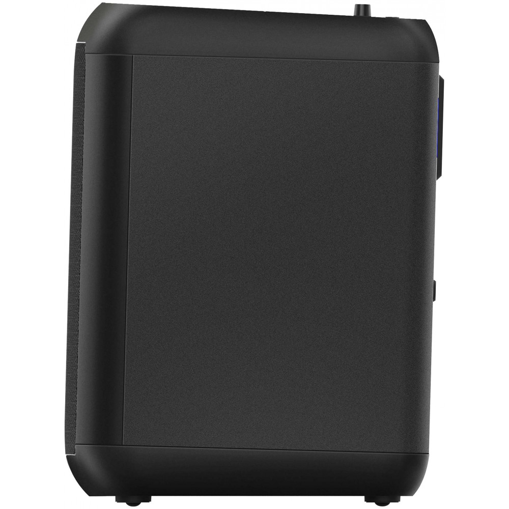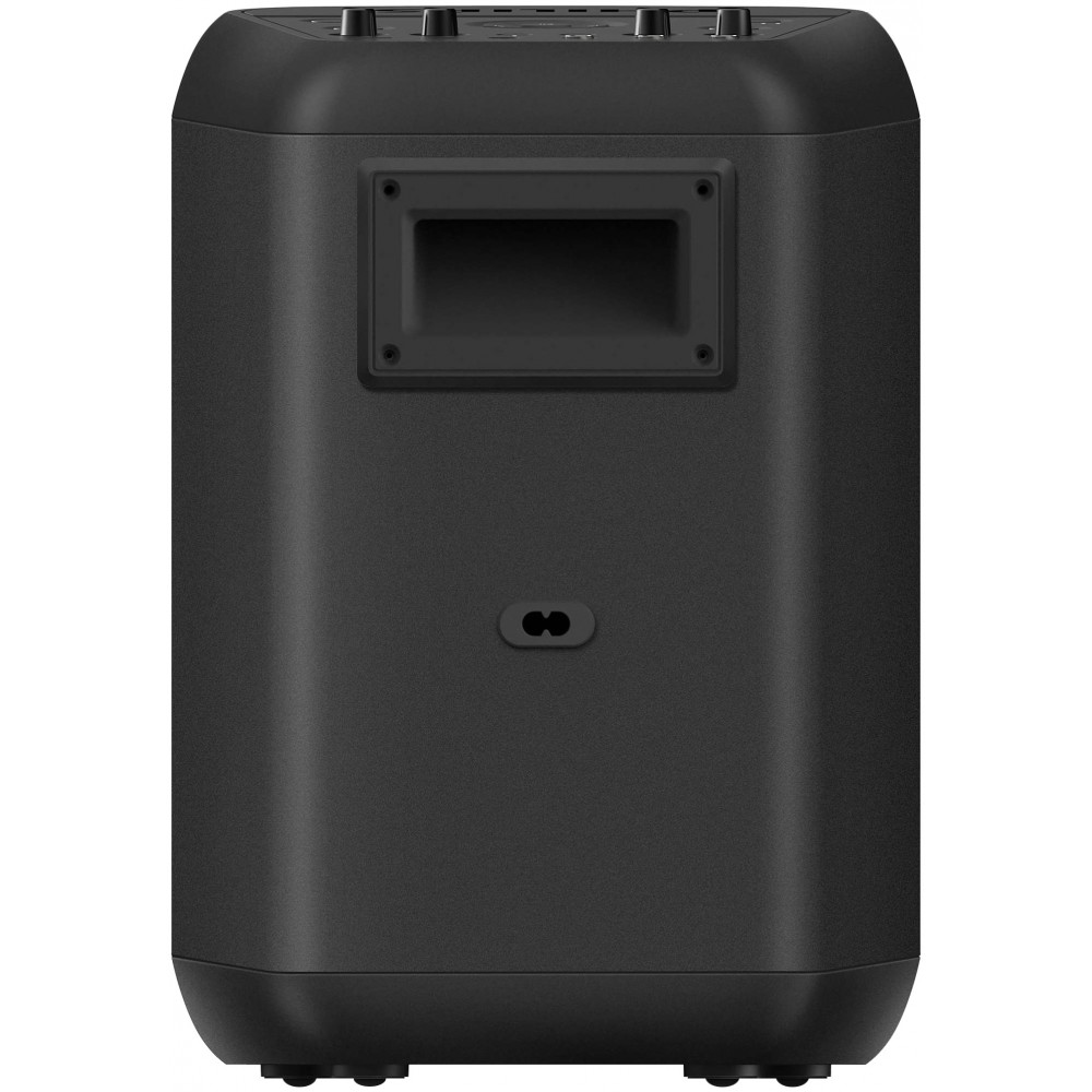 - دارای 1 پورت ورودی AUX از نوع 3.5 میلیمتری قابلیت رقص نور (Party Light Effects) از نوع RGB با 3 حالت پیشفرض پشتیبانی از فرکانس صوتی (Frequency Response Range) از 40Hz تا 20KHz انحراف فرکانس صدا یا Total Harmonic Distortion (THD) به میزان 1% دارای 1 پورت USB 2.0 دارای نسبت سیگنال به نویز 65 دسی بل دارای 1 بلندگوی ووفر (Woofer) 133.35 میلیمتری پر قدرت در قسمت جلوی اسپیکر دارای حداکثر قدرت خروجی صدا 80 وات قابلیت تنظیم سطح صدای گیتار در صورت اتصال گیتار به اسپیکر دارای باتری لیتیوم یونی (Lithium-ion) 2200 میلی آمپر و 11.1 ولت پشتیبانی از فرکانس بلوتوث از 2.402GHz تا 2.480GHz دارای 2 ورودی میکروفون از نوع 6.3 میلیمتری قابلیت Voice Changer برای تغییر صدا به مرد (Male) و زن (Female) در زمان استفاده از میکروفون دارای حفره خروجی هوا Bass Reflex در قسمت جلو اسپیکر برای تقویت صدای باس قابلیت Vocal Fader برای کاهش صدای خواننده از آهنگ در حال پخش قابلیت کارائوکه (Karaoke) برای تمرین خوانندگی و نوازندگی و مسابقه دادن با دوستان خود دارای 1 دستگیره جهت حمل آسان قابلیت Digital Sound Control برای بهبود و کنترل صدا به صورت دیجیتال قابلیت Dynamic Bass Boost (DBB) با 2 حالت مختلف برای تقویت صدای باس و تولید بیس های قدرتمند قابلیت تنظیم سطح صدای میکروفون در صورت اتصال میکروفون به اسپیکر قابلیت Multipoint (Multipair) Support برای اتصال هم زمان 2 موبایل به اسپیکر از طریق بلوتوث دارای 1 پورت خروجی AUX از نوع 3.5 میلیمتری دارای شکاف مخصوص قرارگیری موبایل در قسمت پنل بالای اسپیکر قابلیت USB Music Playback برای پخش آهنگ از طریق حافظه جانبی USB دارای 2 بلندگوی توییتر (Tweeter) 50.8 میلیمتری در قسمت جلوی اسپیکر دارای 1 ورودی گیتار از نوع 6.3 میلیمتری بدنه بسیار مقاوم از جنس پلاستیک فشرده برای جلوگیری از آسیب های احتمالی در مهمانی ها و جشن ها دارای نشانگر ال ای دی برای نمایش وضعیت شارژ باتری پشتیبانی از حافظه جانبی USB و سیستم فایل FAT16، FAT12 و FAT32 دارای بلوتوث با شعاع عملکرد تا 10 متر