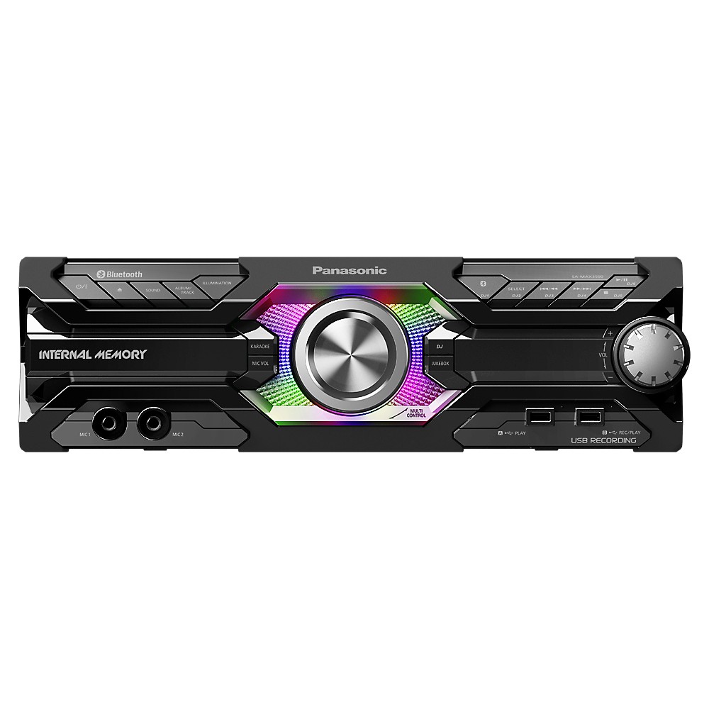 سیستم صوتی پاناسونیک SC-MAX3500 یا MAX3500 یکی از سیستم های صوتی 2018 و سری مکس پاناسونیک محسوب می شود. سیستم صوتی پاناسونیک مکس 3500 را می توان مدل جدید تر و هم رده با سیستم صوتی پاناسونیک SC-MAX5000 در نظر گرفت که با وجود داشتن ابعاد کوچک تر و وزن کمتر، همان قدرت صدا را در اختیار شما قرار می دهد. این محصول دارای سیستم صوتی 2 کاناله است و می تواند صدای استریو را به شما ارائه دهد. این مدل مجهز به 4 بلندگوی ووفر 100 میلیمتری با توان 175 وات، 2 بلندگوی توییتر 60 میلیمتری با توان 350 وات و 2 بلندگوی سوپر ووفر 250 میلیمتری با توان 500 وات است. سیستم صوتی مکس پاناسونیک MAX3500 در مجموع قدرت خروجی 2400 وات دارد. پاناسونیک برای سیستم صوتی مذکور قدرت خروجی PMPO برابر با 26400 وات را اعلام نموده است. این سیستم صوتی دارای 3 آمپلی فایر (Triple Amplifier) دیجیتال می باشد و صدای خوب و پر قدرتی را به شما ارائه می دهد. در بلندگو های این محصول که با مدل SB-MAX3500 شناخته می شوند از تکنولوژی Airquake Bass با سیستم صوتی Bass Reflex استفاده شده است. به لطف تکنولوژی مذکور و وجود حفره هایی برای پرتاب صدا، شاهد صدای باس بسیار قدرتمندی در آن هستیم. علاوه بر آن سیستم صوتی 2 کاناله پاناسونیک SC-MAX3500 دارای قابلیت D.Bass Level است و شما می توانید به دلخواه خود در 6 سطح مختلف صدای باس را تقویت نمایید. همچنین قابلیت D.Bass Beat نیز صدای باس آلات موسیقی مثل طبل در آهنگ ها را بیشتر تقویت می کند تا به مهمانی و جشن های شما هیجان بیشتری ببخشد. به لطف تکنولوژی Maximized Bass Sound PLUS در این مدل صدای باس با توجه به سطح صدای در حال پخش به صورت خودکار تنظیم و بهبود می یابد. در نتیجه حتی در صداهای بلند نیز صداها را به طور واضح و با کمترین اعوجاج بشنوید. پاناسونیک در این سیستم صوتی چند اکولایزر یا حالت صدای پیش فرض (Local Preset EQ) قرار داده است تا با توجه به نیاز خود بتوانید حالت دلخواه را انتخاب نمایید. البته سیستم صوتی 2400 وات پاناسونیک MAX 3500 قابلیت تنظیم اکولایزر به صورت دستی (Manual EQ) را نیز دارد و به کمک آن می توانید اکولایزر های Mid، Treble و Bass را تغییر دهید. سیستم صوتی مذکور دارای قابلیت Surround می باشد تا با استفاده از آن بتوانید صدای فراگیر مجازی را تجربه نمایید. بخش اصلی این محصول، سیستم صوتی با مدل SA-MAX3500 می باشد که همه دکمه های کنترلی و پورت ها بر روی آن قرار دارند. دارای حافظه داخلی برابر با 4 گیگابایت است و می توانید آهنگ های مورد علاقه خود را بر روی آن ذخیره نمایید. این محصول قابلیت ذخیره سازی حدود 1000 آهنگ را دارد. این سیستم صوتی با برخورداری از 2 پورت USB 2.0 Full Speed توانایی پخش آهنگ با فرمت MP3 از طریق حافظه های فلش را دارد. این پورت ها با USB A و USB B نام گذاری شده اند و از حافظه جانبی فلش با حداکثر ظرفیت 32 گیگابایت و فرمت های FAT12، FAT16 و FAT32 پشتیبانی می کنند. پورت USB A قابلیت پخش فایل های صوتی از حافظه فلش را دارد اما پورت USB B علاوه بر امکان پخش فایل های صوتی، قابلیت ضبط آهنگ را نیز در اختیار شما قرار می دهد. این مدل دارای پورت ورودی صدای آنالوگ یا AUX از نوع RCA L/R است و شما از این طریق می توانید صدای دستگاه های دیگر را در آن پخش نمایید. سیستم صوتی مکس پاناسونیک مدل SC-MAX3500 دارای 1 سی دی پلیر با قابلیت پخش دیسک های صوتی (Audio CD یا CD-DA) و فایل هایی با فرمت MP3 است. سیستم صوتی مذکور 2 ورودی میکروفون از نوع 6.3 میلیمتری دارد و شما می توانید با اتصال میکروفون از آن در مهمانی، جشن و حتی سخنرانی ها استفاده نمایید. این سیستم صوتی به لطف قابلیت کارائوکه (Karaoke) ویژگی های خوبی را در اختیارتان قرار می دهد. قابلیت کارائوکه در این مدل دارای 6 افکت یا حالت (Karaoke Effects) از قبیل Vocal Cancel، Echo، Key Control، Tempo Control، BGM Level Control و Mic EQ می باشد. با تنظیم Mic EQ بر روی حالت Speech هنگام سخنرانی و انتخاب حالت Singing هنگام خوانندگی می توانید شاهد کیفیت صدای بهتری در این محصول باشید. با استفاده از قابلیت Vocal Cancel امکان کاهش صدای خواننده اصلی از آهنگ در حال پخش وجود دارد تا بتوانید به جای او شروع به خواندن کنید