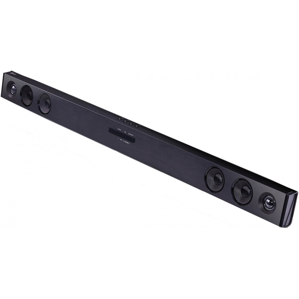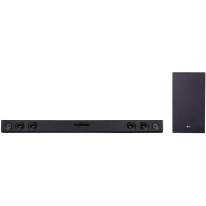 - تکنولوژی LG Sound Sync برای اتصال بی سیم یا با سیم ساندبار به تلویزیون ال جی و امکان کنترل صدا از طریق تلویزیون دارای 1 بلندگوی ساب ووفر (Subwoofer) 152.4 میلیمتری با توان 200 وات دارای صفحه نمایشی با 3 چراغ نشانگر ال ای دی سفید رنگ (White LED indicator) جلوی ساندبار برای نمایش نوع ورودی قابلیت Auto Power On/Off برای روشن و خاموش شدن ساندبار هم زمان با تلویزیون، هنگام اتصال ساندبار به تلویزیون از طریق بلوتوث یا کابل اپتیکال قابلیت خاموش شدن خودکار ساندبار برای صرفه جویی در مصرف انرژی در صورت عدم استفاده از ساندبار تا 15 دقیقه تکنولوژی Dolby Digital برای بهبود کیفیت صدا دارای حفره خروجی هوا Bass Reflex در قسمت پشت ساب ووفر برای تقویت صدای باس قابلیت Night Mode برای شنیدن واضح صدای دیالوگ ها حتی هنگام تماشای محتوا با صدای کم (مناسب استفاده در شب) انحراف فرکانس صدا یا Total Harmonic Distortion (THD) به میزان 10% دارای بلندگوی ساب ووفر (Subwoofer) مدل SPJ4B-W حالت صدای Bass Blast برای تولید صدای باس قدرتمند دارای موتور پردازش صدا (Auto Sound Engine یا ASE) برای بالانس و بهبود فرکانس صدا تکنولوژی DTS Digital Surround برای تولید صدای فراگیر مجازی قابلیت Dynamic Range Control (DRC) برای جلوگیری از کاهش و افزایش ناگهانی صدا هنگام پخش صدای Dolby Digital دارای 2 بلندگوی توییتر (Tweeter) 20 میلیمتری و 4 بلندگوی ووفر (Woofer) 55.88 میلیمتری در مجموع با توان 100 وات دارای بلندگوی ساب ووفر (Subwoofer) بی سیم (Wireless) پشتیبانی از حافظه جانبی USB و سیستم فایل FAT16 و FAT32 دارای چراغ نشانگر ال ای دی قرمز رنگ (Red LED indicator) جلوی ساندبار برای نمایش وضعیت دستگاه تکنولوژی Adaptive Sound Control یا ASC برای تنظیم خودکار صدا با توجه به محتوای در حال پخش قابلیت Bluetooth Stand-By برای رفتن بلوتوث به حالت استندبای (آماده به کار) در صورت عدم استفاده از بلوتوث