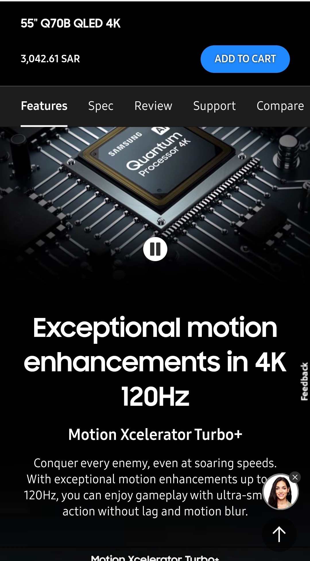 تلویزیون سامسونگ Q70B سایز 55 اینچ یکی از تلویزیون های 2022 سامسونگ است. این تلویزیون جزو سری 7 سامسونگ محسوب می شود و برای مصارف حرفه ای مانند گیمینگ و تماشای فیلم و سریال کاملا مناسب است. در حال حاضر این تلویزیون با مدل کامل QA55Q70BAUXZN مونتاژ مصر و همچنین مدل کامل QA55Q70BAUXSA مونتاژ مصر و همینطور مدل کامل QA55Q70BAUXTW مونتاژ مصر موجود است. علاوه بر آن این تلویزیون با مدل کامل QA55Q70BAKXXT مونتاژ ویتنام (سفارش تایلند) و مدل کامل QE55Q70BATXXC مونتاژ اسلواکی نیز وارد ایران شده و موجود می باشد. محصول حاضر فرق چندانی با تلویزیون سامسونگ Q77B ندارد و فقط در رنگ پایه و برخی از تکنولوژی های فرعی با هم متفاوت هستند. تلویزیون سامسونگ Q70B ارزان ترین تلویزیون گیمینگ سامسونگ در سال 2022 است. تلویزیون کیو 70 بی مدل جدیدتر و جایگزین تلویزیون سامسونگ Q70A است که در سال گذشته معرفی و به بازار عرضه شده بود.