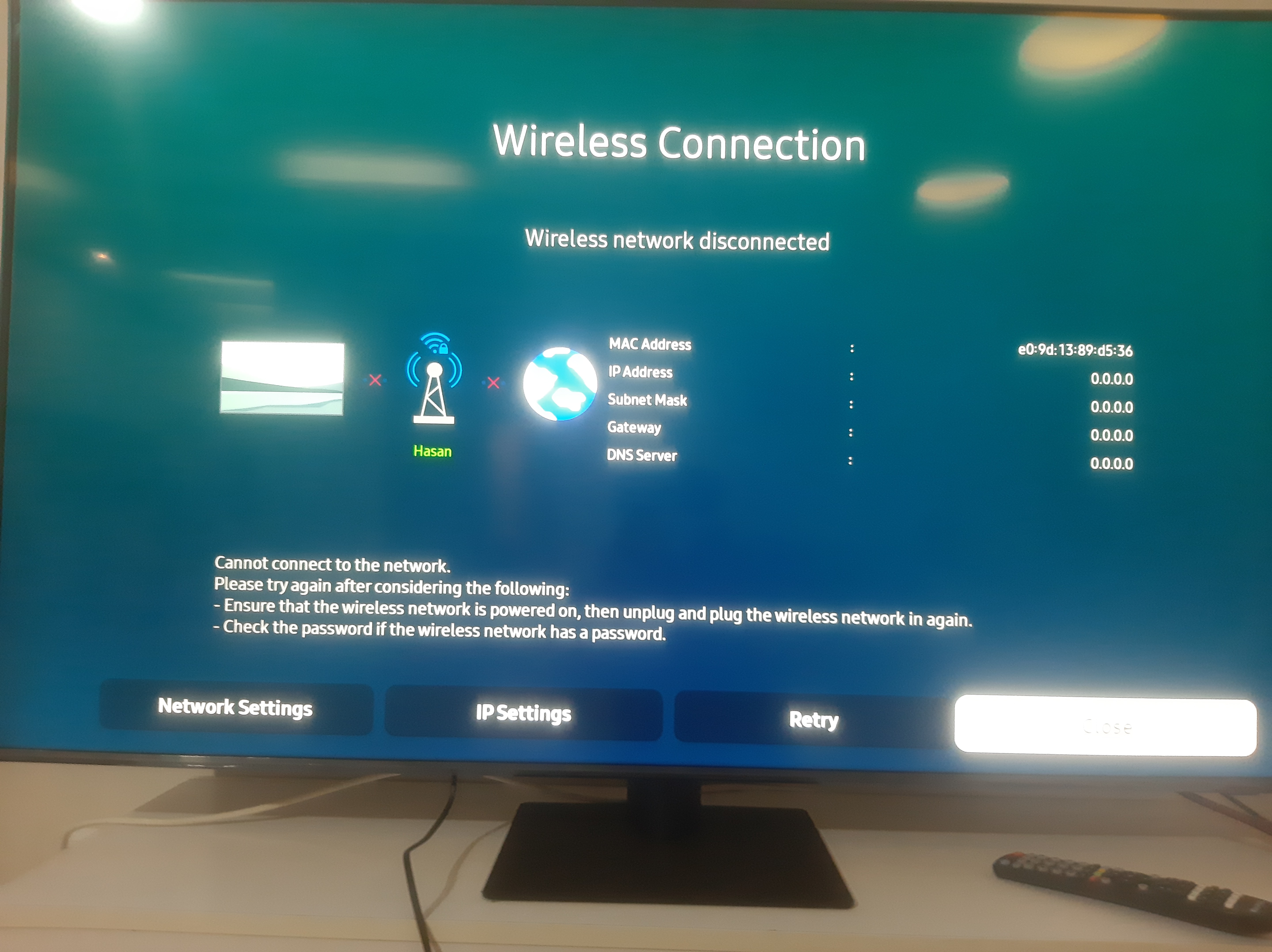 با سلام، خواهش می کنم در خدمت شما هستیم. همانطور که در تصویر ارسالی شما مشخص است، تلویزیون از مودم شما IP نگرفته است و در شبکه رجیستر نشده است به همین دلیل به اینترنت متصل نشده است. به احتمال زیاد DHCP Server مودم شما به هر دلیلی به تلویزیون IP نداده است. شما باید از بخش IP Settings با توجه به رنج IP مودم خود به تلویزیون IP دستی بدهید. برای مثال اگر IP مودم شما 192.168.1.1 باشد و Subnet Mask آن نیز 255.255.255.0 باشد، می توانید در بخش تنظمیات IP تلویزیون برای مثال 192.168.1.54 را وارد کنید (توجه داشته باشید که نباید دستگاه دیگری با این IP در شبکه وجود داشته باشد در غیر این صورت IP conflict می شود. سپس Subnet Mask را نیز 255.255.255.0 زده و Gateway را نیز IP موردم یعنی 192.168.1.1 وارد کنید و اطلاعات را ذخیره کنید. سپس دوباره برای اتصال تلاش کنید تا تلویزیون به اینترنت متصل شود. با تشکر.